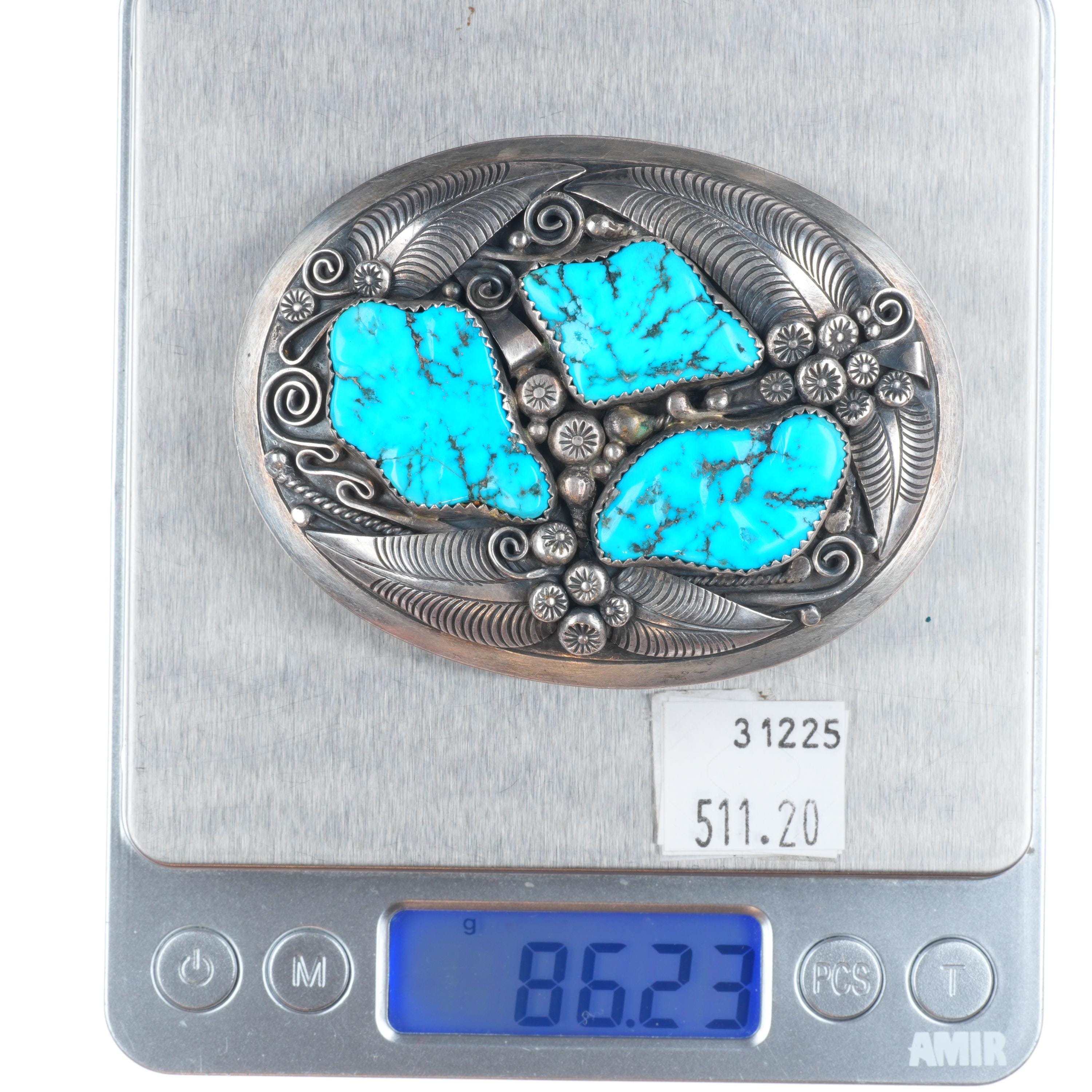 Thomas Nez Navajo sterling silver high grade Kingman turquoise belt buckle