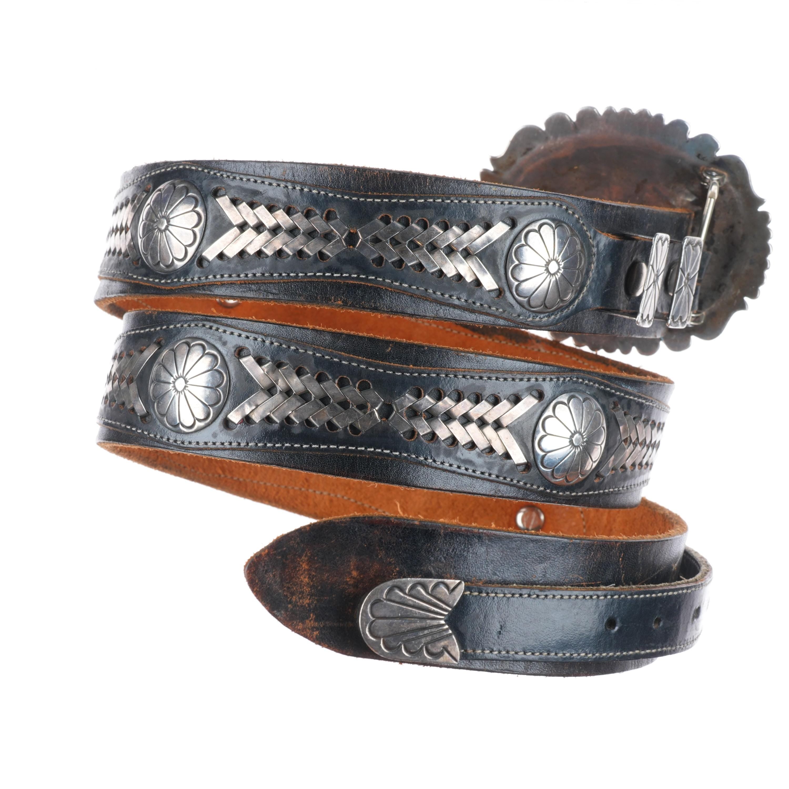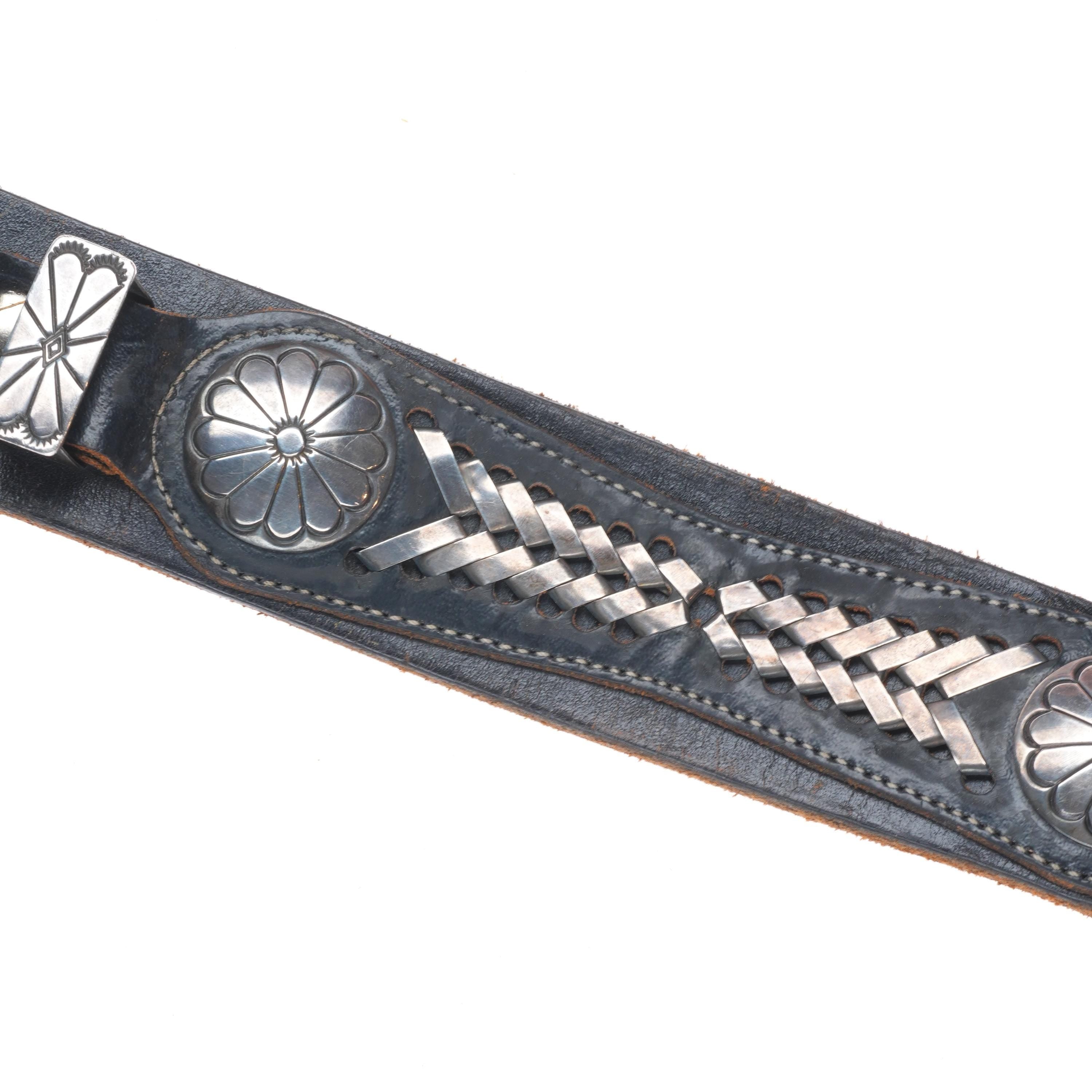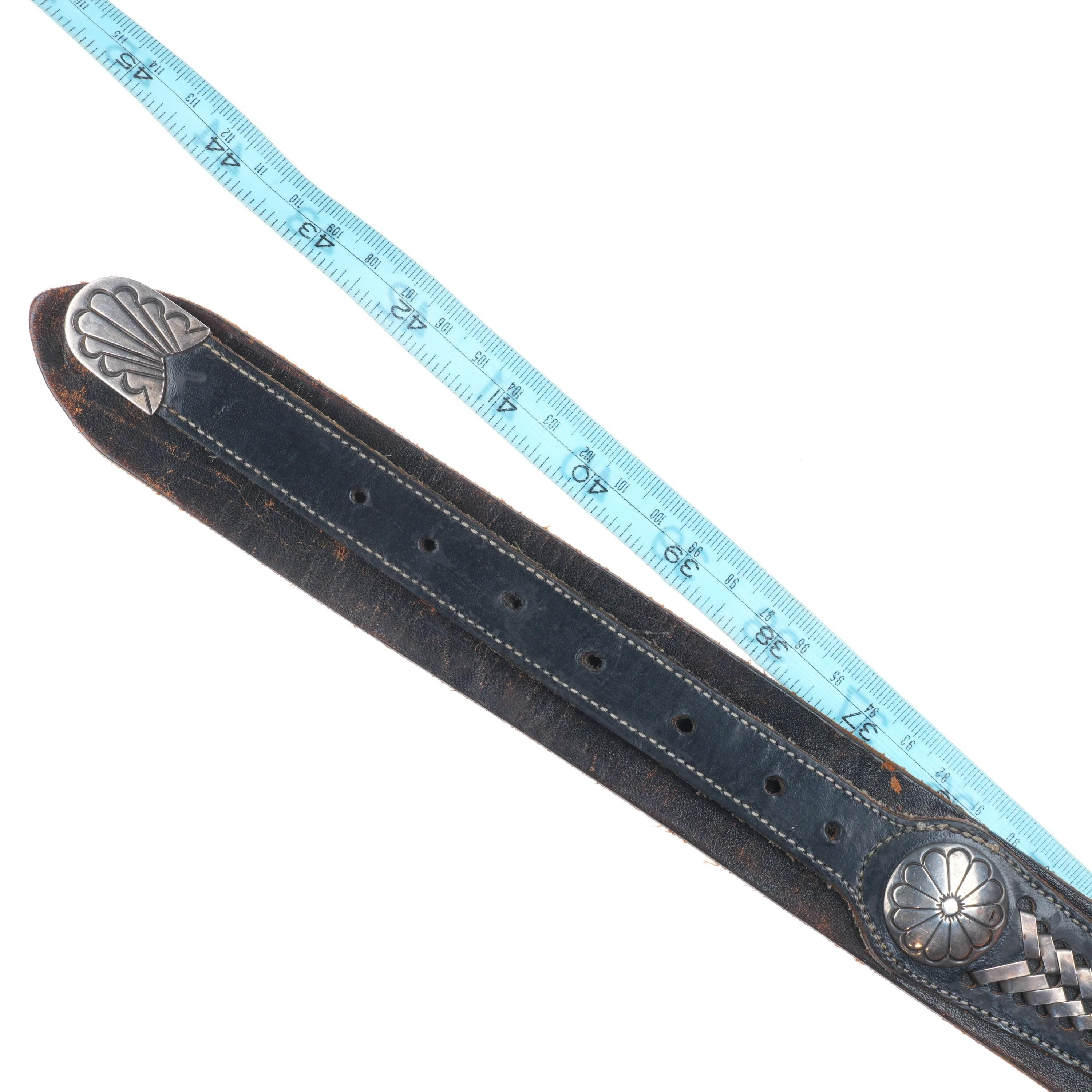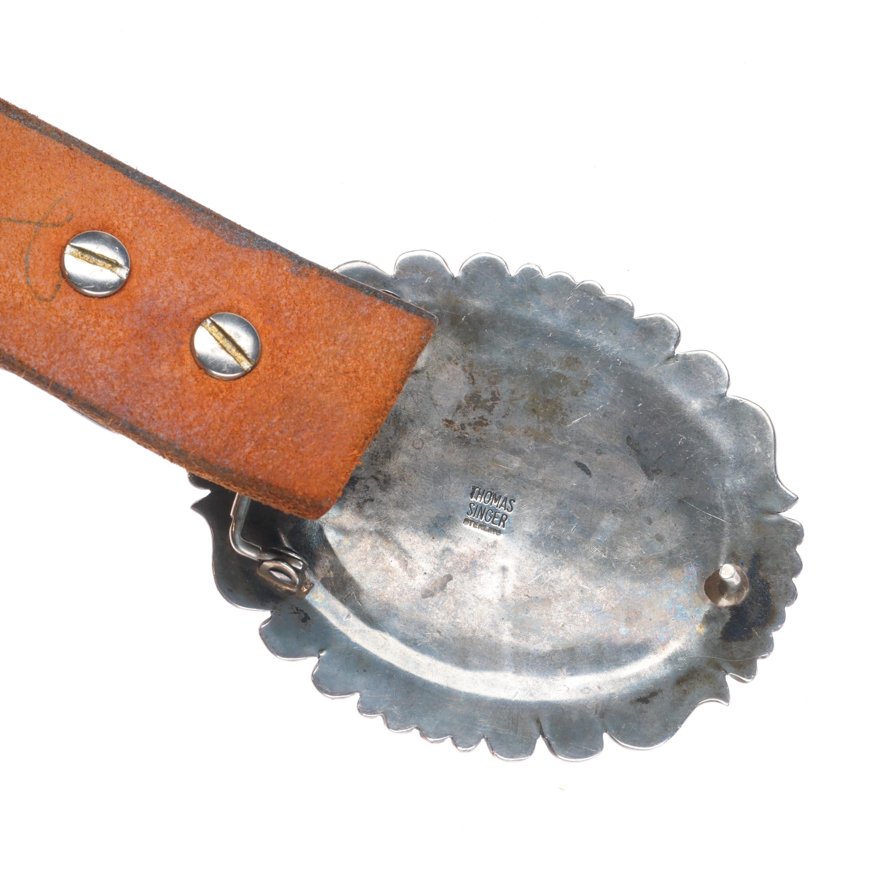 Thomas Singer Navajo sterling silver braided concho/ranger belt buckle set. Fits up to a 41" waist but obviously could be worn shorter. I would be happy to add holes upon request at requested intervals.. Tape measure shown in pics.. Weight and measurements in pictures. No damage or issues, tested and guaranteed solid sterling silver. All solid sterling silver, circa last quarter of the 20th century. All of the conchos, woven silver, buckle, etc are all solid sterling silver. I'm not sure if the pieces other than the buckle were made by Tommy Singer.