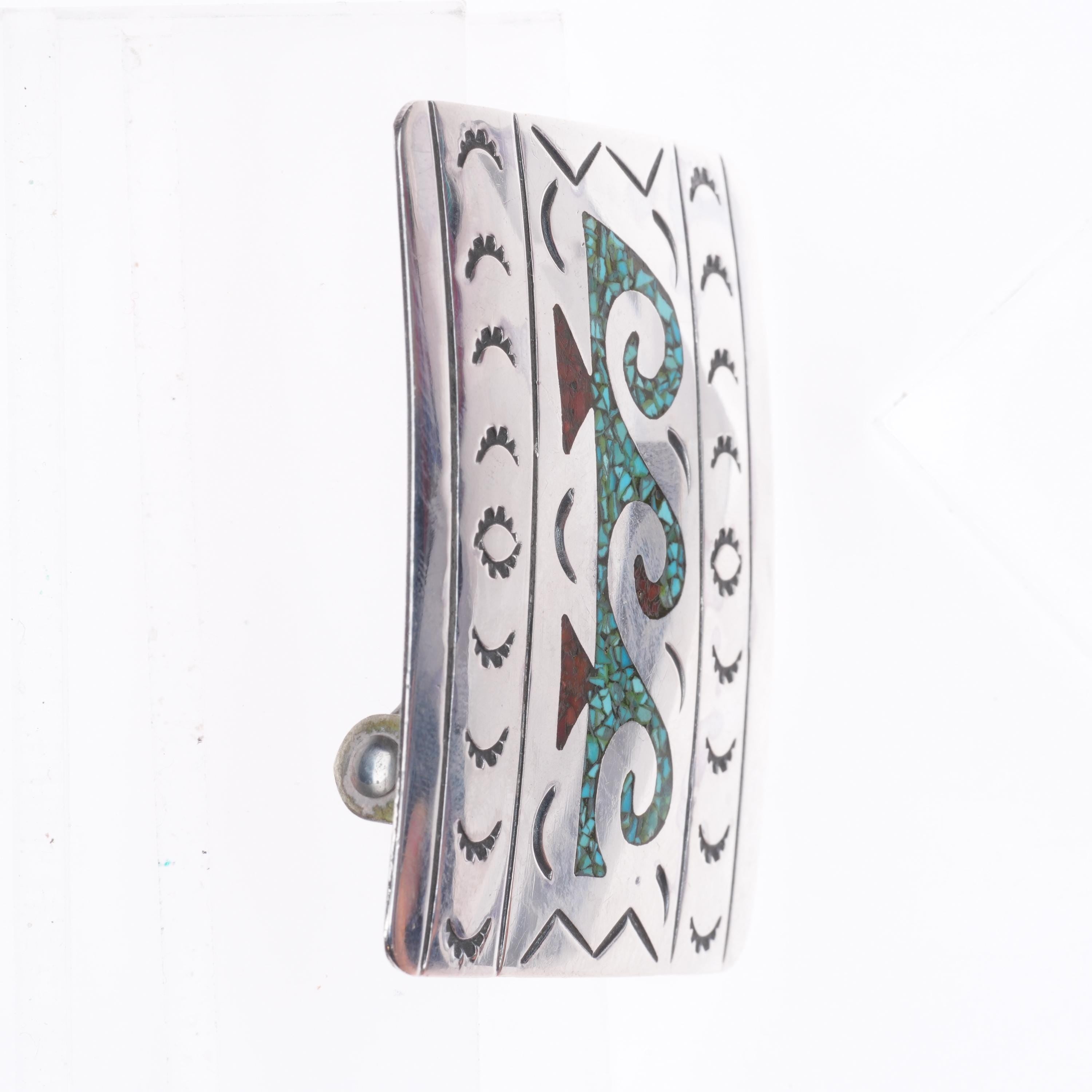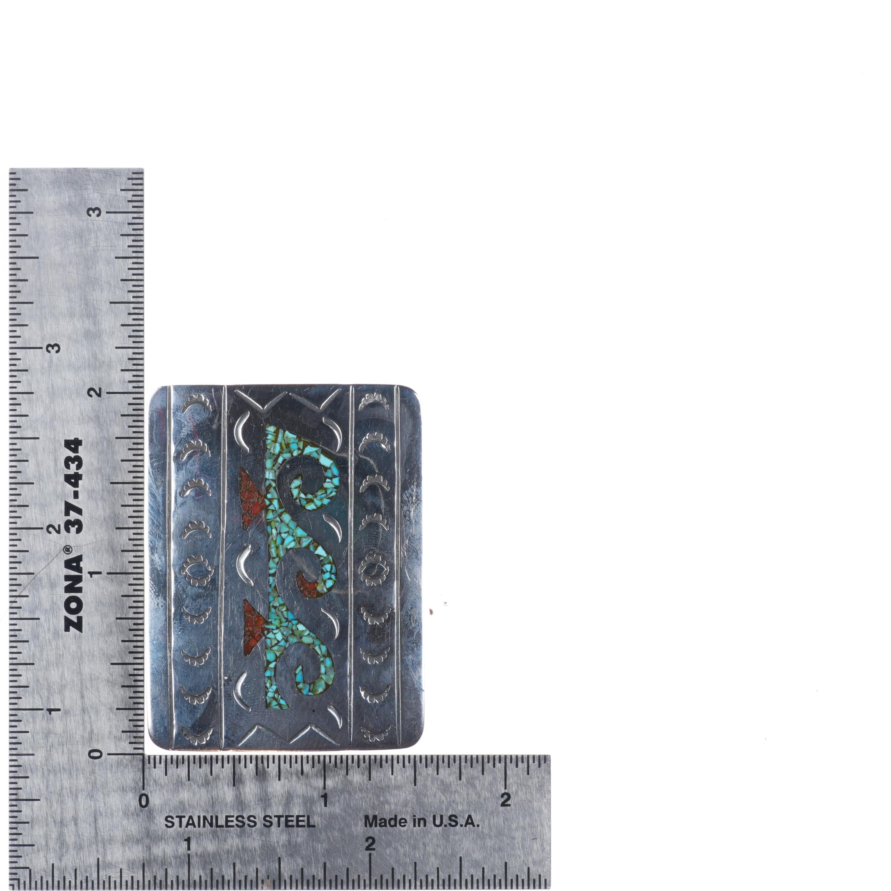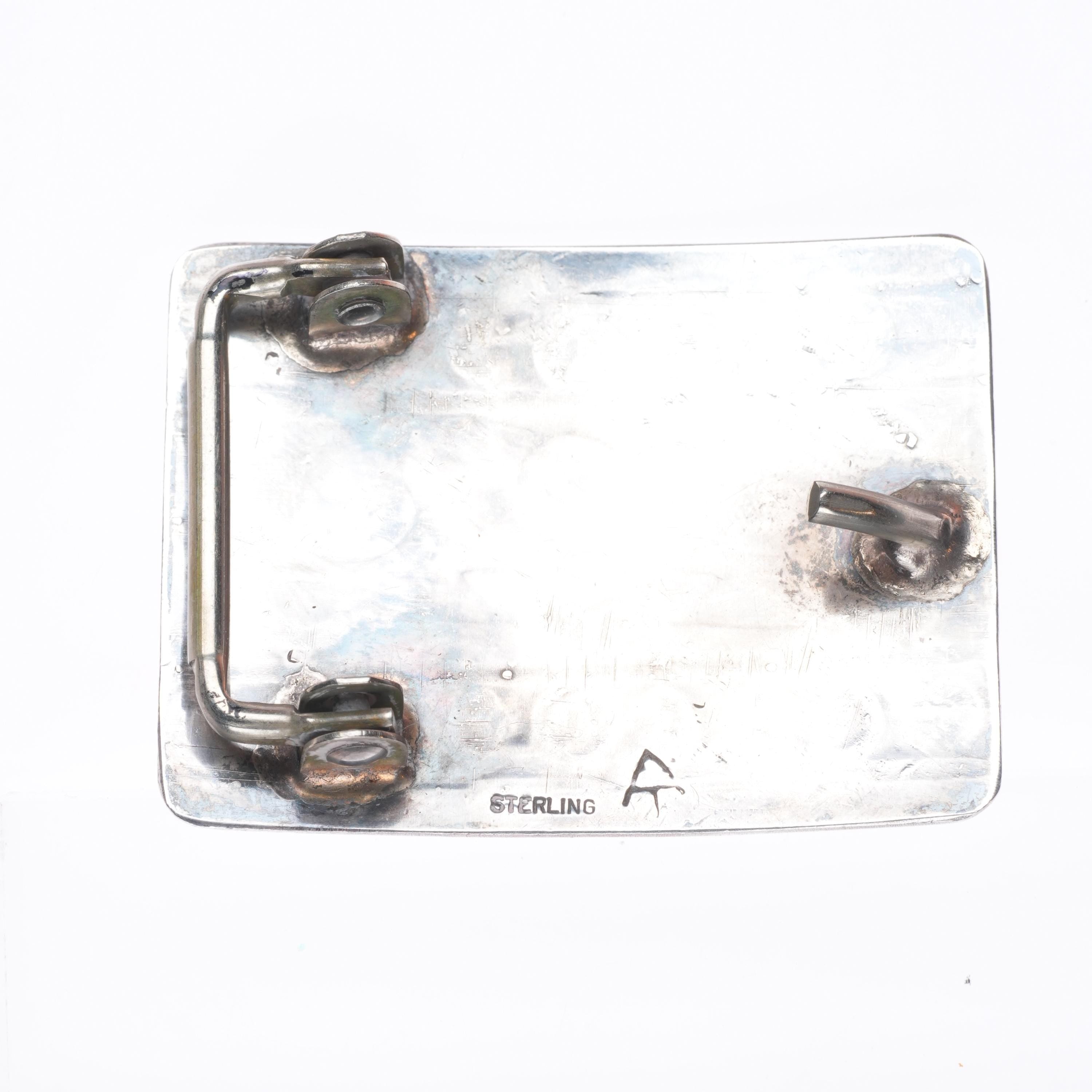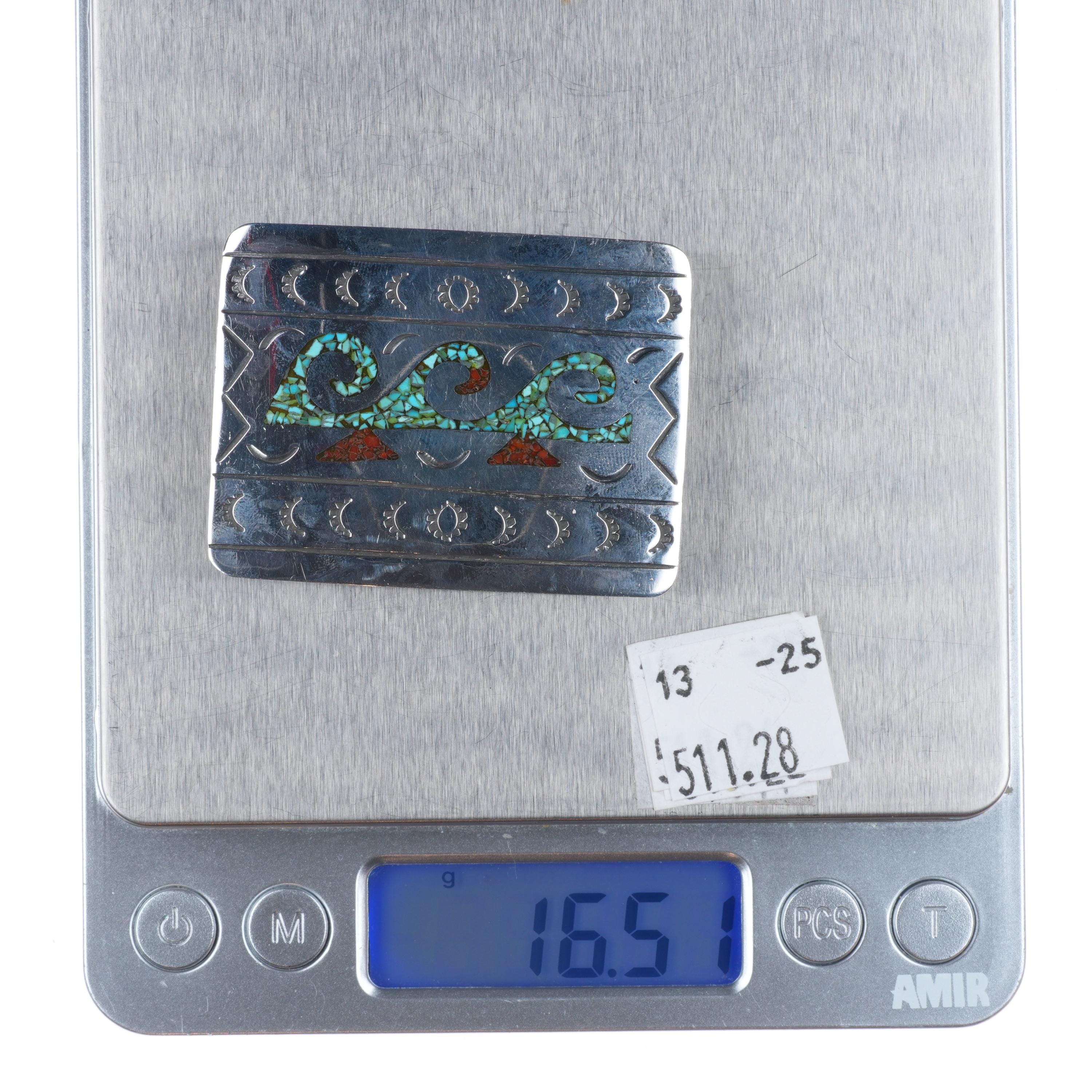 Vintage Atkinsons trading post Navajo chip inlay sterling silver belt buckle. Tested and guaranteed solid sterling silver weight and measurements in pictures, Circa last quarter of the 20th century. Fits a 1" belt. Functional with age appropriate wear.