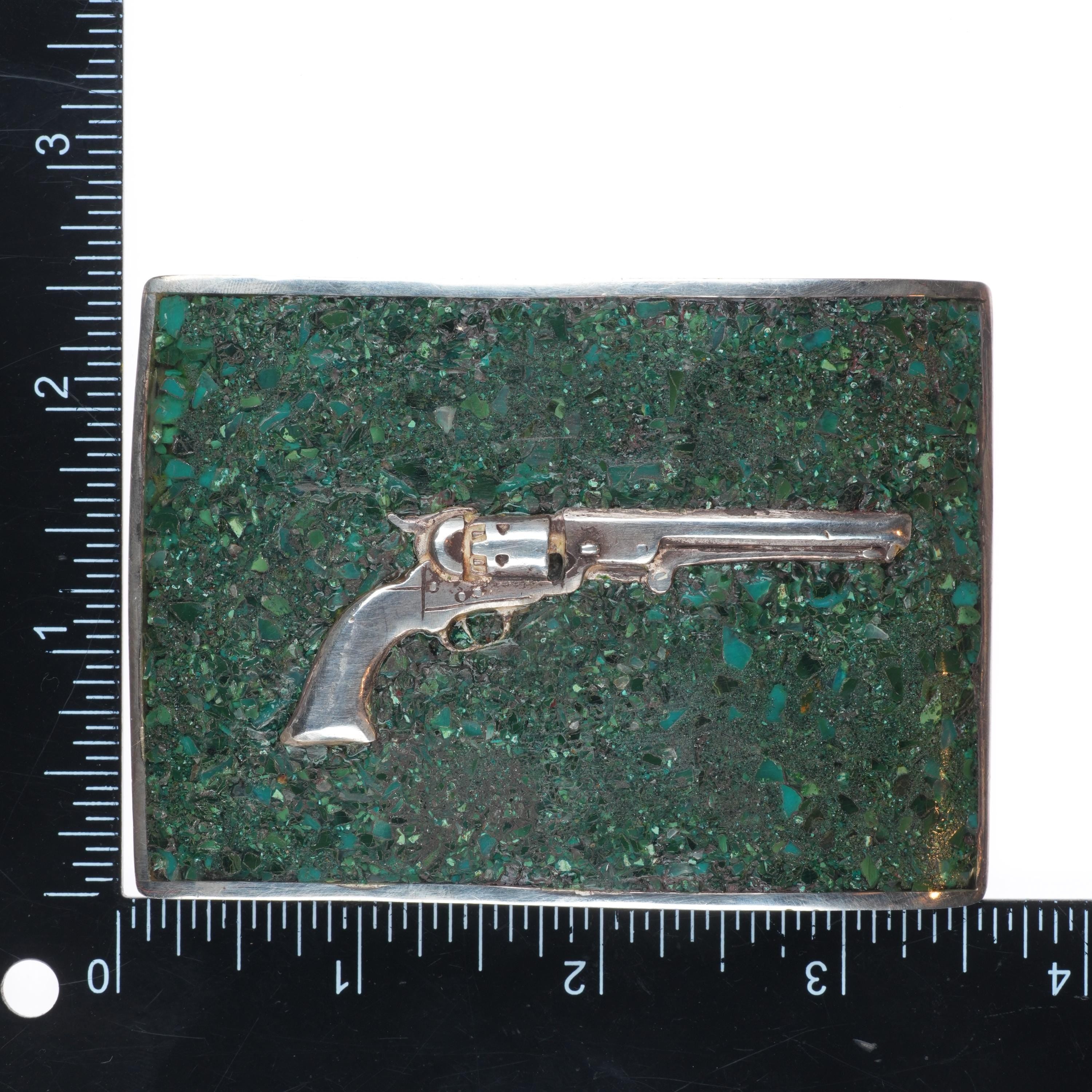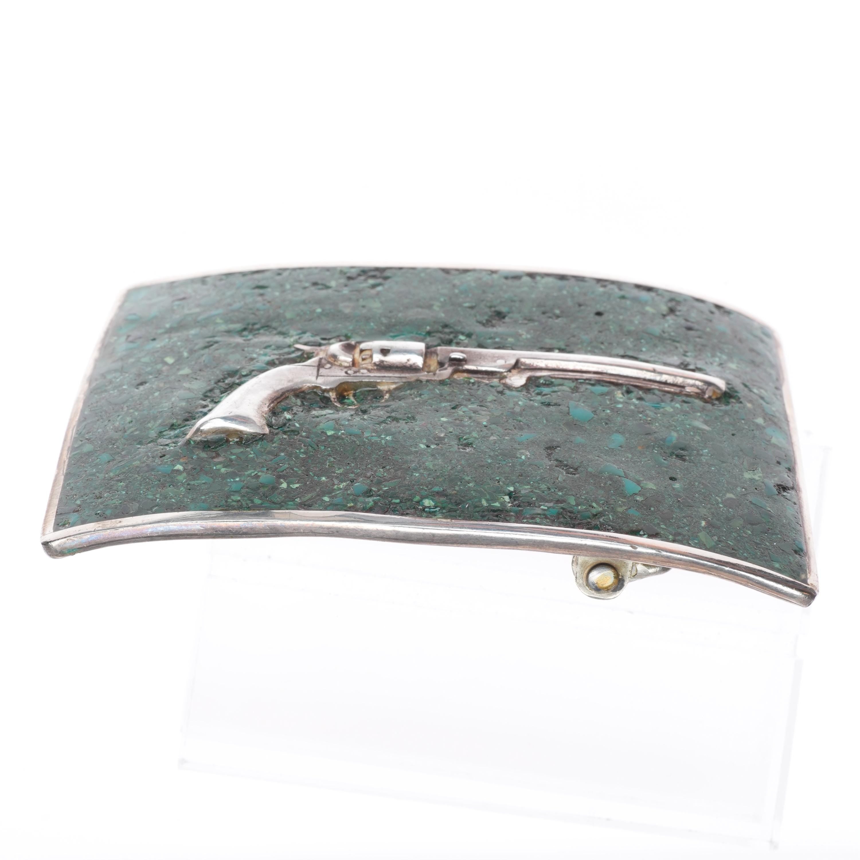 Vintage BLB Southwestern sterling silver chip inlay turquoise pistol belt buckle