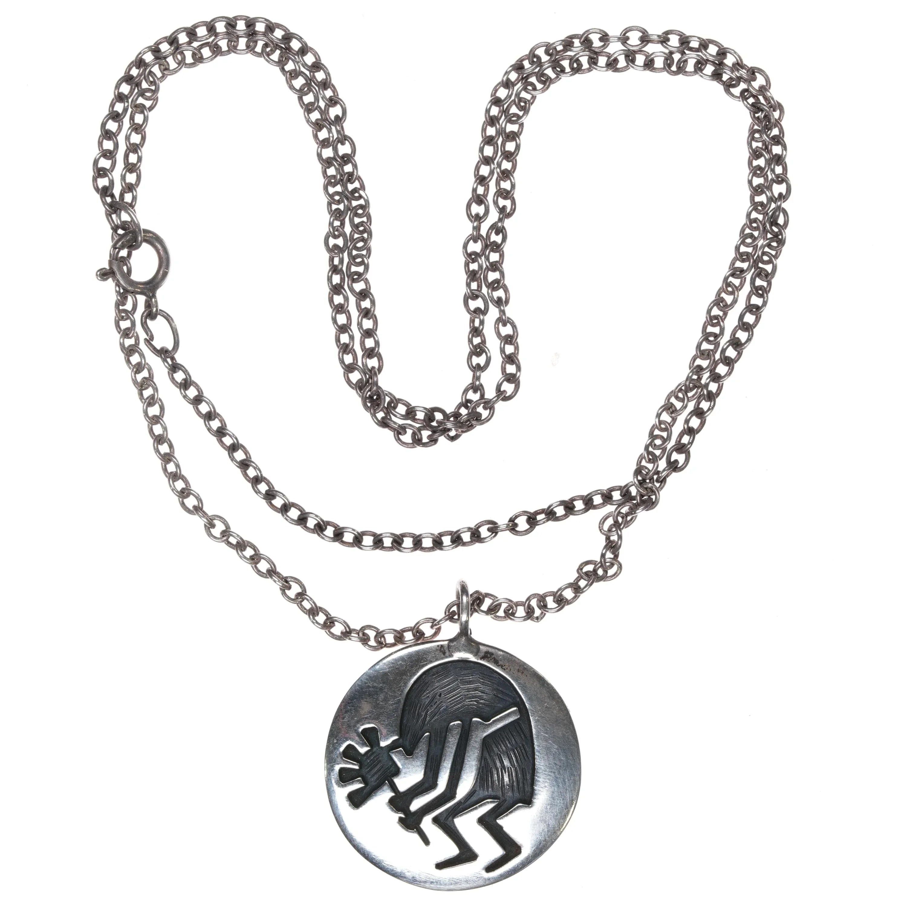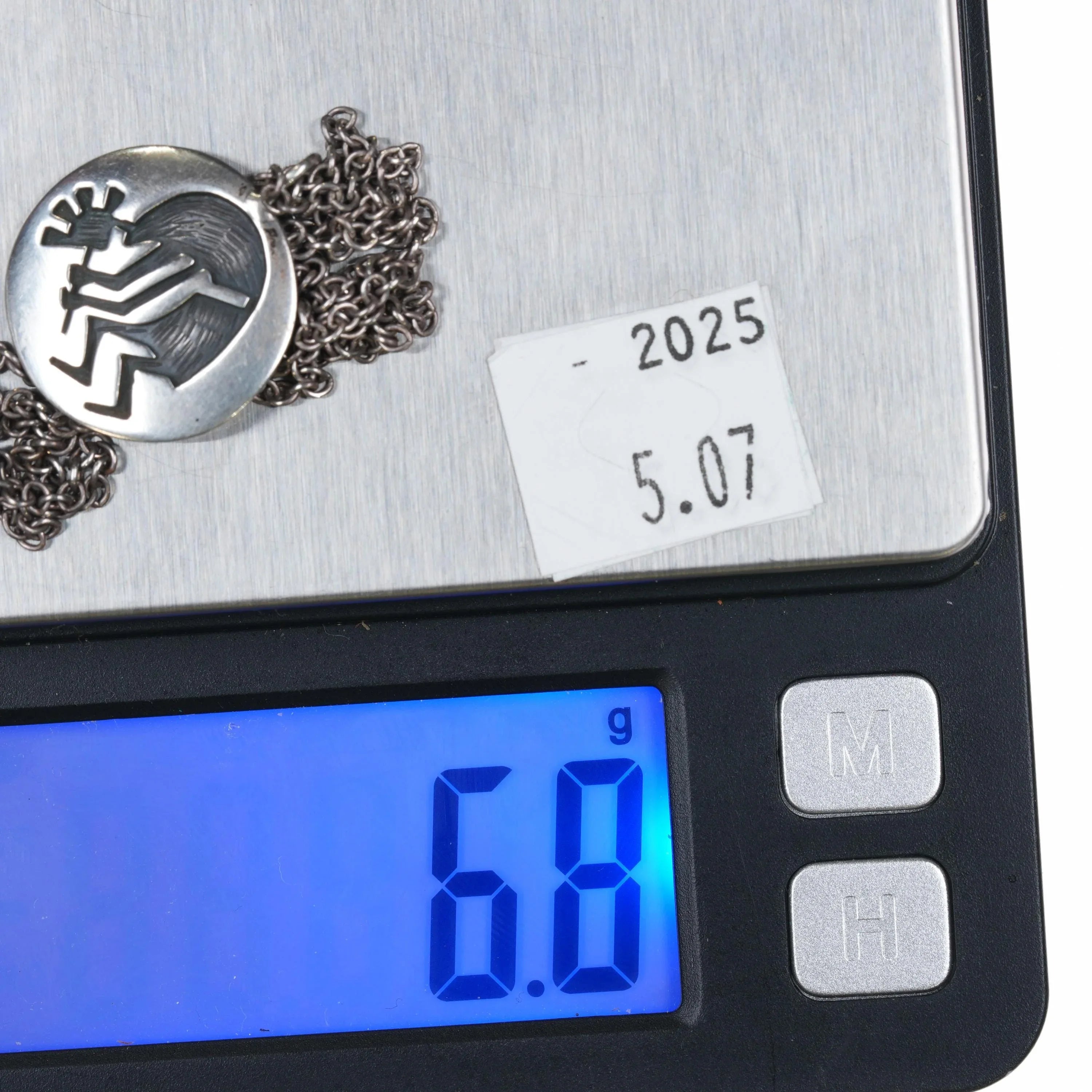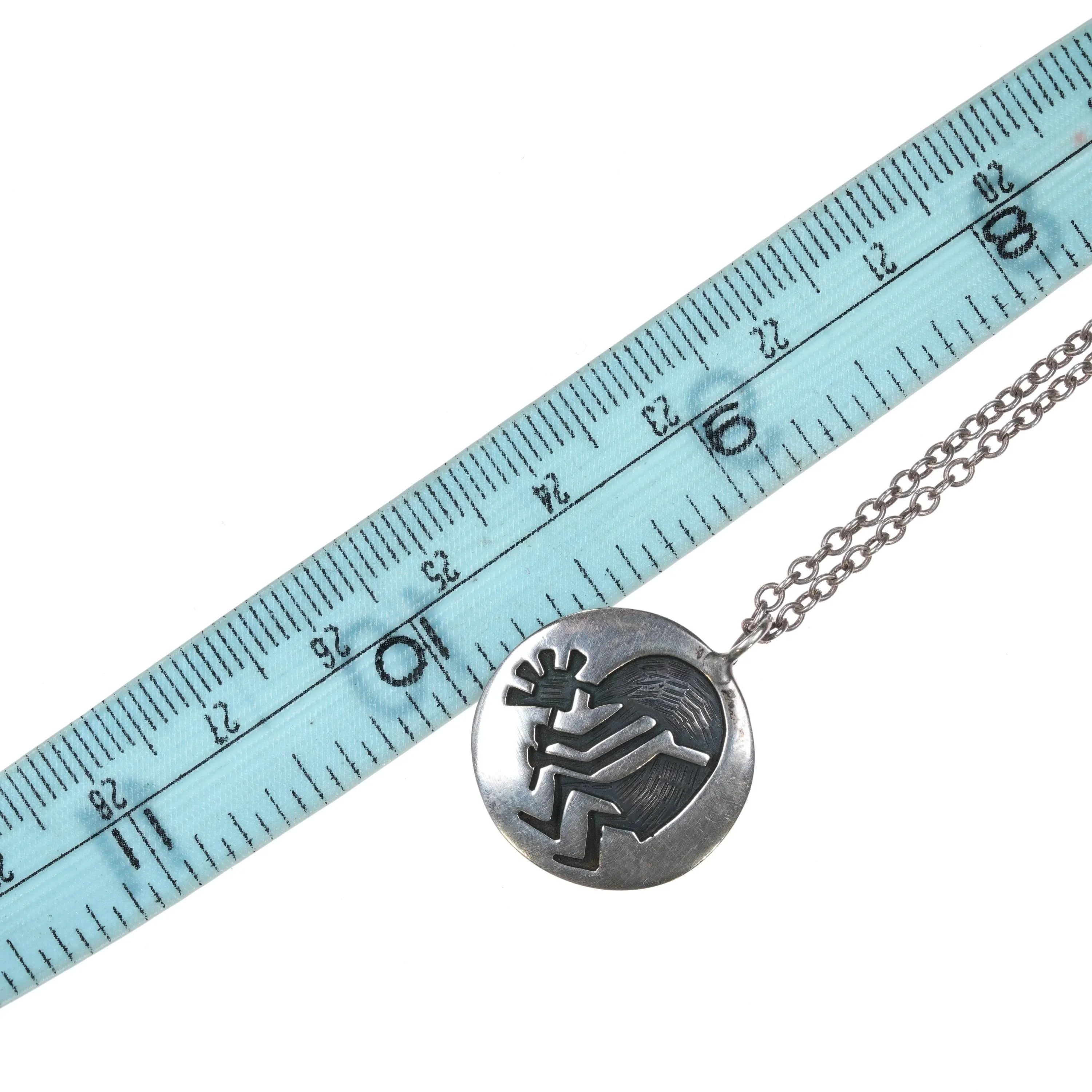 Vintage Hopi Overlay kokopelli sterling silver pendant on necklace. No damage or issues. 18" long necklace, well made necklace with weight and measurements in pictures. No damage. Necklace and pendant solid sterling silver. Pendant is Hopi made with unknown artist markings, necklace is older factory made likely from the first quarter of the 20th century.
