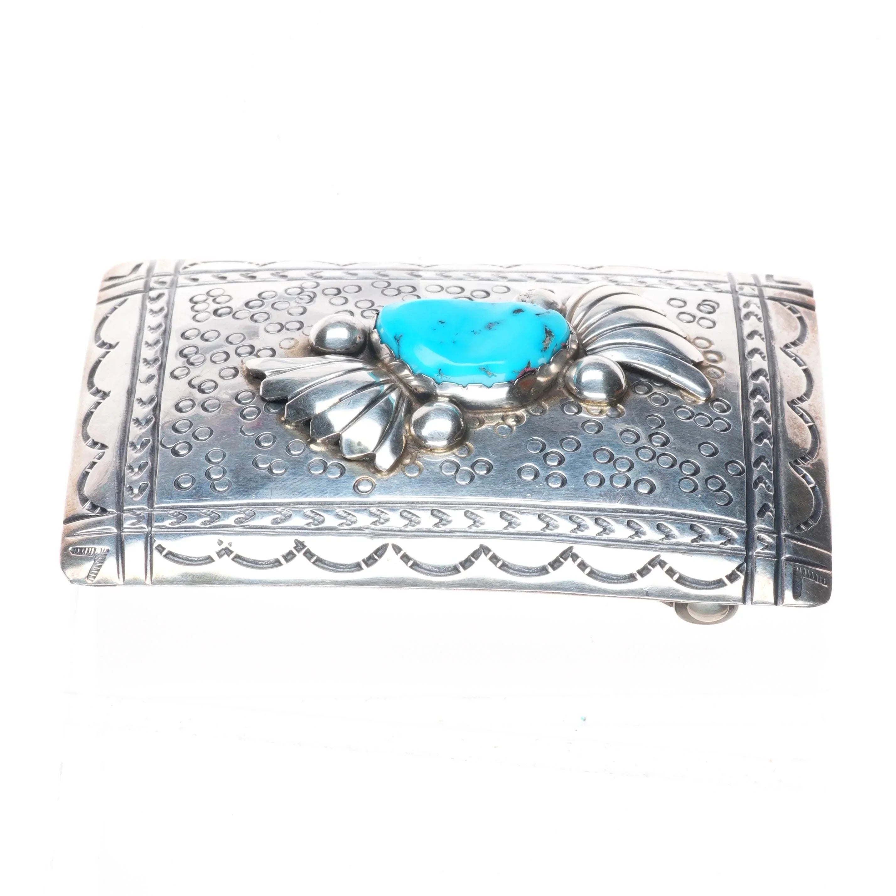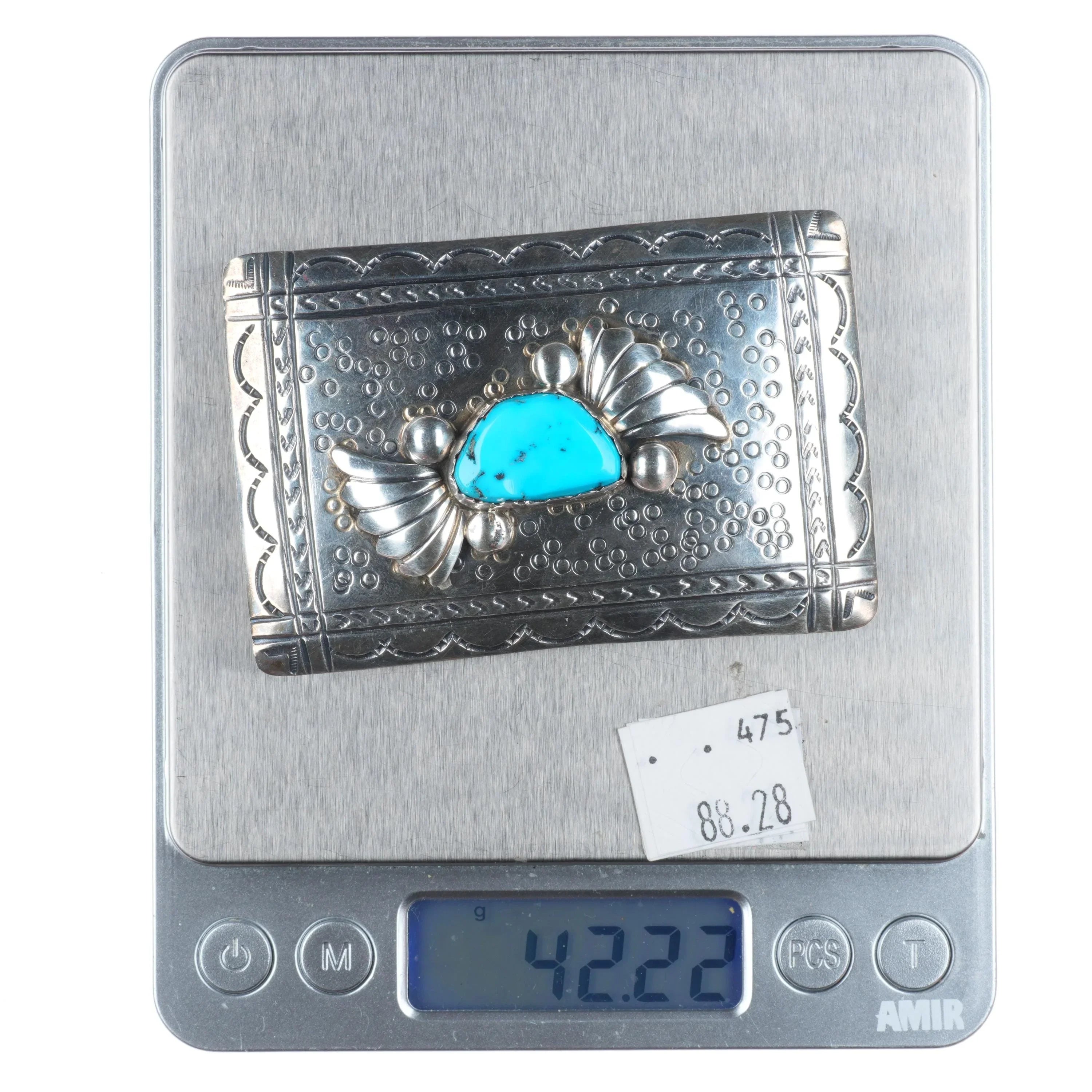 Vintage MB Navajo sterling silver belt buckle with turquoise