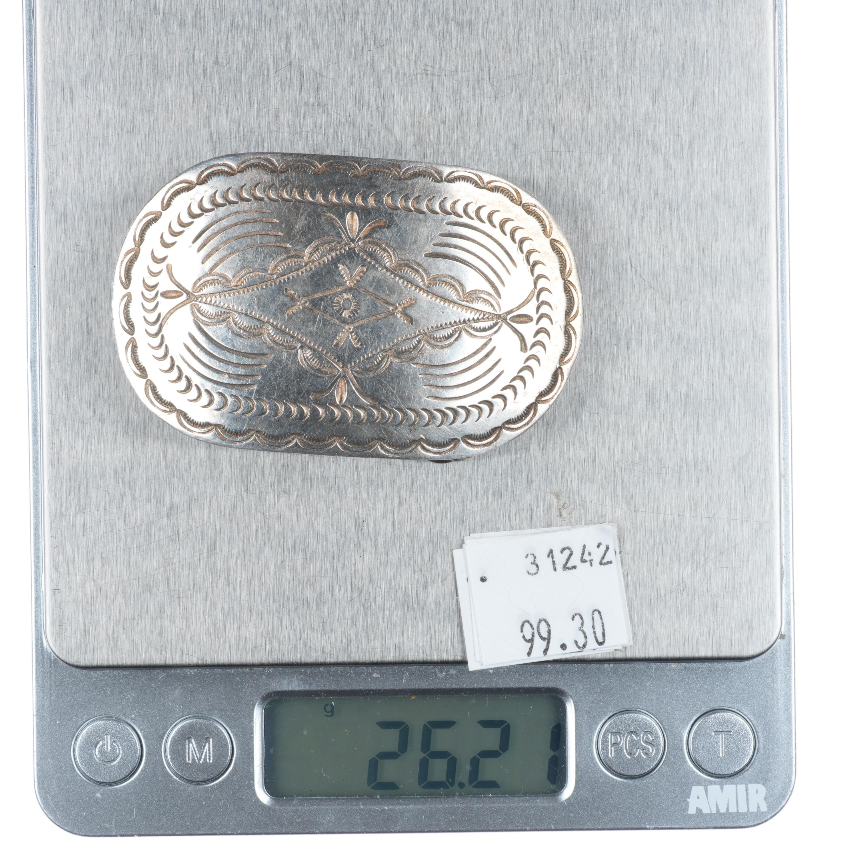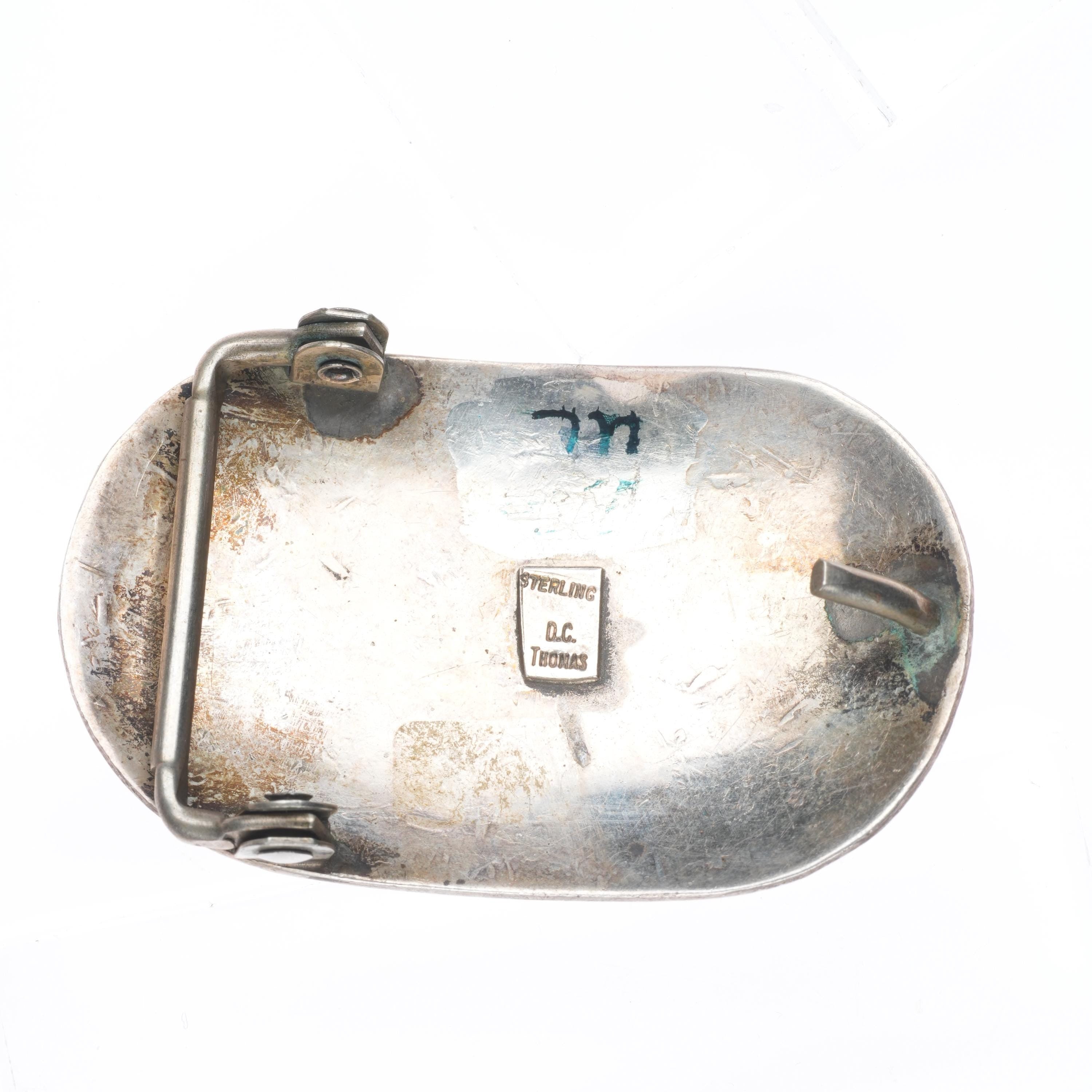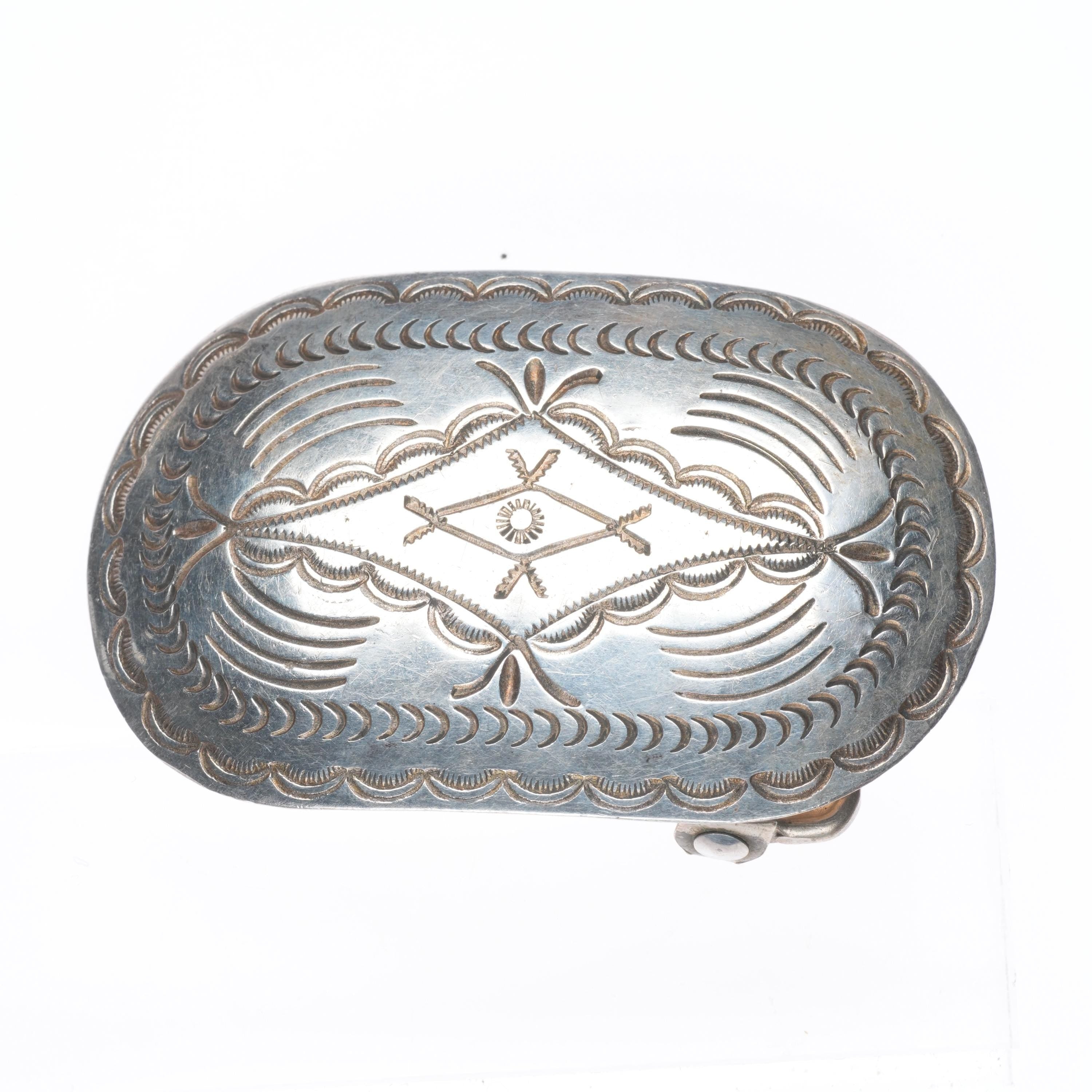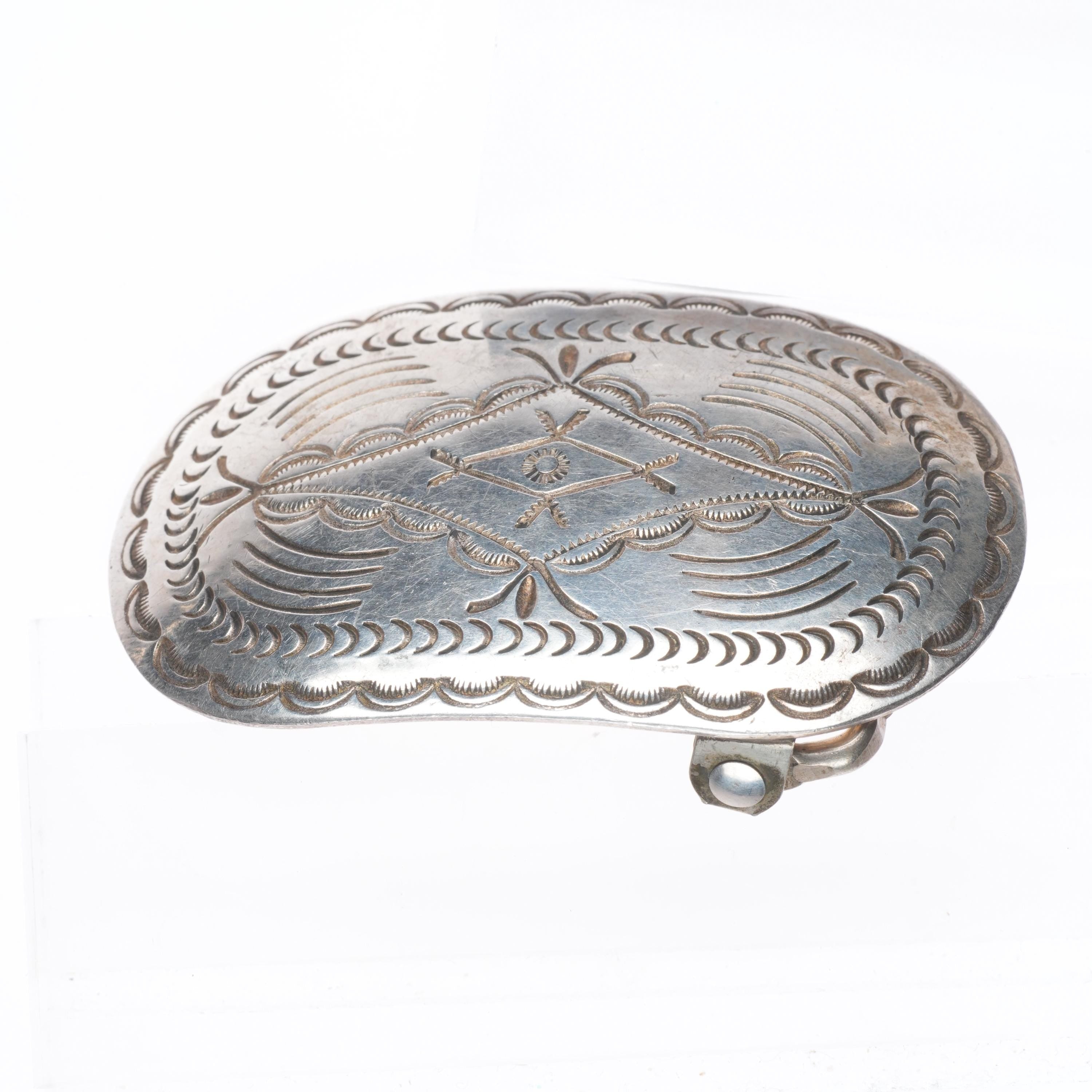 Vintage Navajo DC Thomas hand stamped sterling silver 1.25" belt buckle