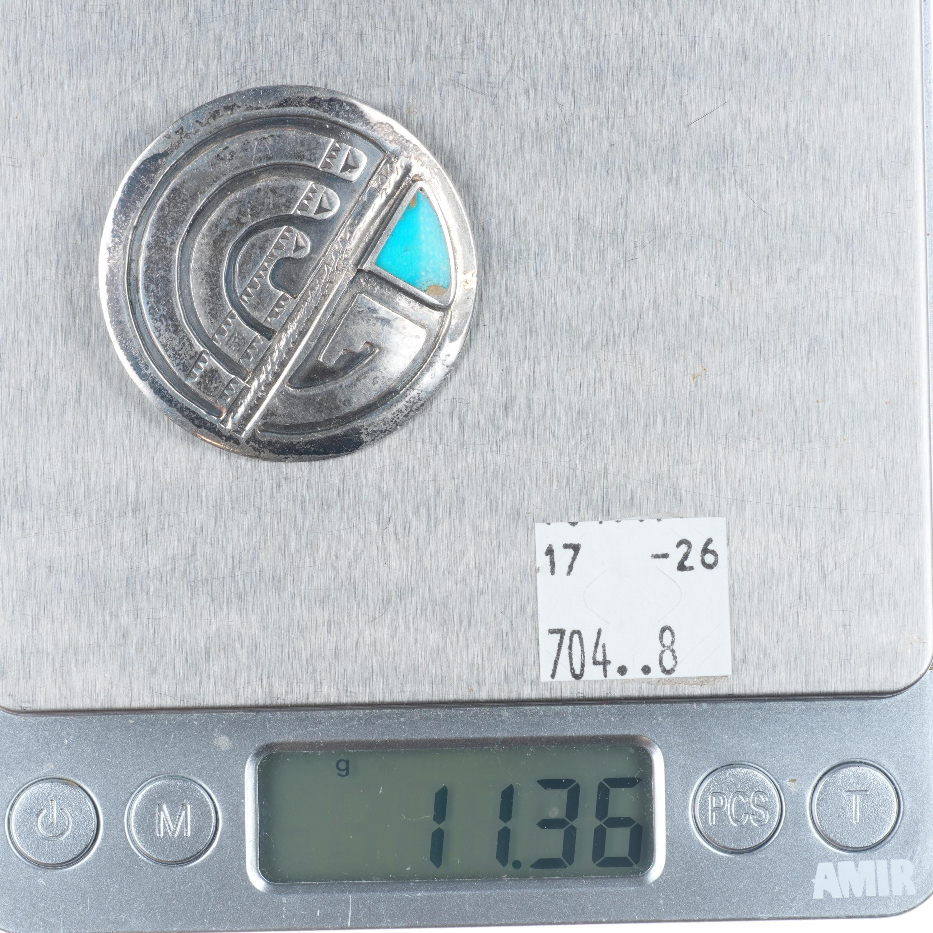 Vintage Navajo overlay pin/brooch sterling silver with flush inlay turquoise. Selling the pin shown in good condition with weight and measurements in pictures. Tested and guaranteed solid sterling silver. Circa mid 20th century.