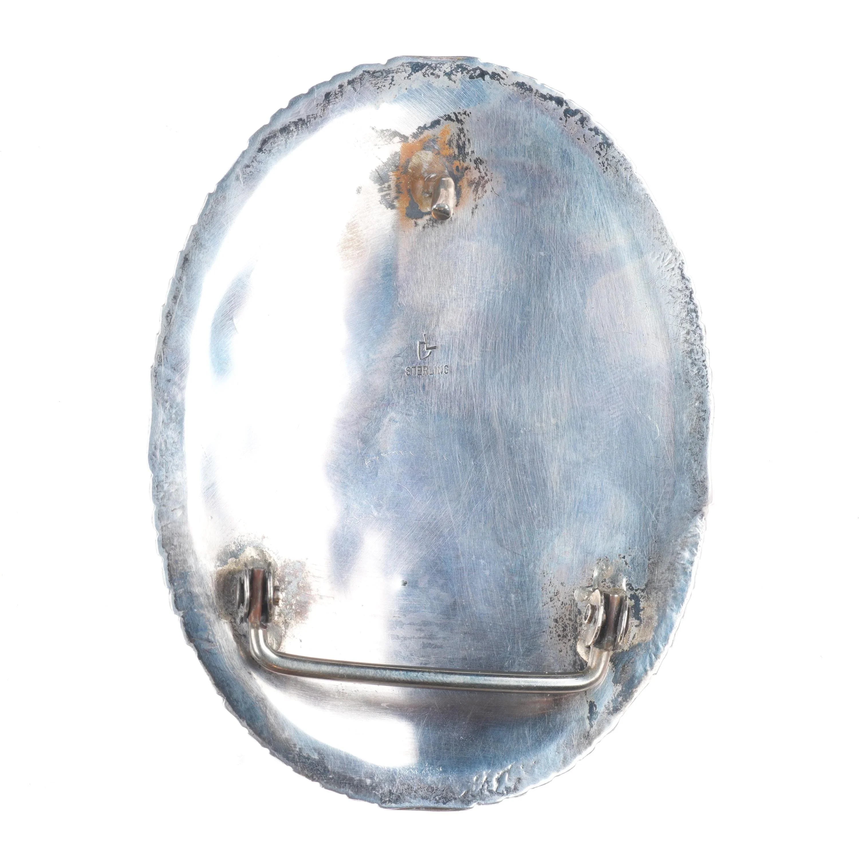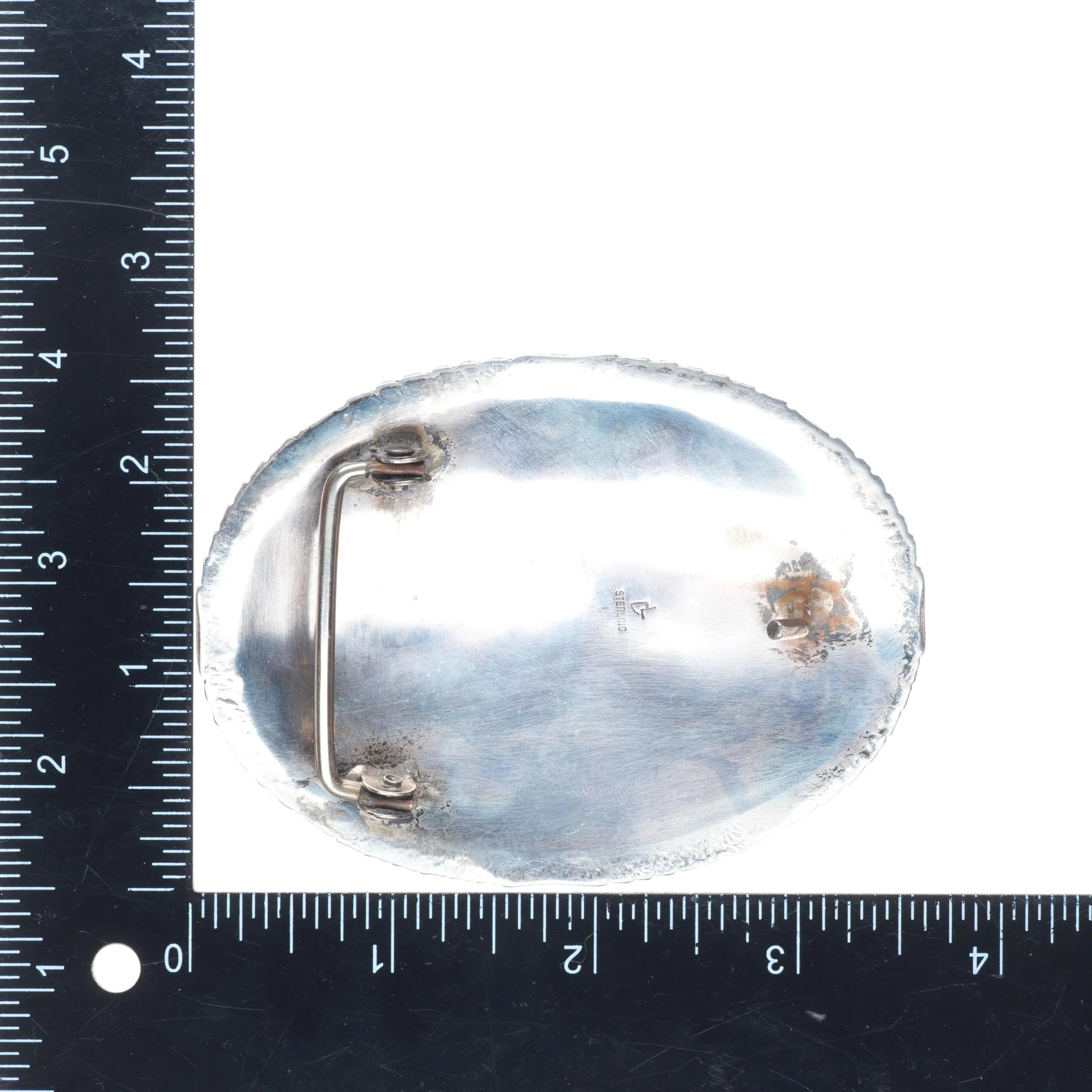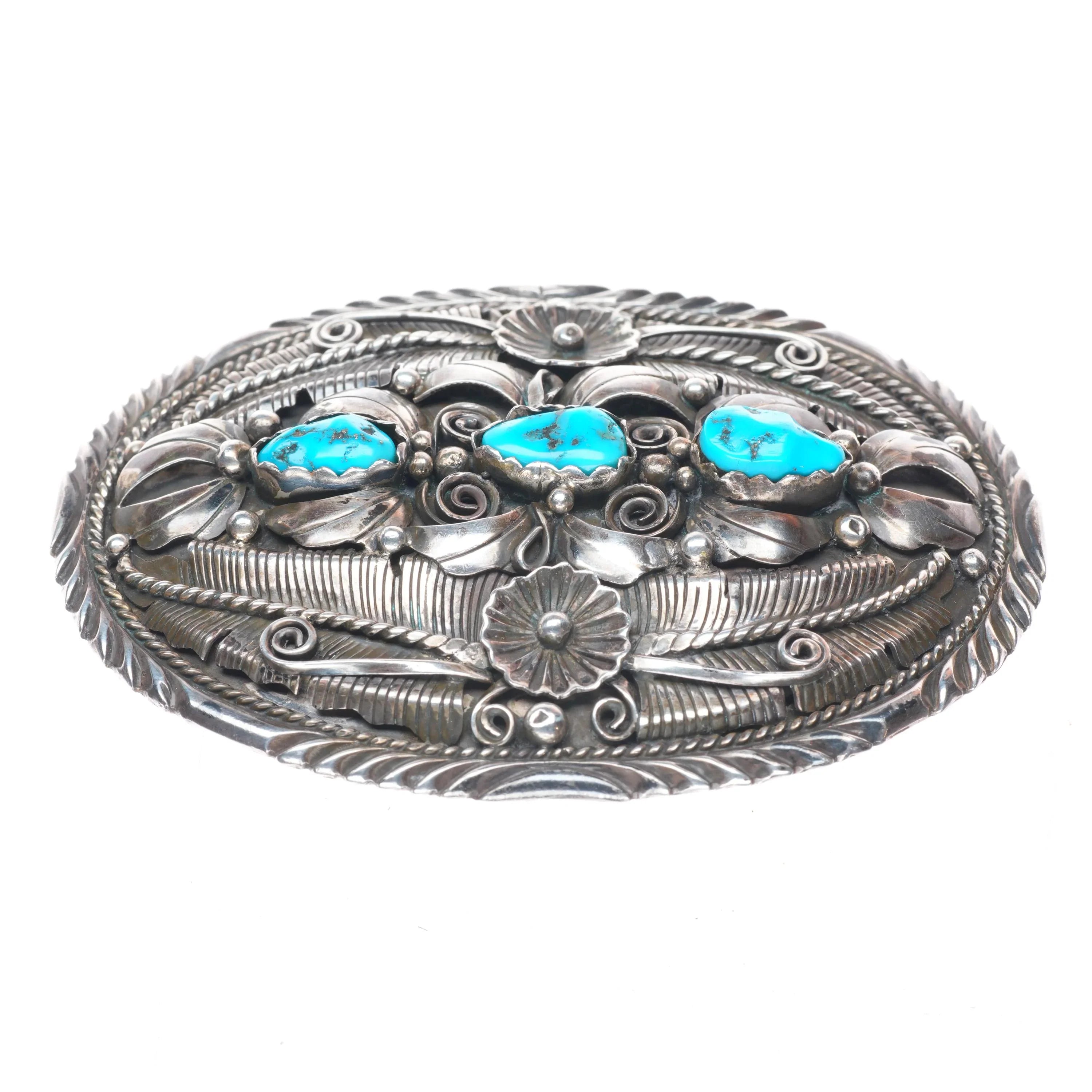 Vintage Navajo sterling silver 3 stone turquoise feather/blossom belt buckle