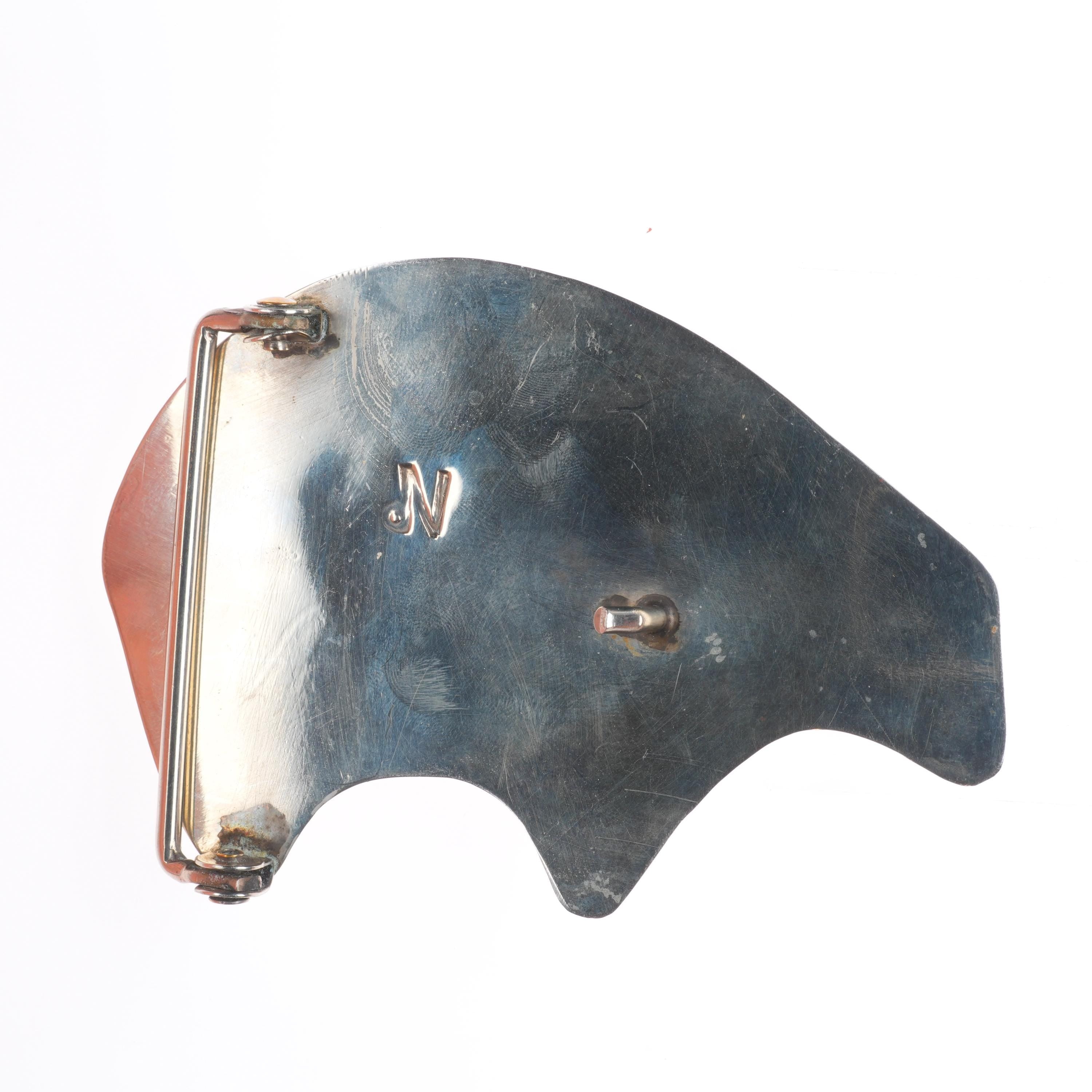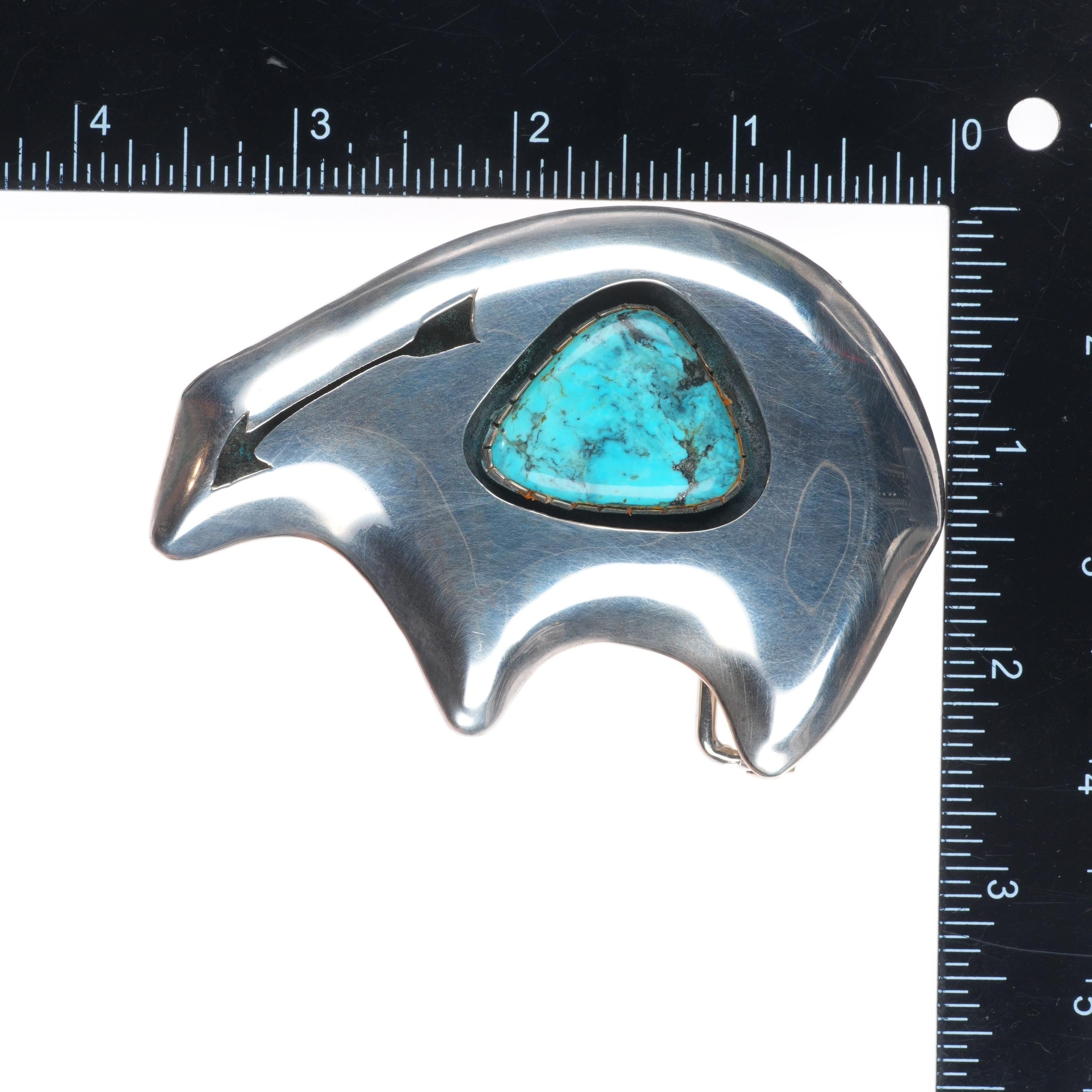 Vintage Navajo sterling silver bear shaped shadowbox belt buckle with turquoise