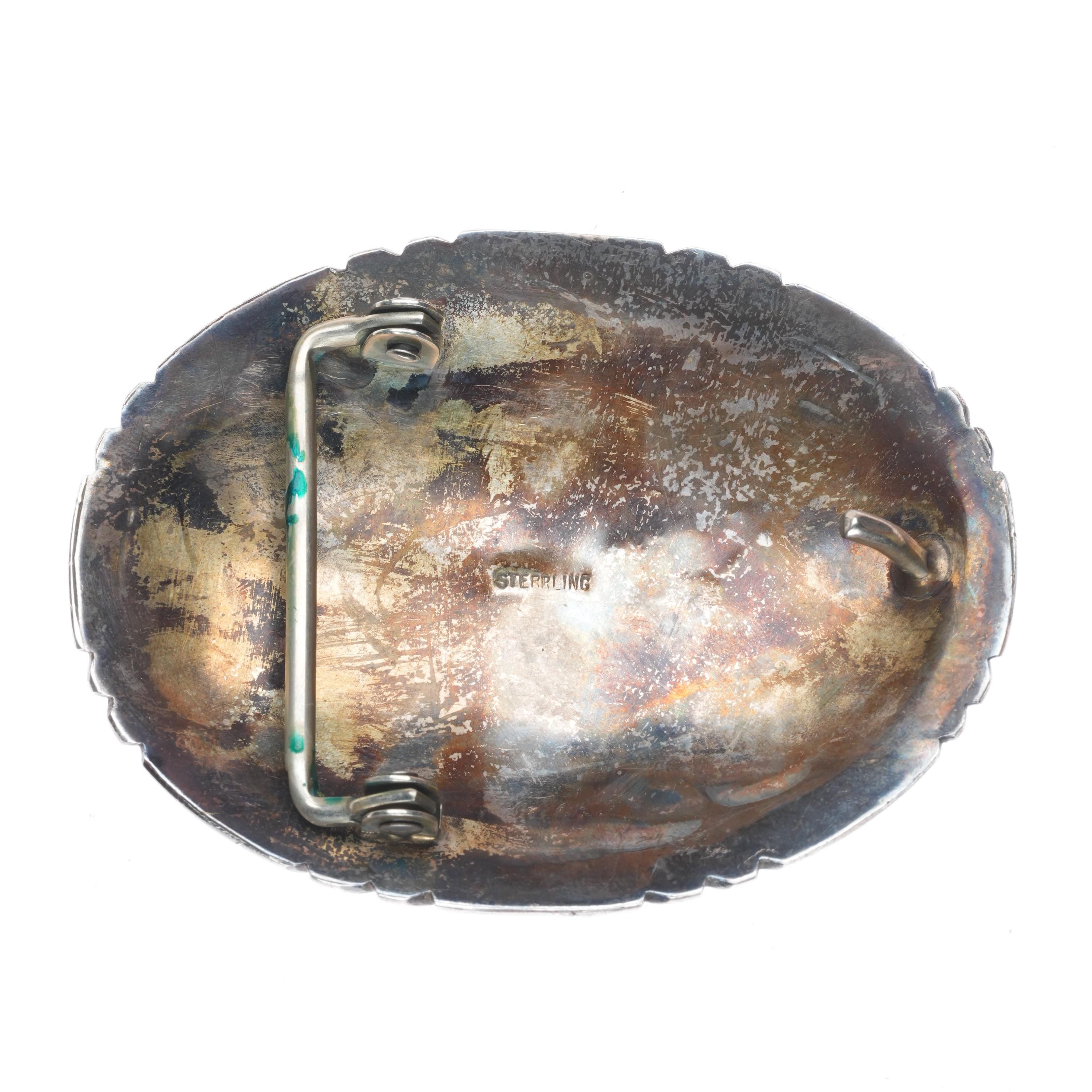 Vintage Navajo sterling silver Kingman turquoise cluster belt buckle. Fits up to a 1.5" belt. Tested and guaranteed solid sterling silver with weight and measurements in pictures. Fully functional. All items will likely have some age appropriate/expected wear, the older they are the more wear they should have. Circa third quarter of the 20th century..