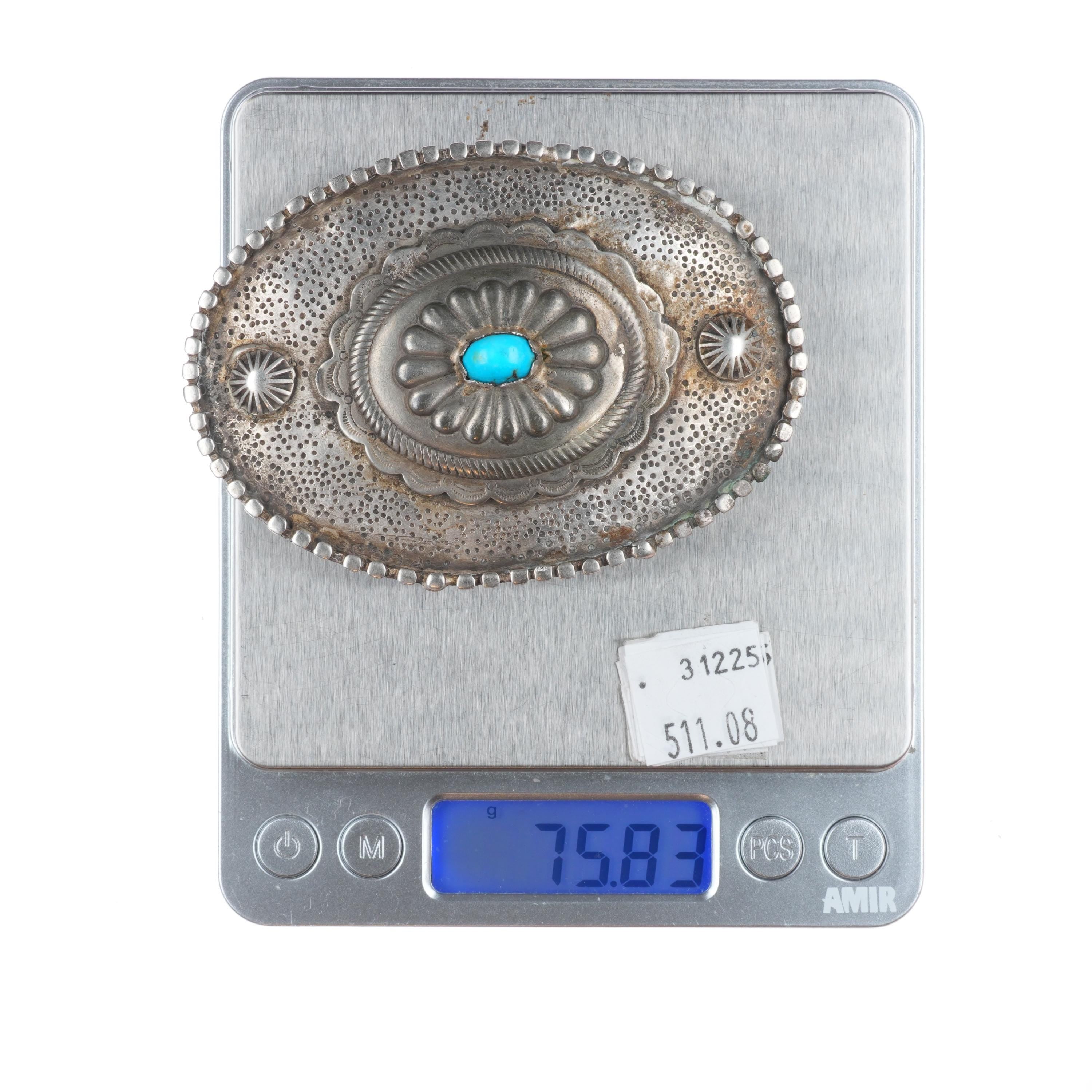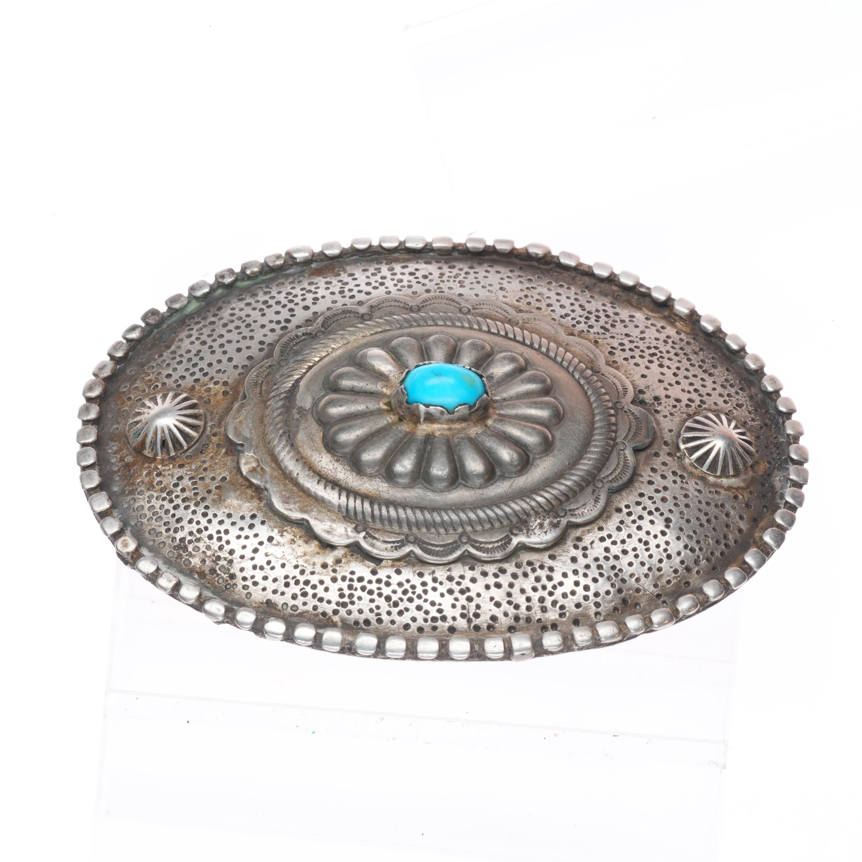 Vintage Navajo sterling silver, turquoise concho center belt buckle