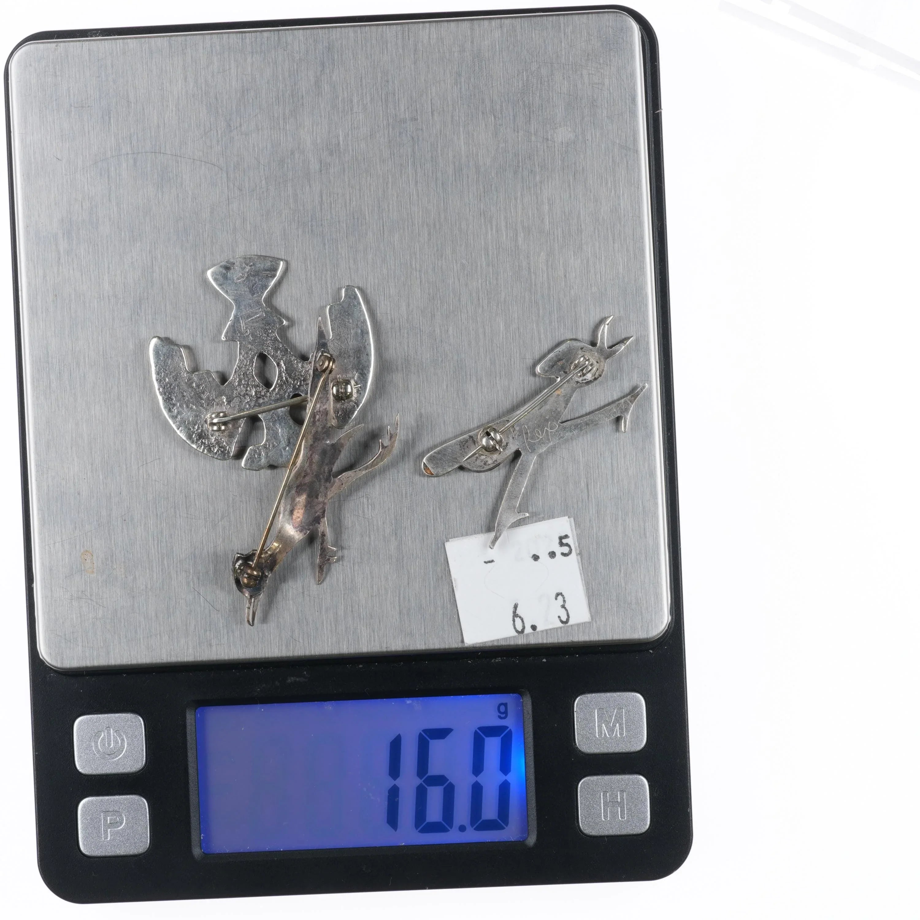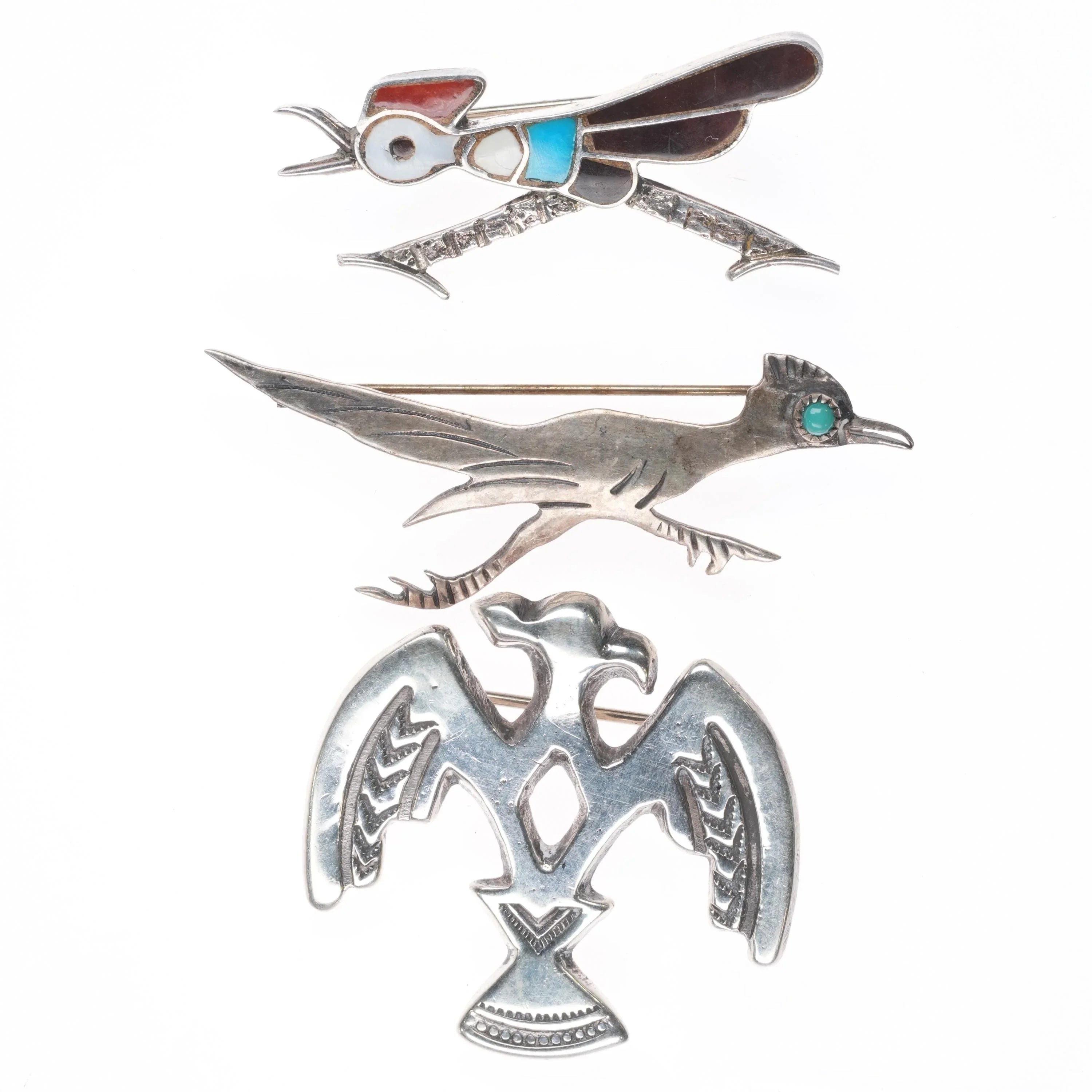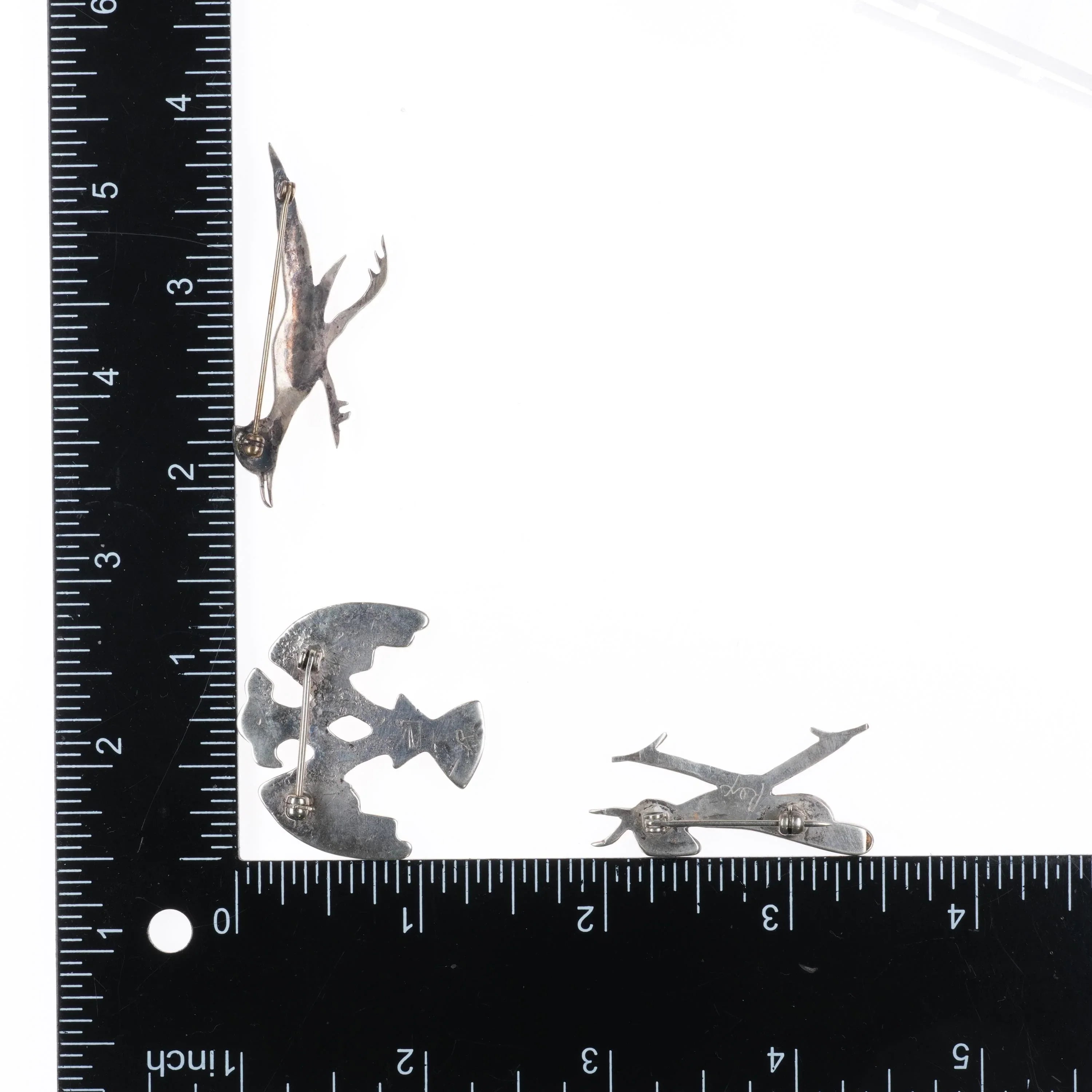 Vintage Navajo/Zuni sterling silver Roadrunner/thunderbird pins