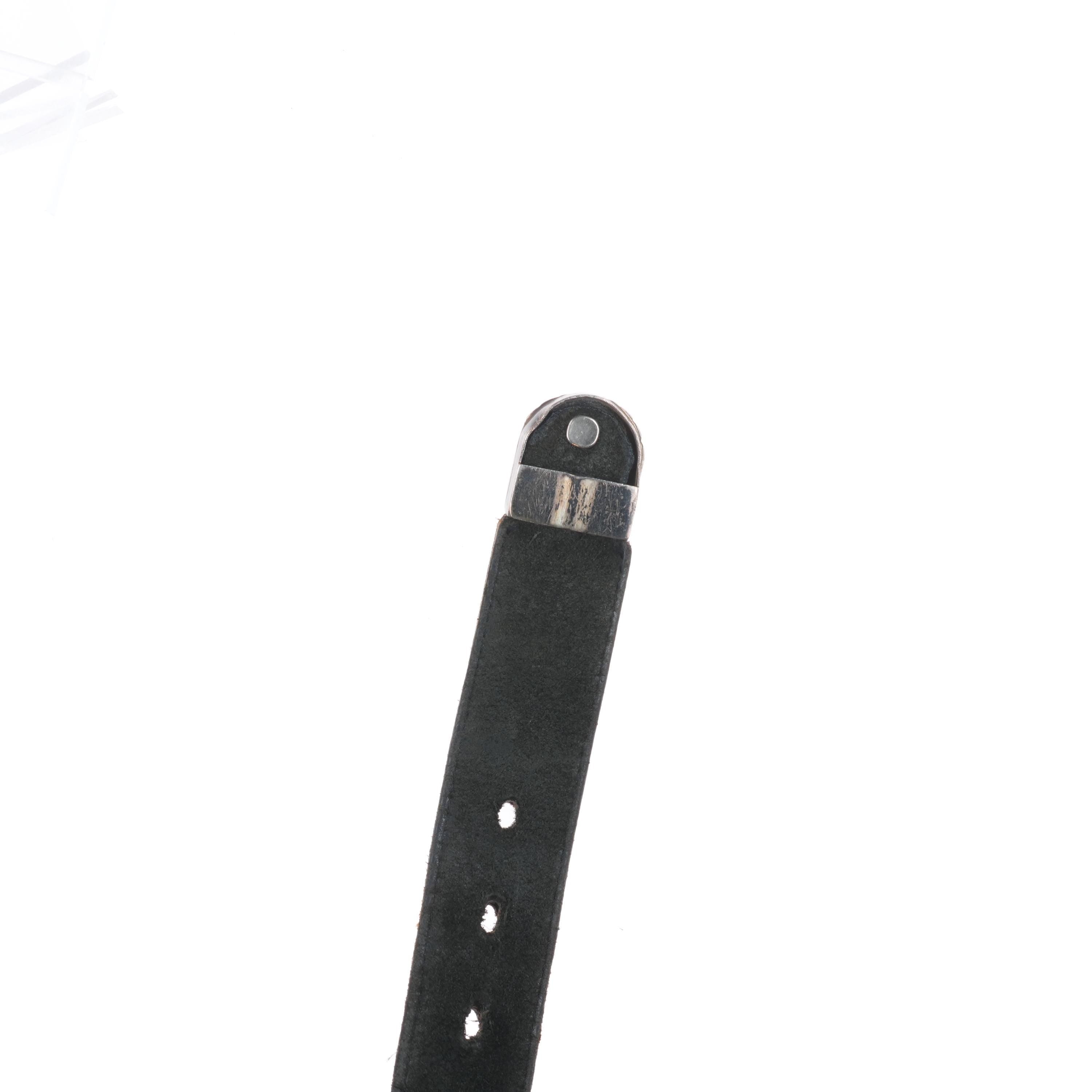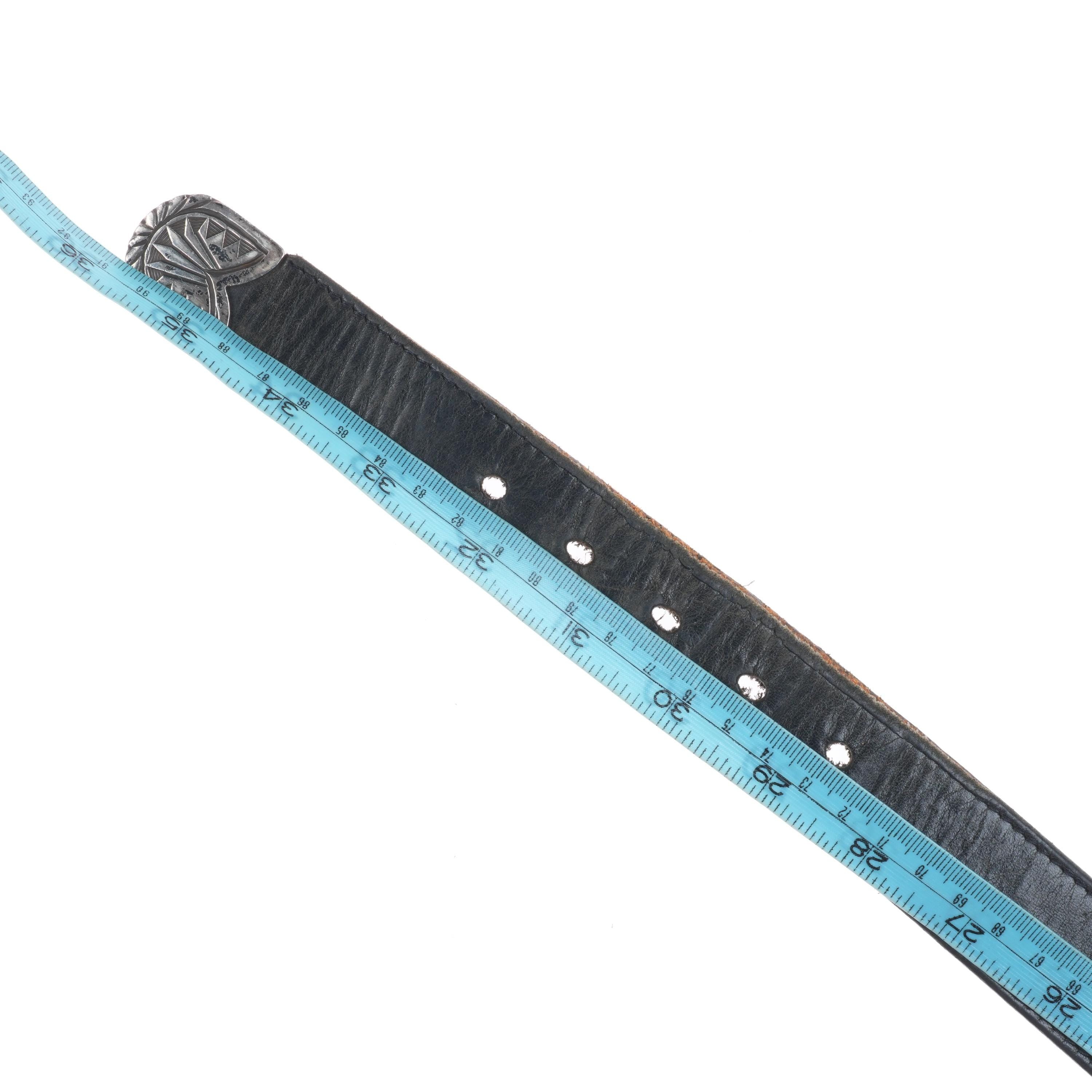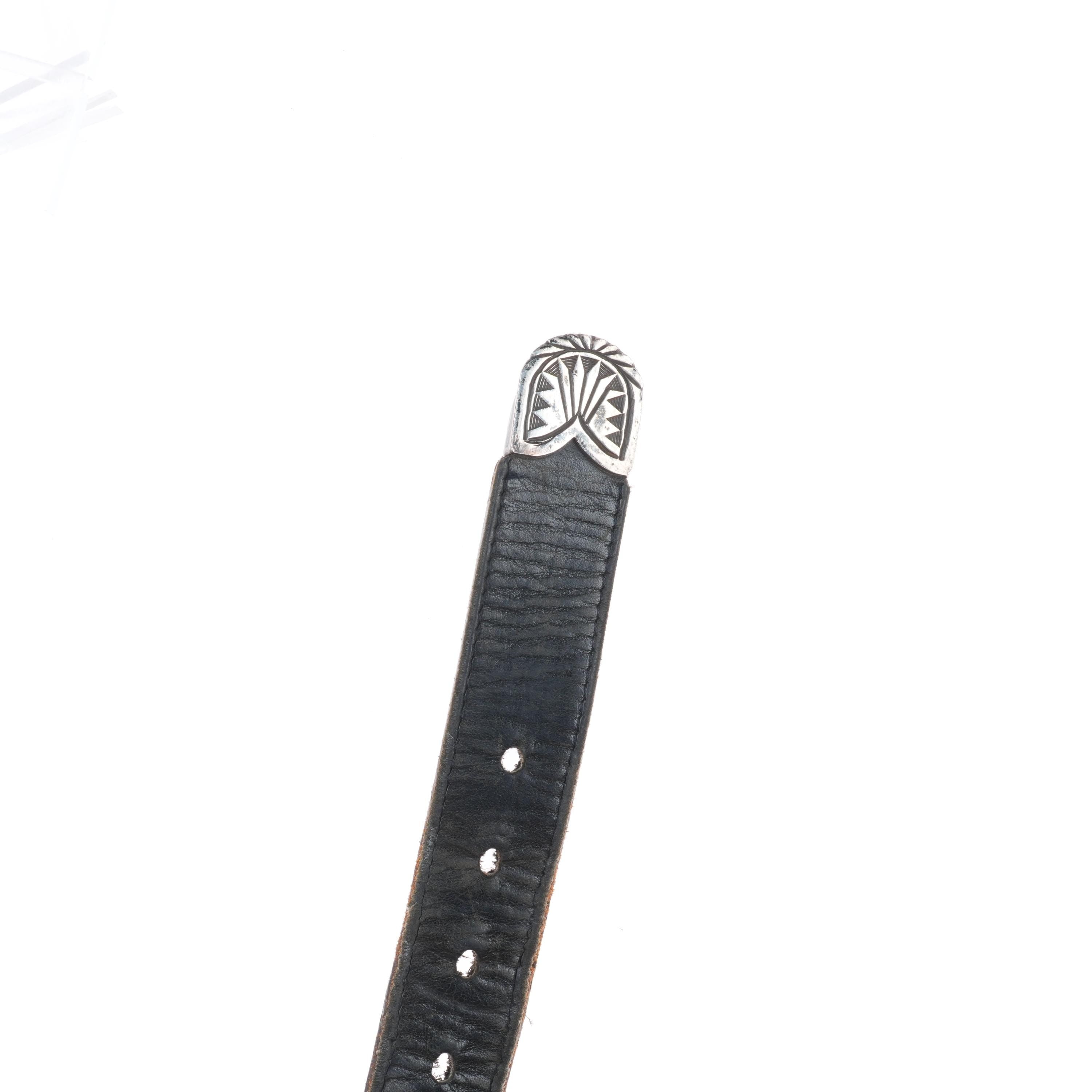 Ranger belts taper down at the buckle/keeper/tip as shown. Belt not guaranteed for condition, I‘m selling the sterling ranger belt buckle set and the belt is free, last hole on belt is 32.5".