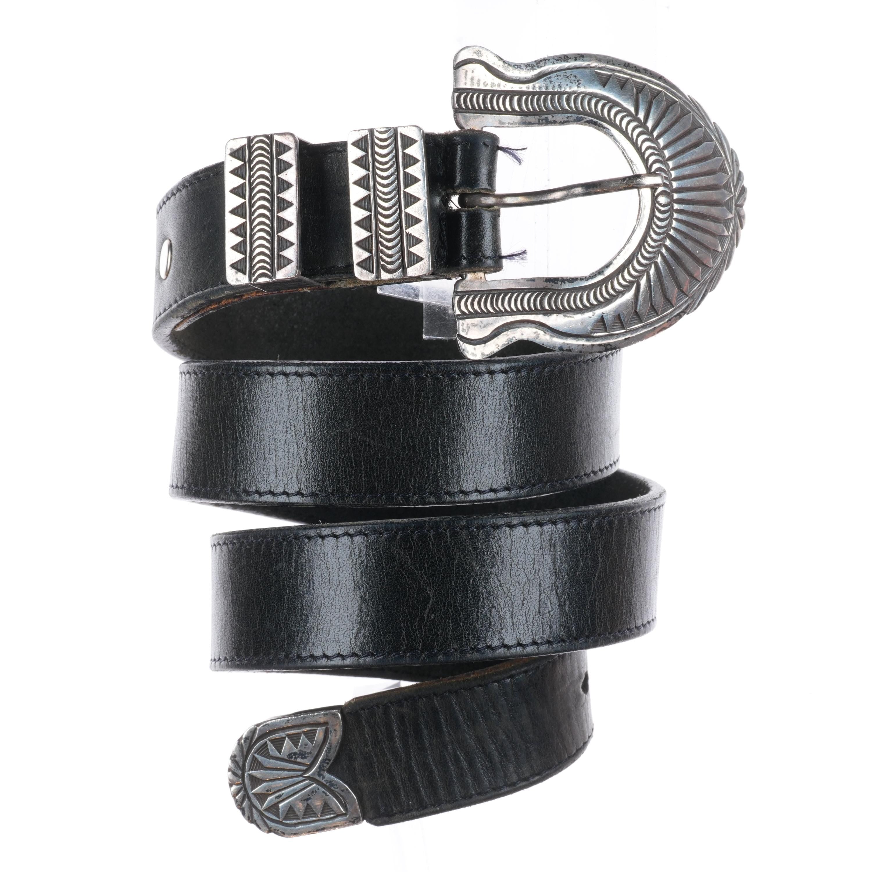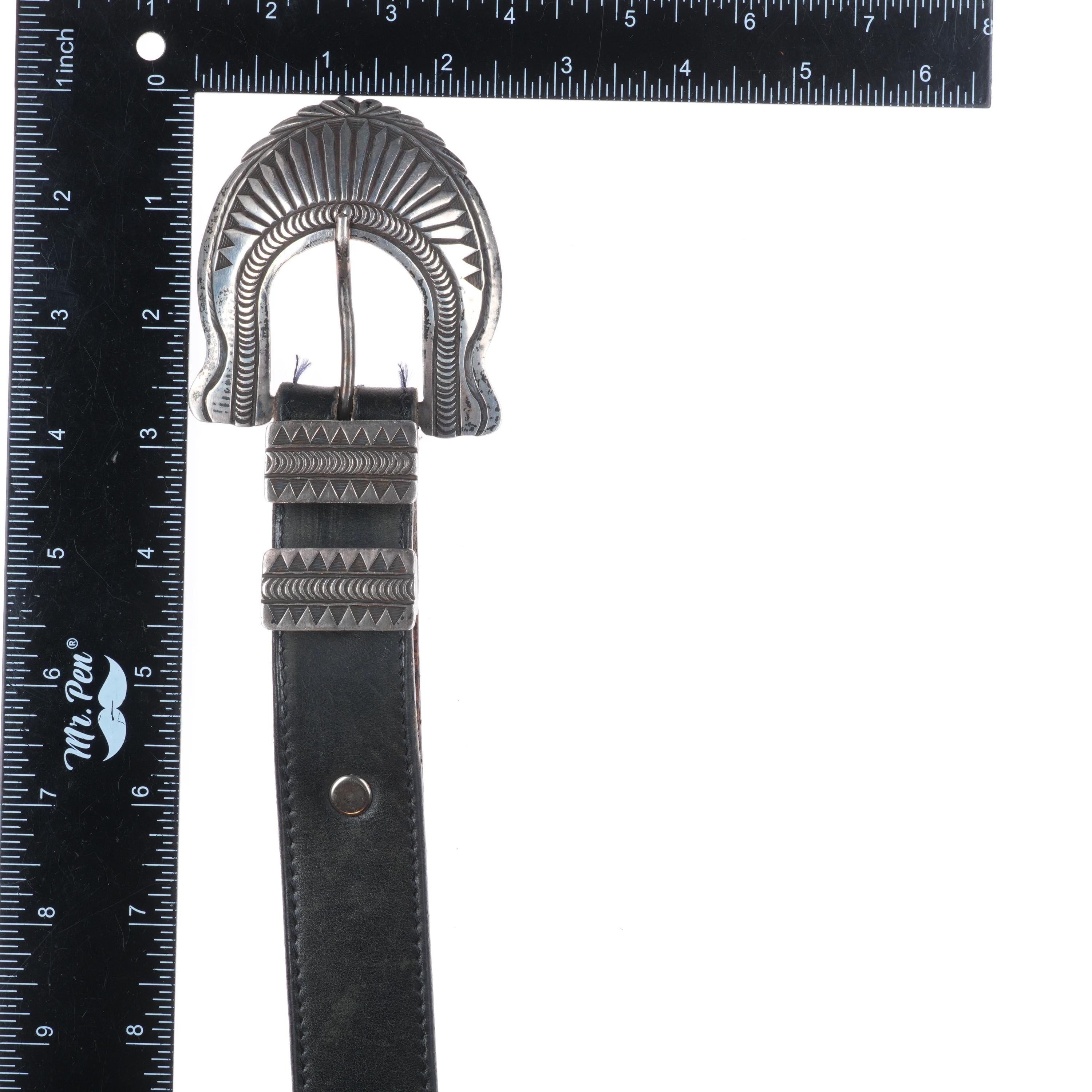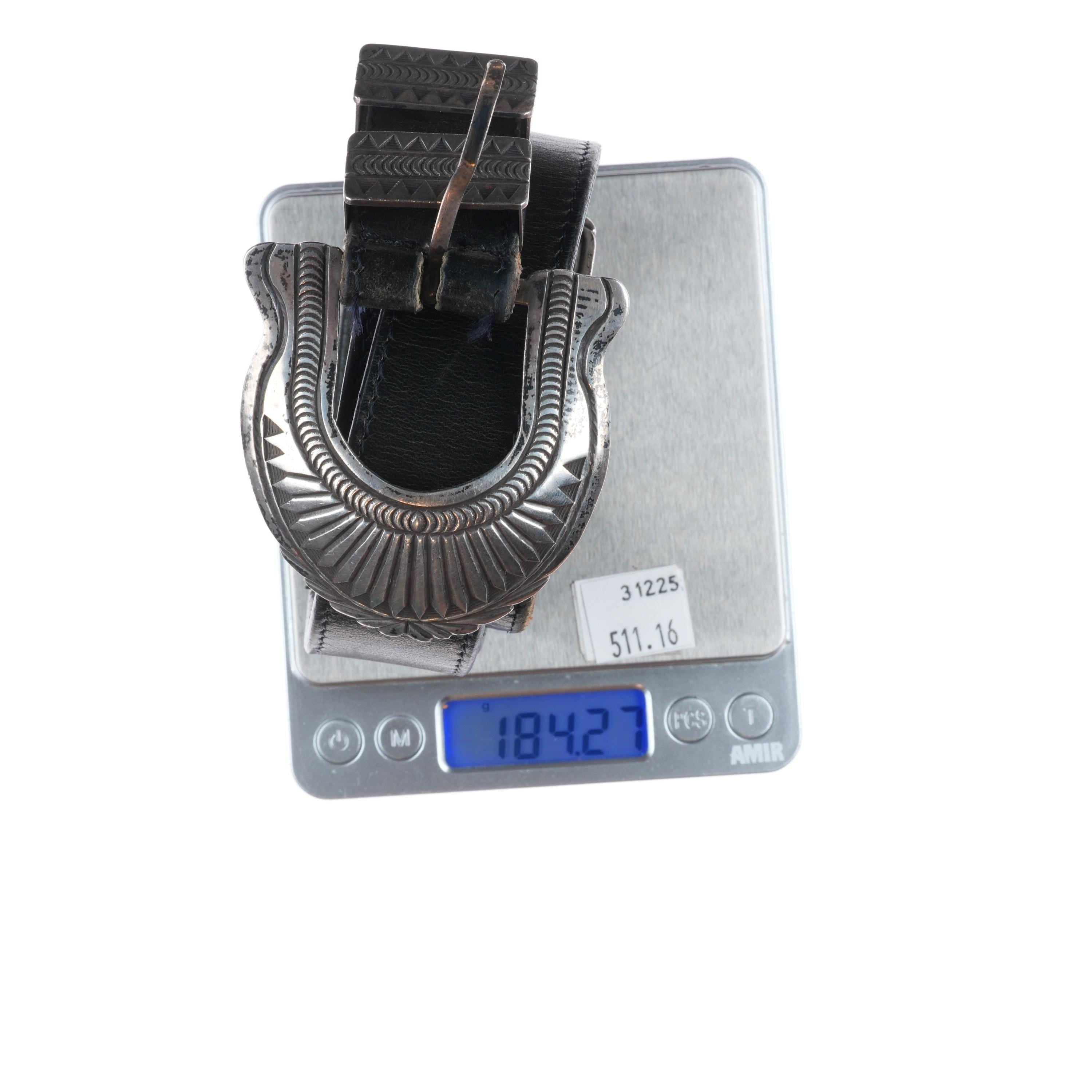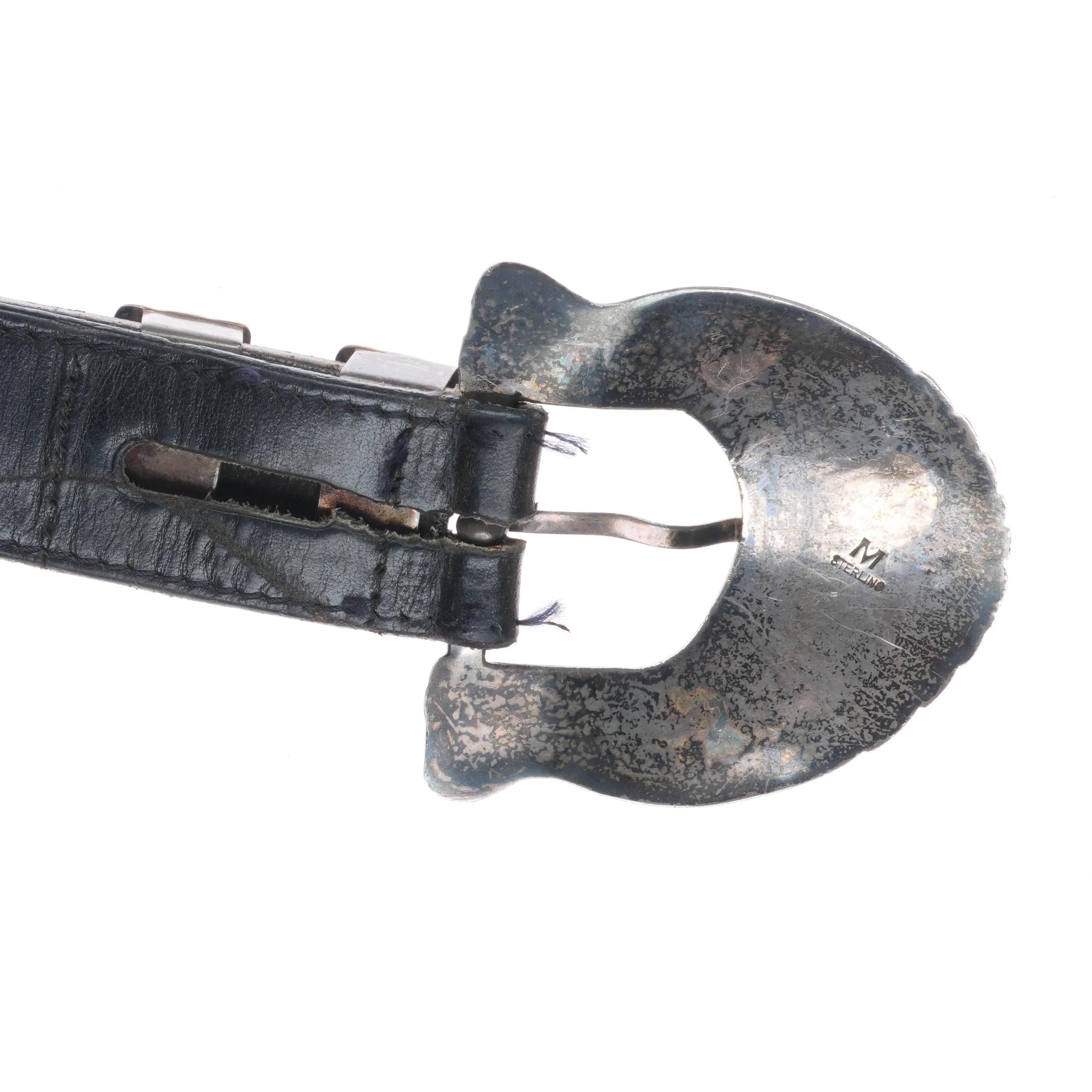 Vintage Pete Morgan Navajo sterling silver 1" ranger belt buckle set. Tested and guaranteed solid sterling silver weight and measurements in pictures, circa last quarter of the 20th century. Fits a 1" belt.