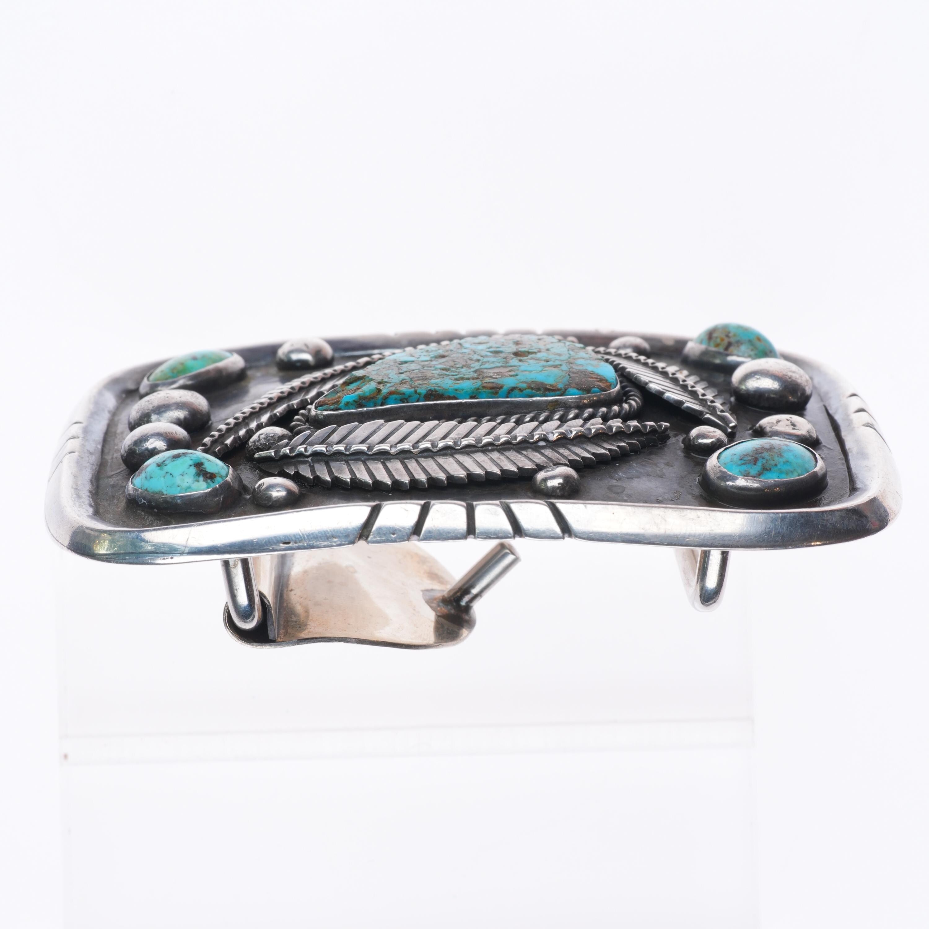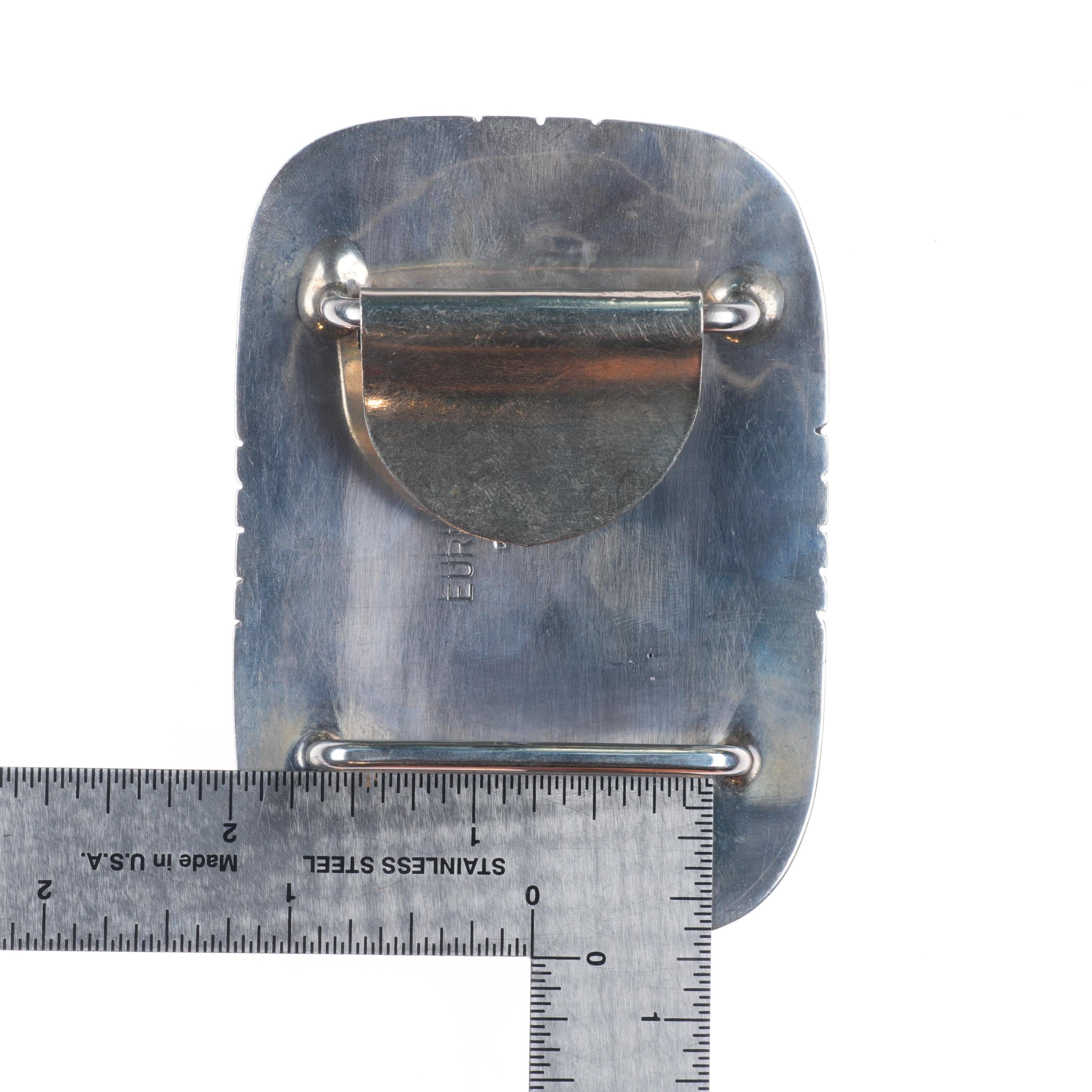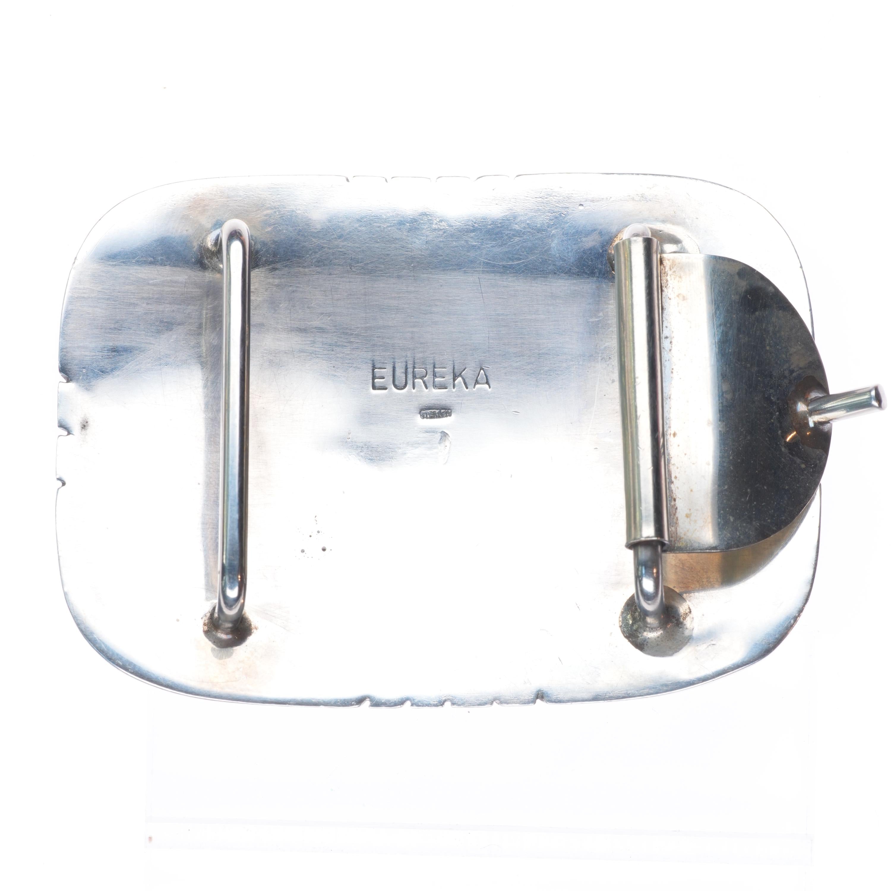 Vintage Southwester/Native American sterling silver turquoise belt buckle Eureka. Tested and guaranteed solid sterling silver weight and measurements in pictures, Circa third quarter of the 20th century. Fits a 1.75" belt. Functional with age appropriate wear, no significant issues. 115 grams.