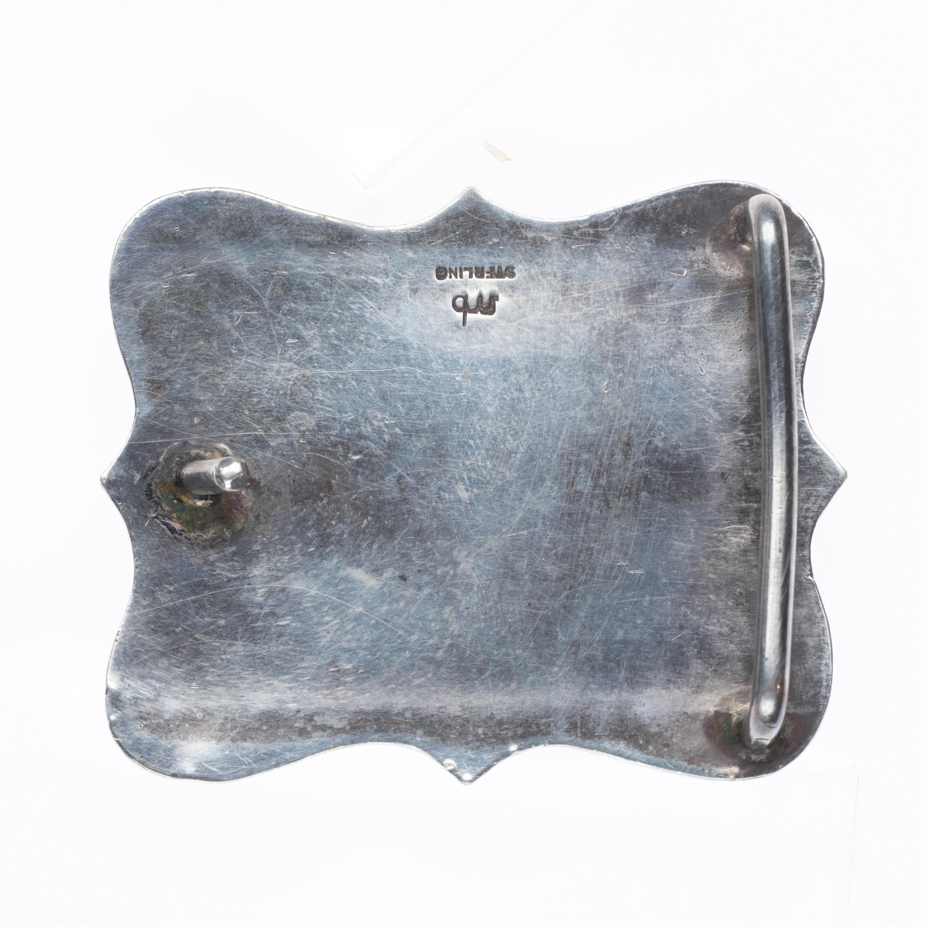 Vintage southwestern sterling silver antler/horn belt buckle. Tested and guaranteed solid sterling silver weight and measurements in pictures, circa third quarter of the 20th century. Fits a 1.5" belt. Unidentified hallmark.
