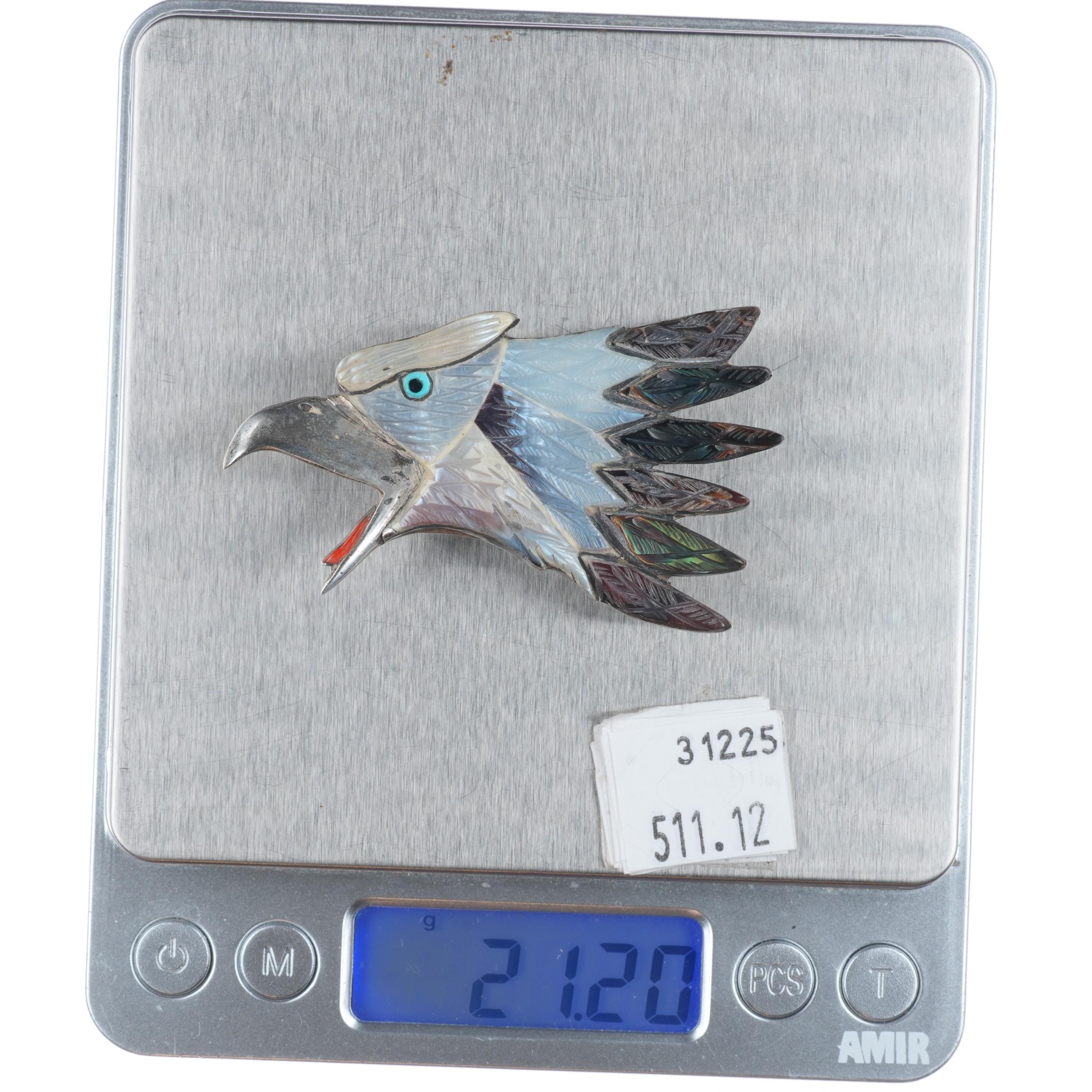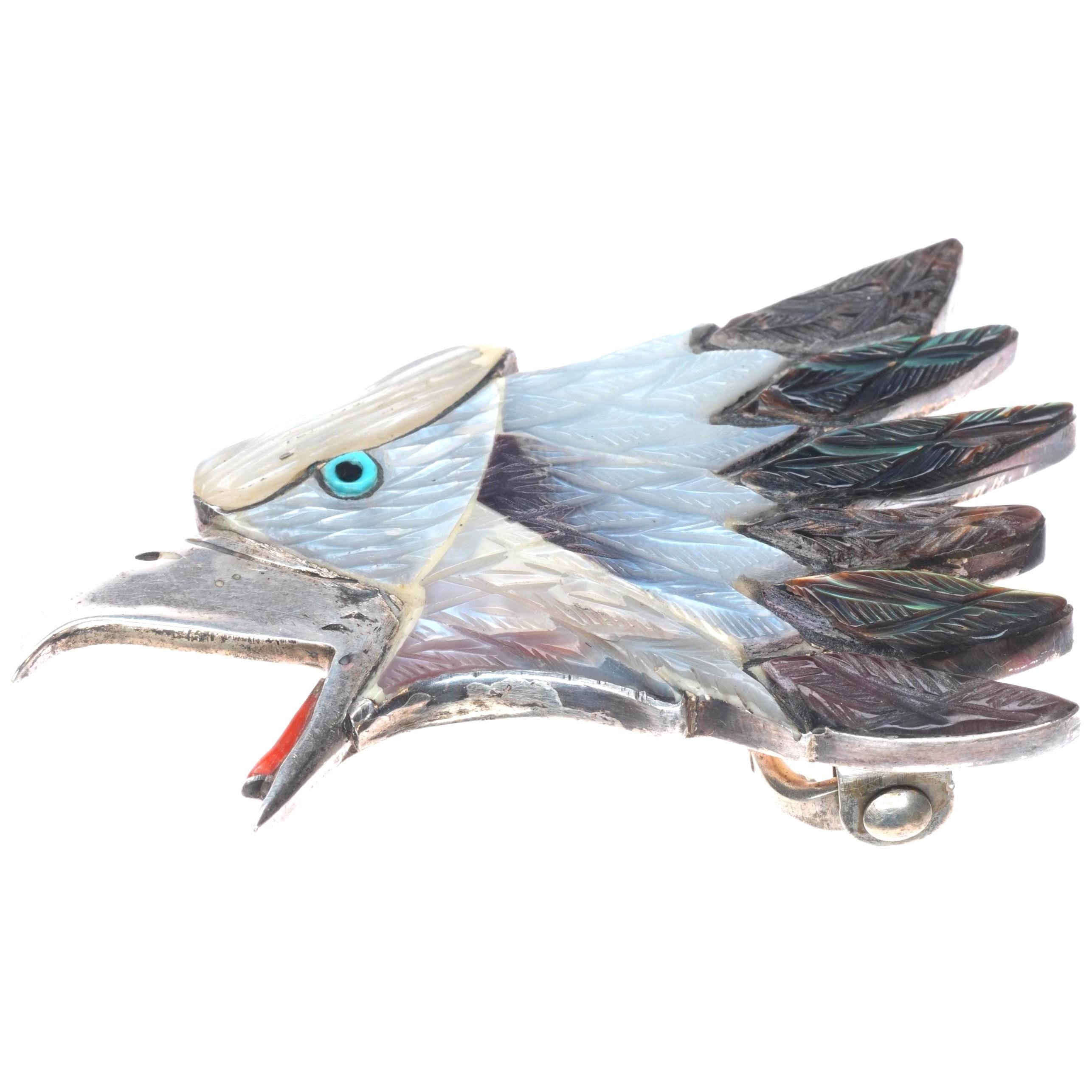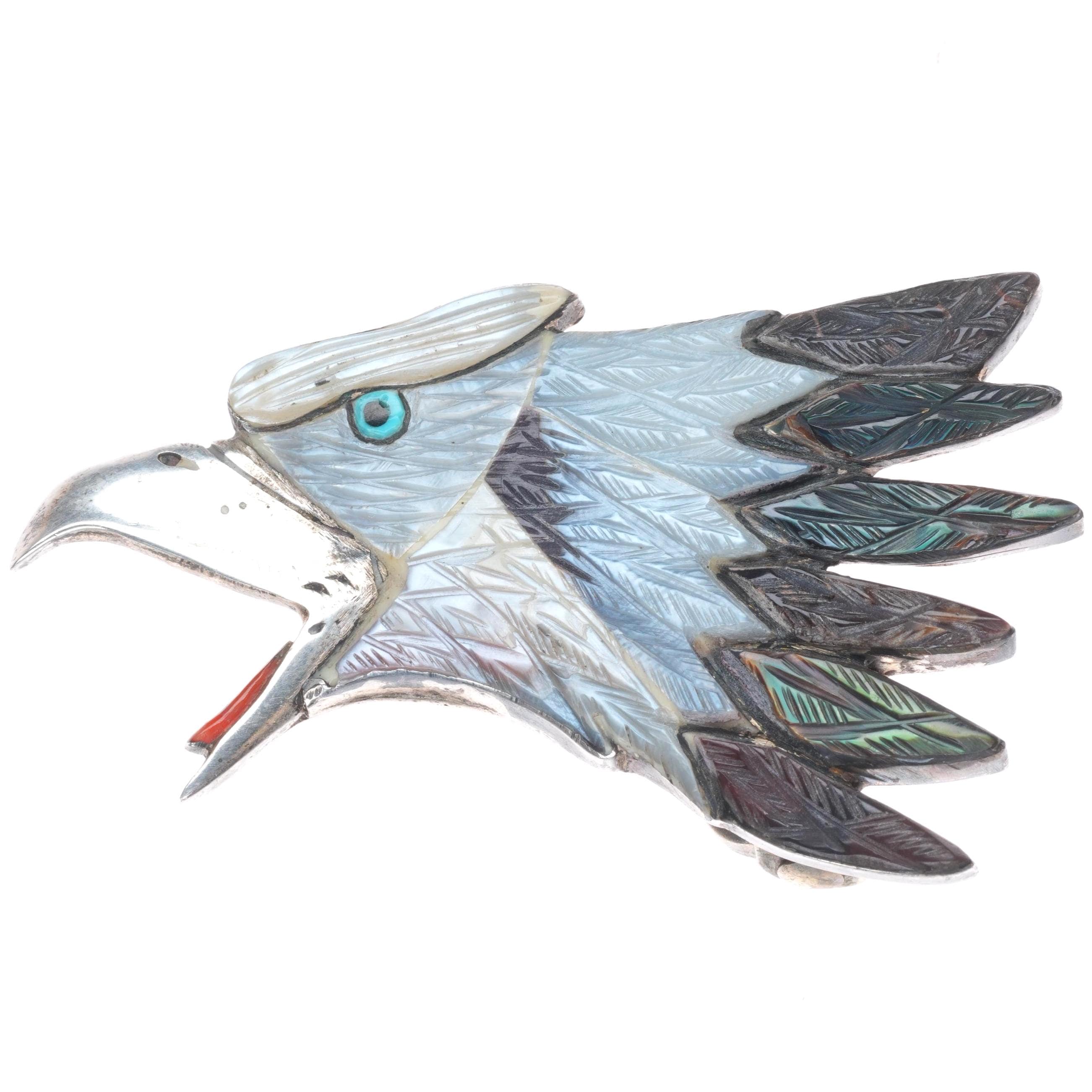 Vintage southwestern sterling silver carved shell eagle head belt buckle