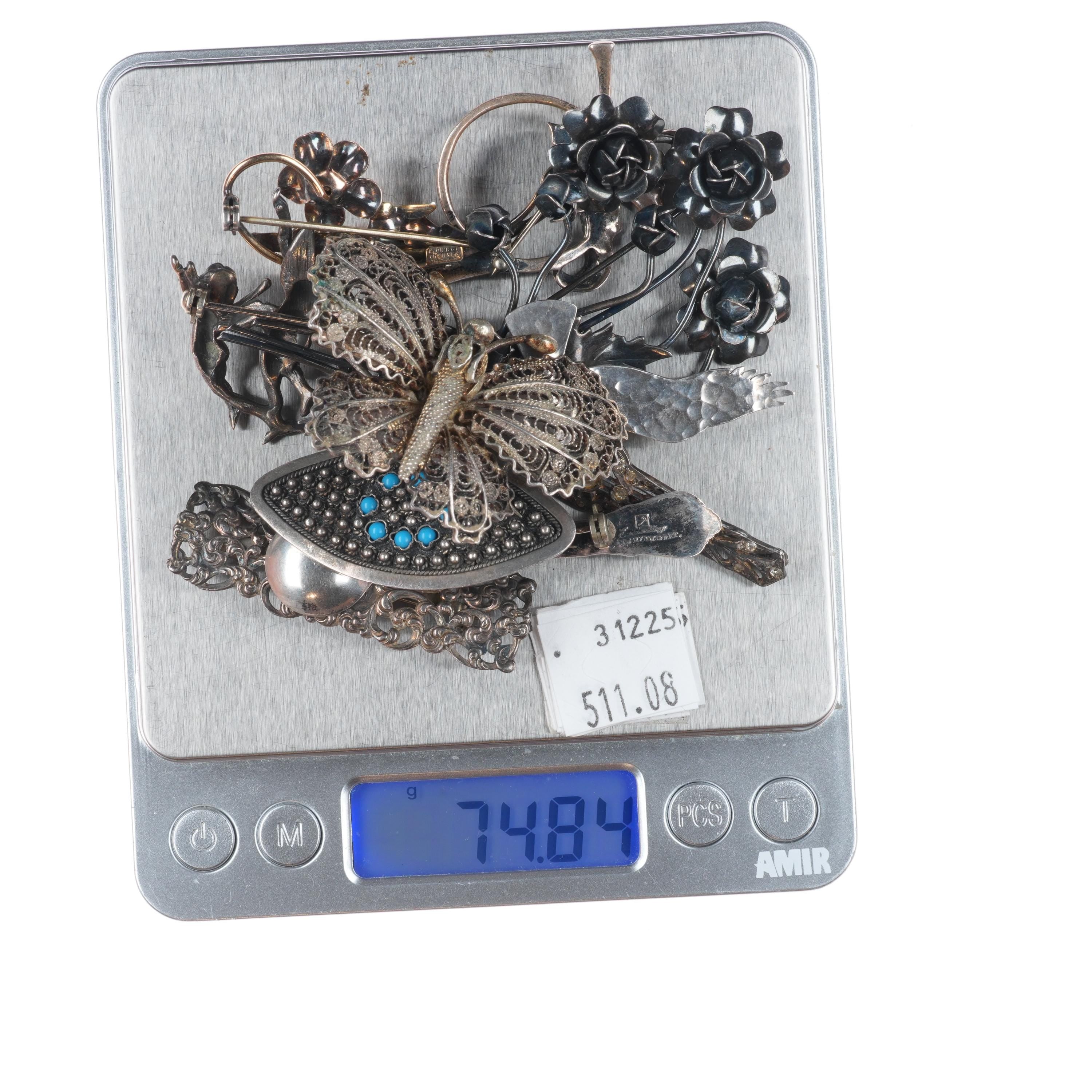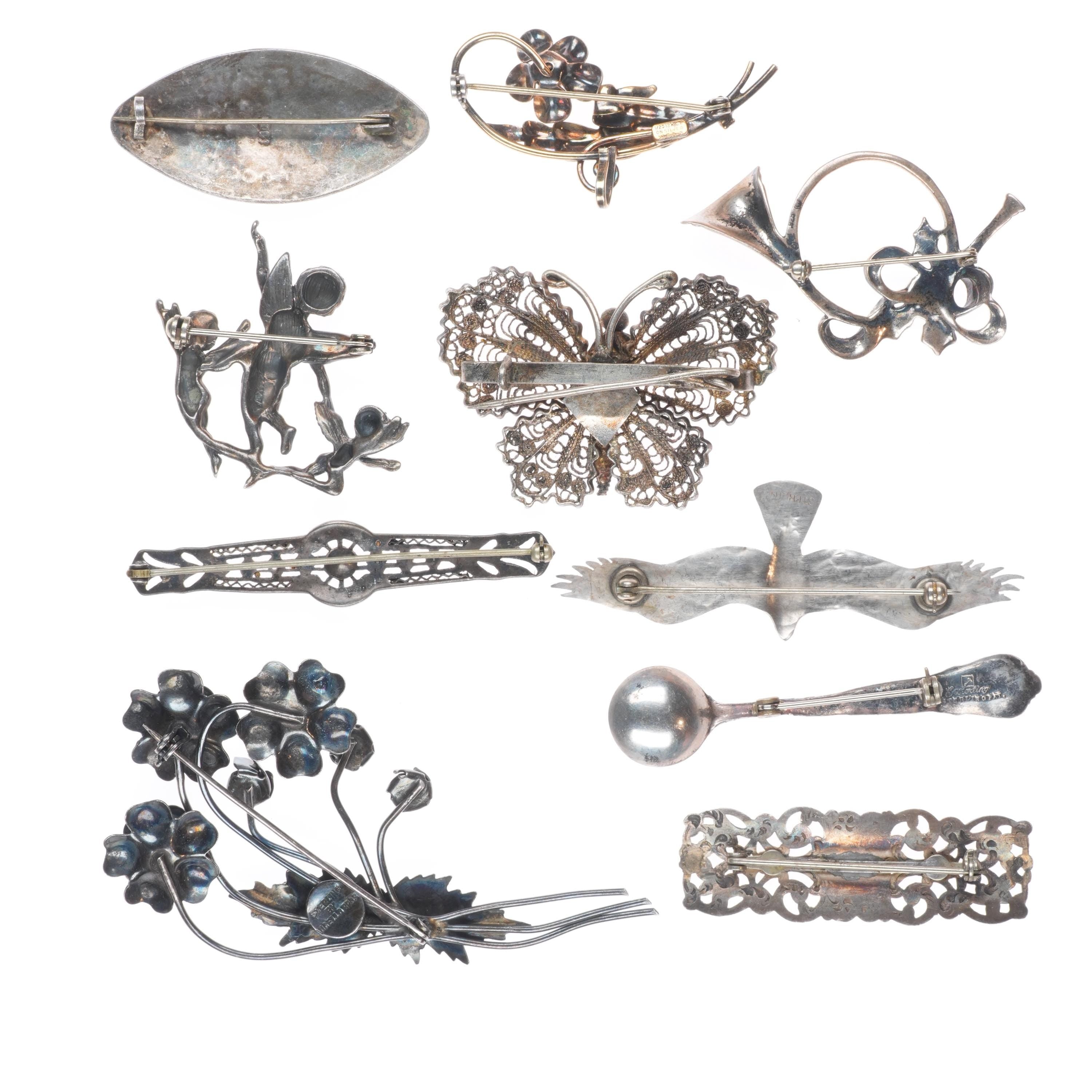 Vintage Sterling silver pin/brooch lot angels butterfly seagull, salt spoon
