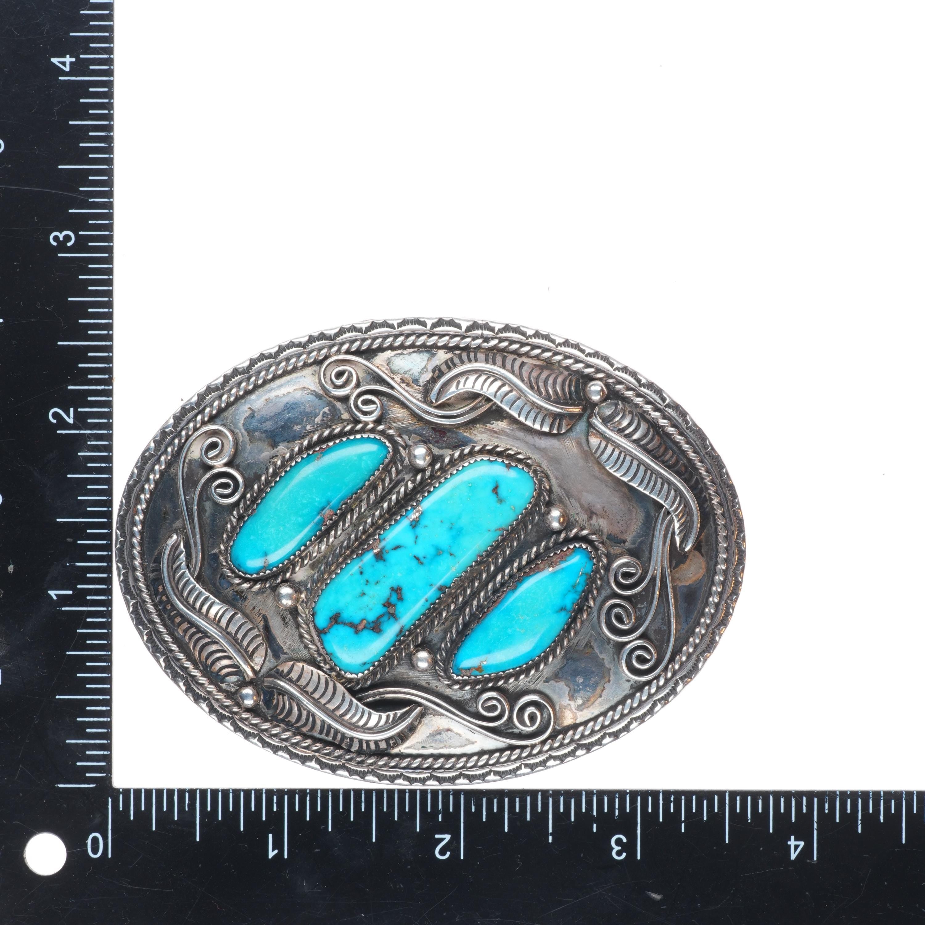 Vintage Ted Guerro Navajo sterling silver high grade turquoise belt buckle