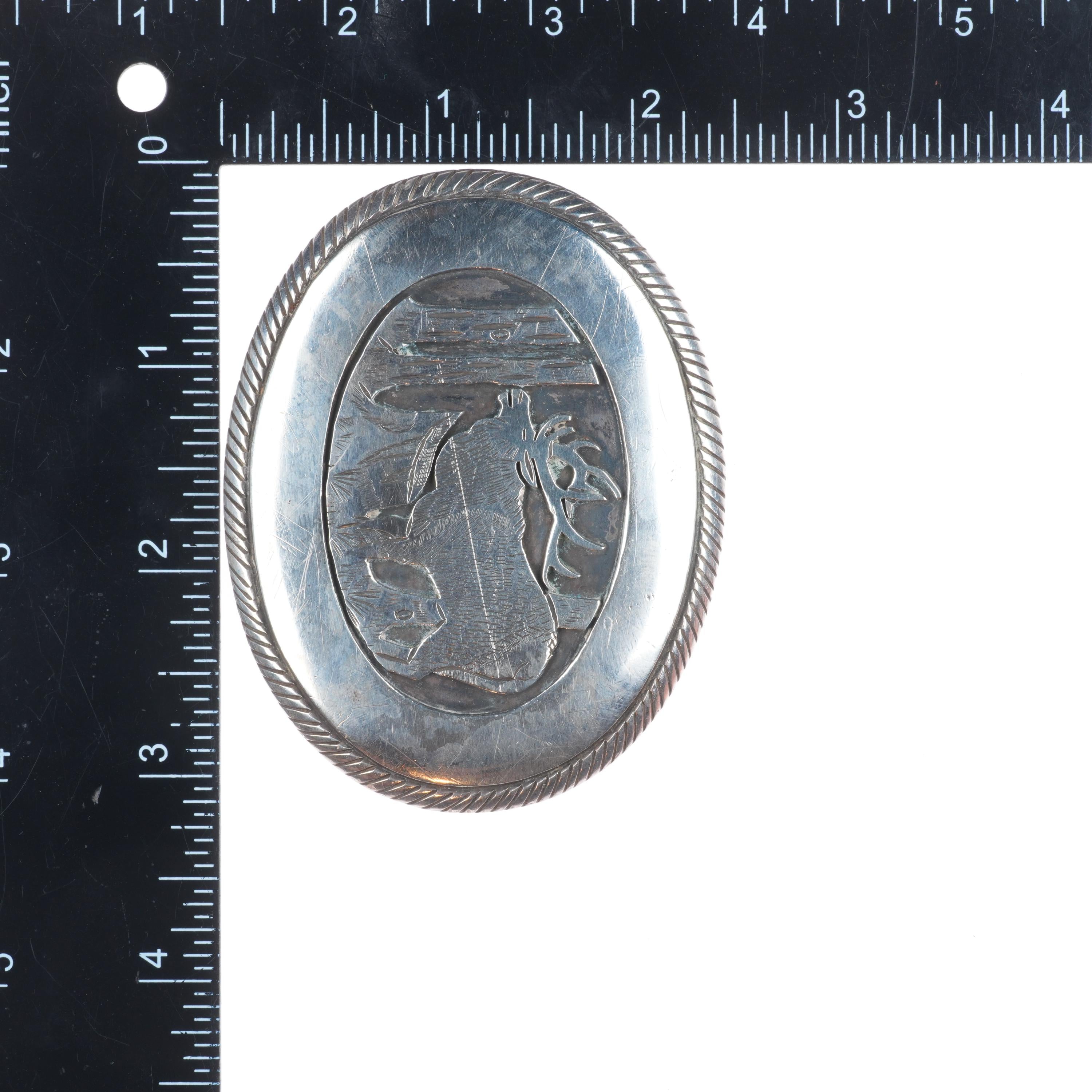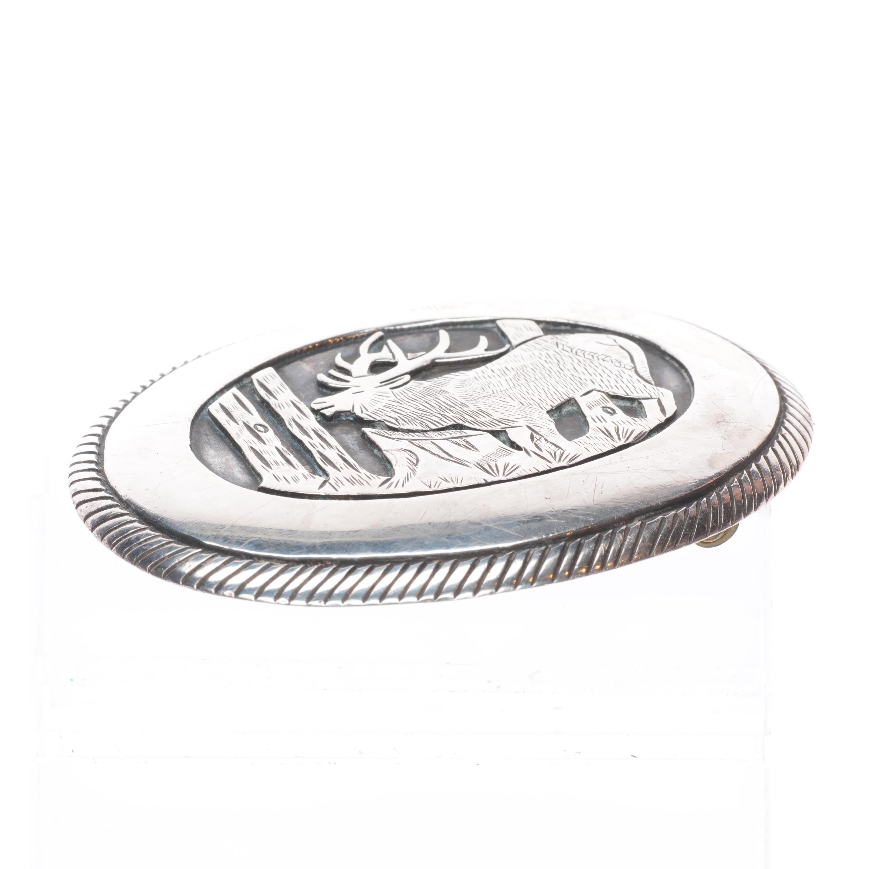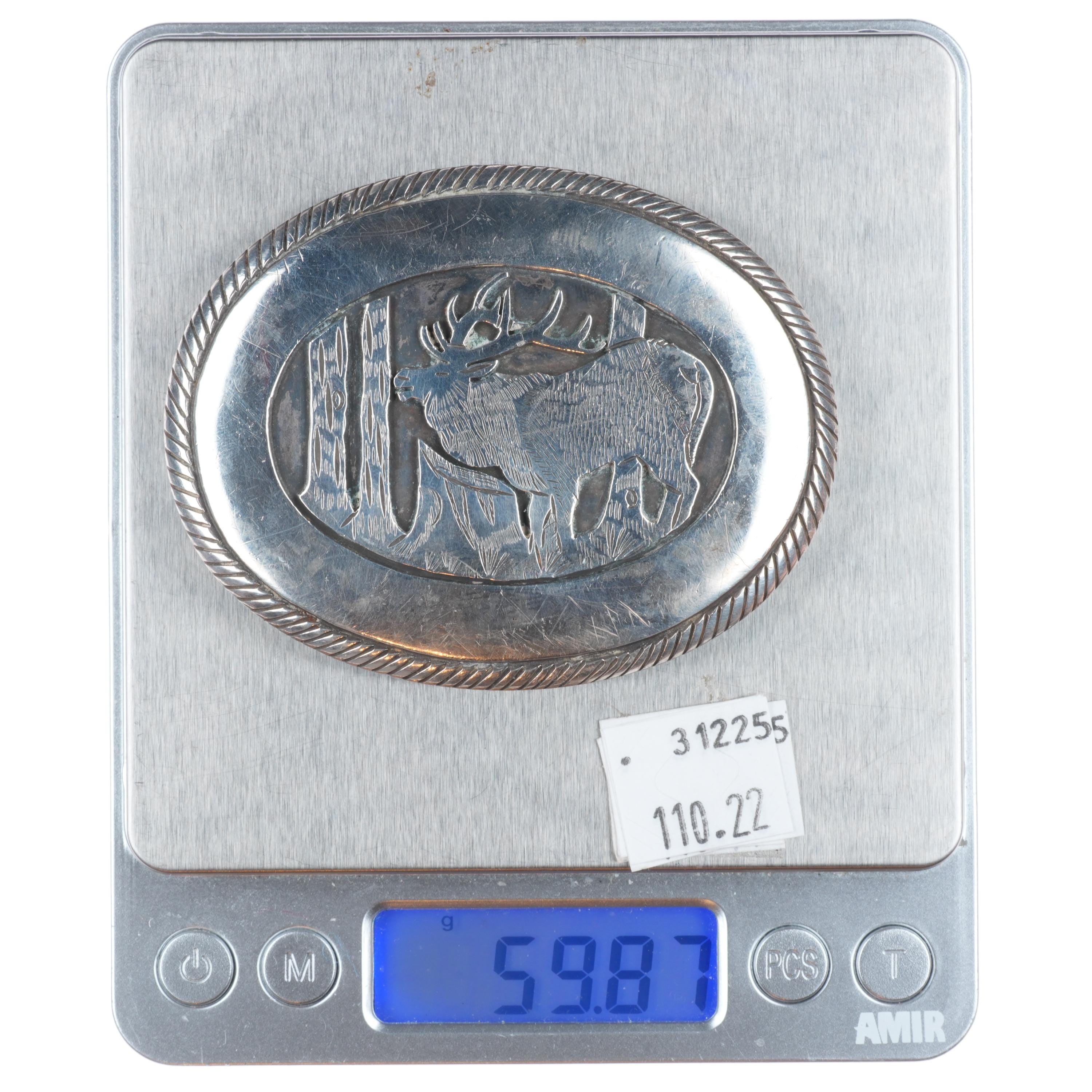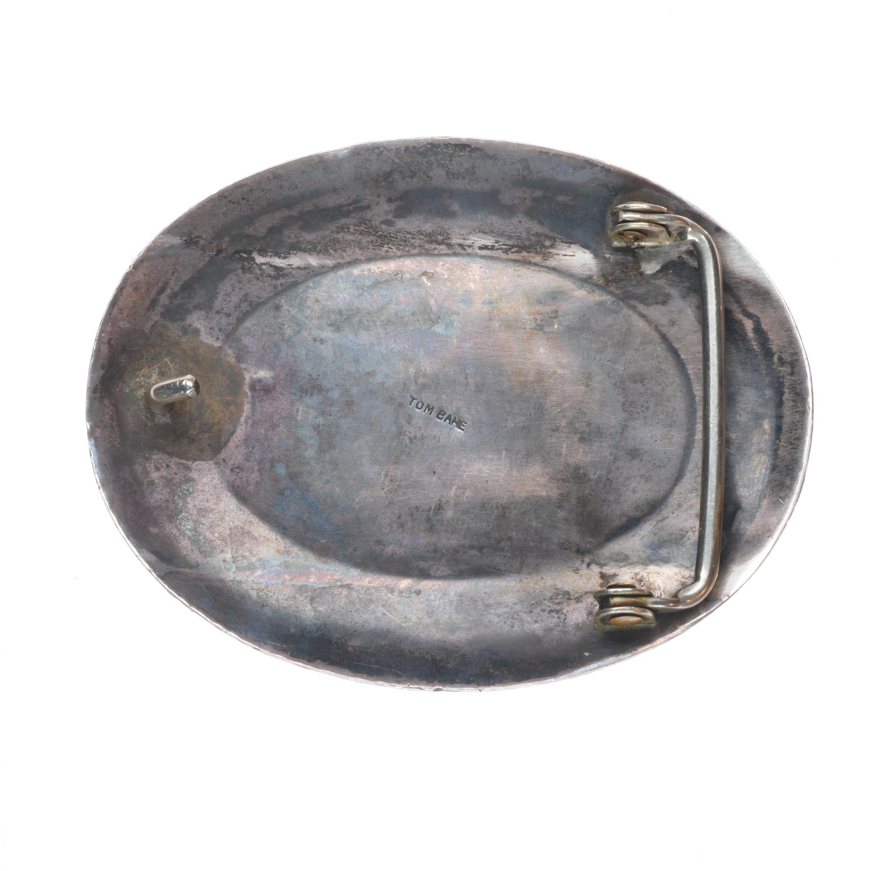 Vintage Tom Bahe Navajo sterling silver elk belt buckle overlay style