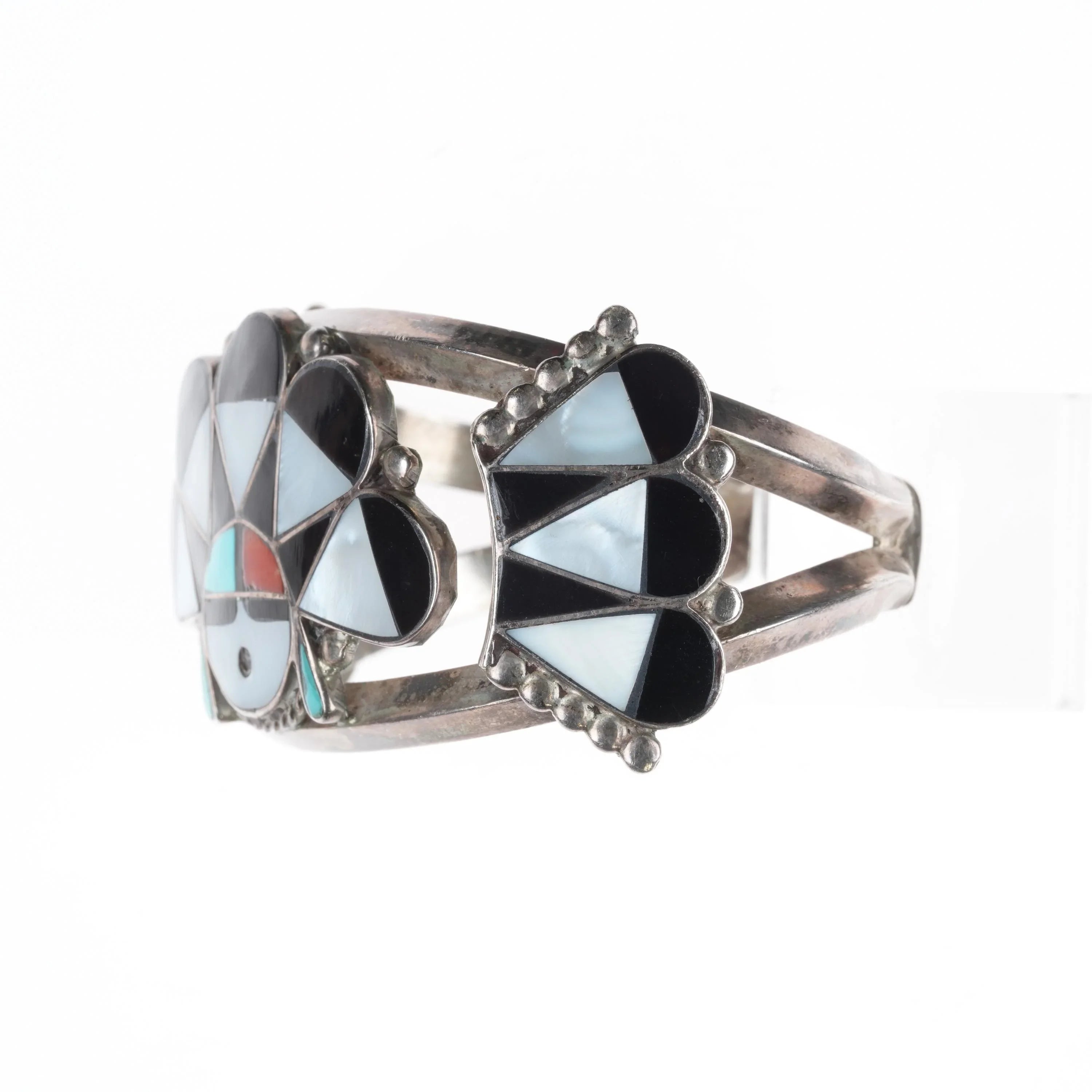 Vintage William Zunie sterling silver sunface squash blossom Cuff bracelet Ring