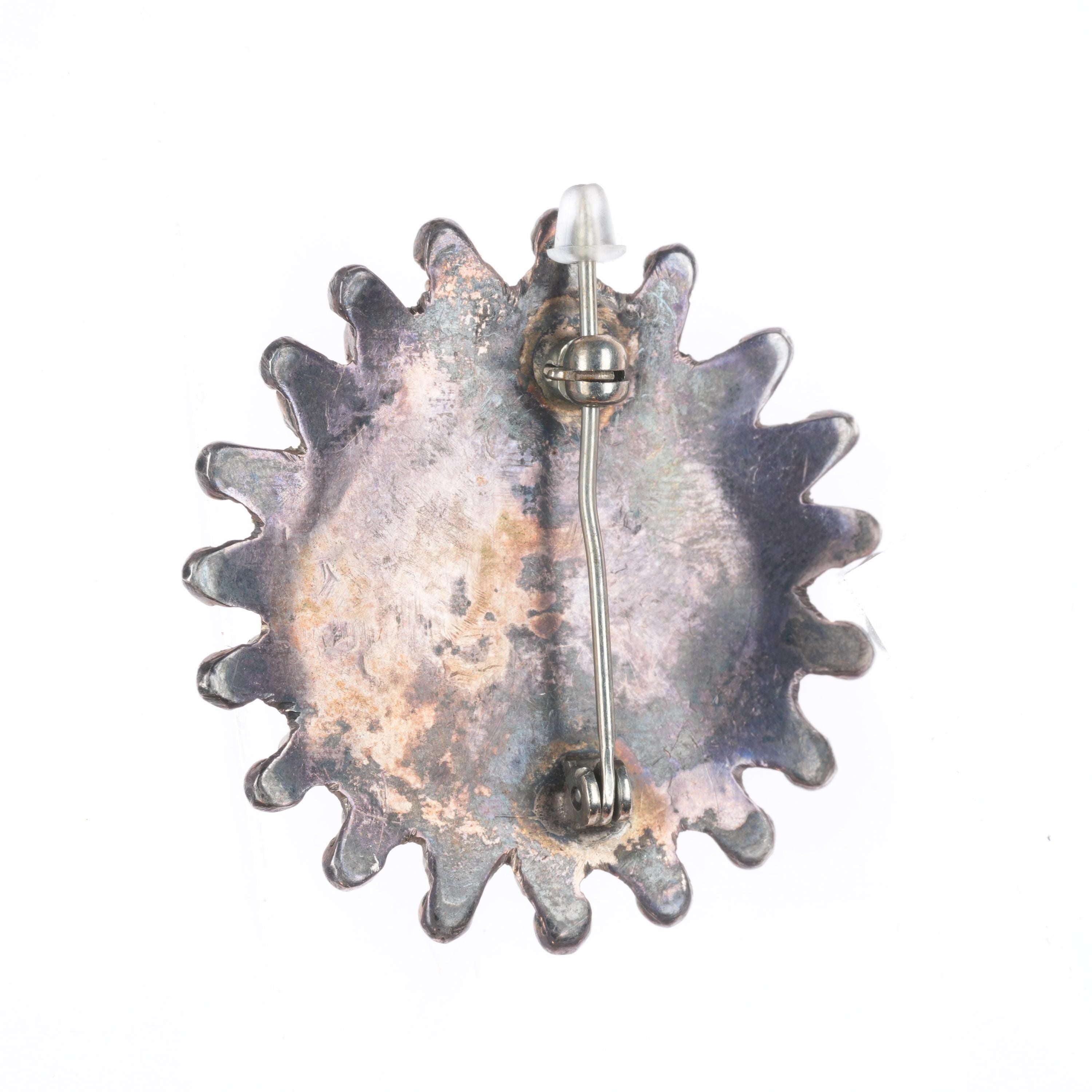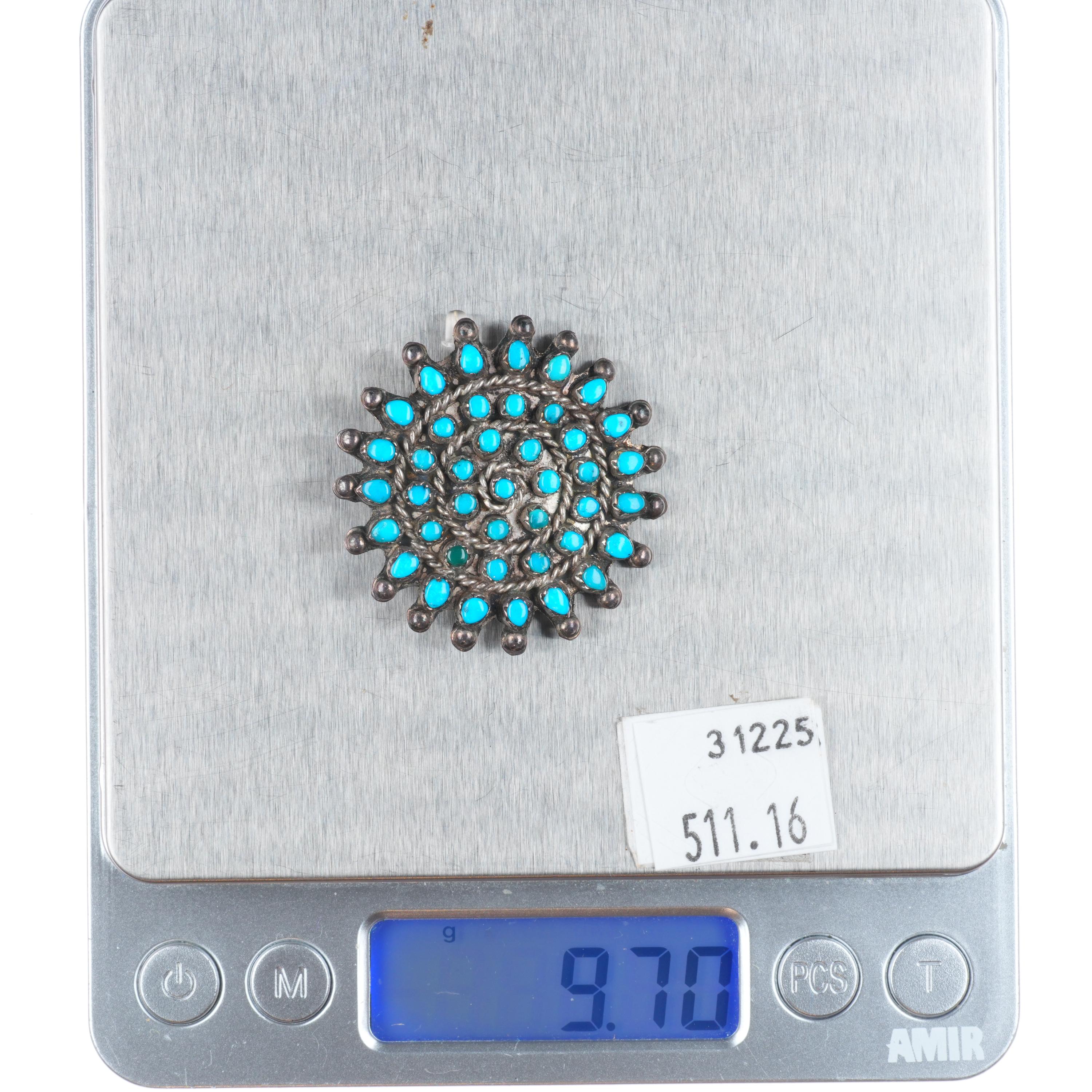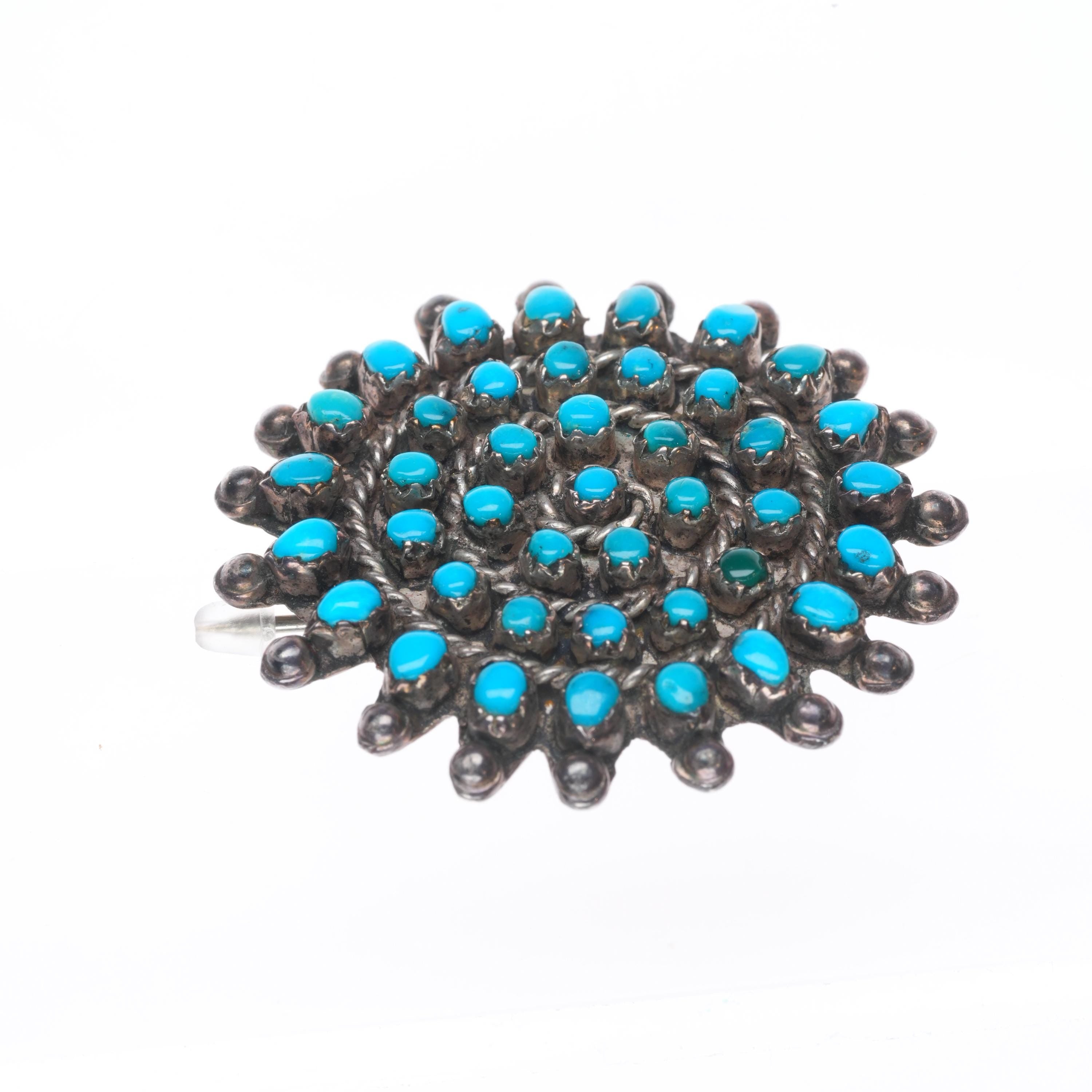 Vintage Zuni sterling silver snake eye turquoise pin/brooch