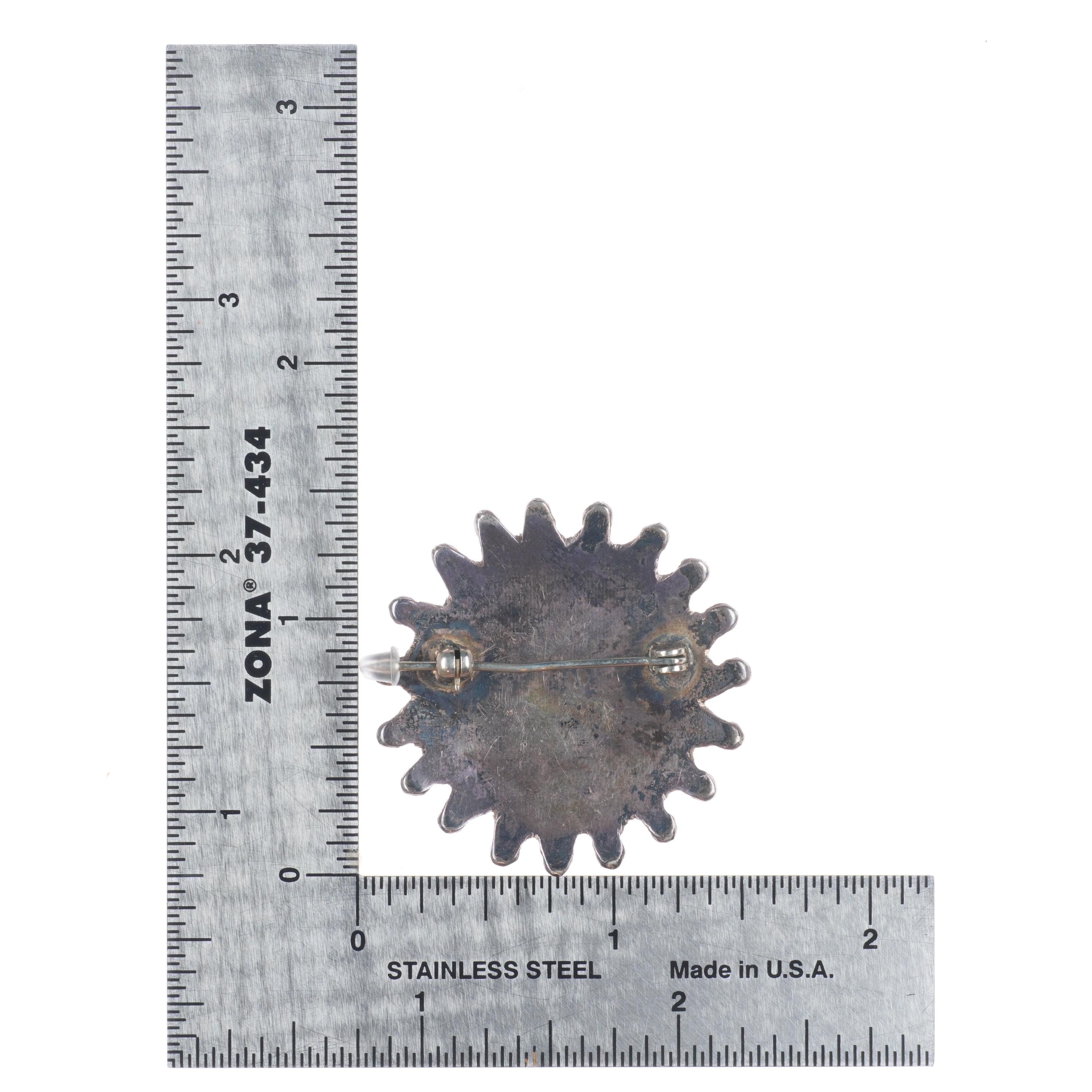 Vintage Zuni sterling silver snake eye turquoise pin/brooch. Selling the pin shown, natural turquoise with weight and measurements in pictures, circa mid 20th century.