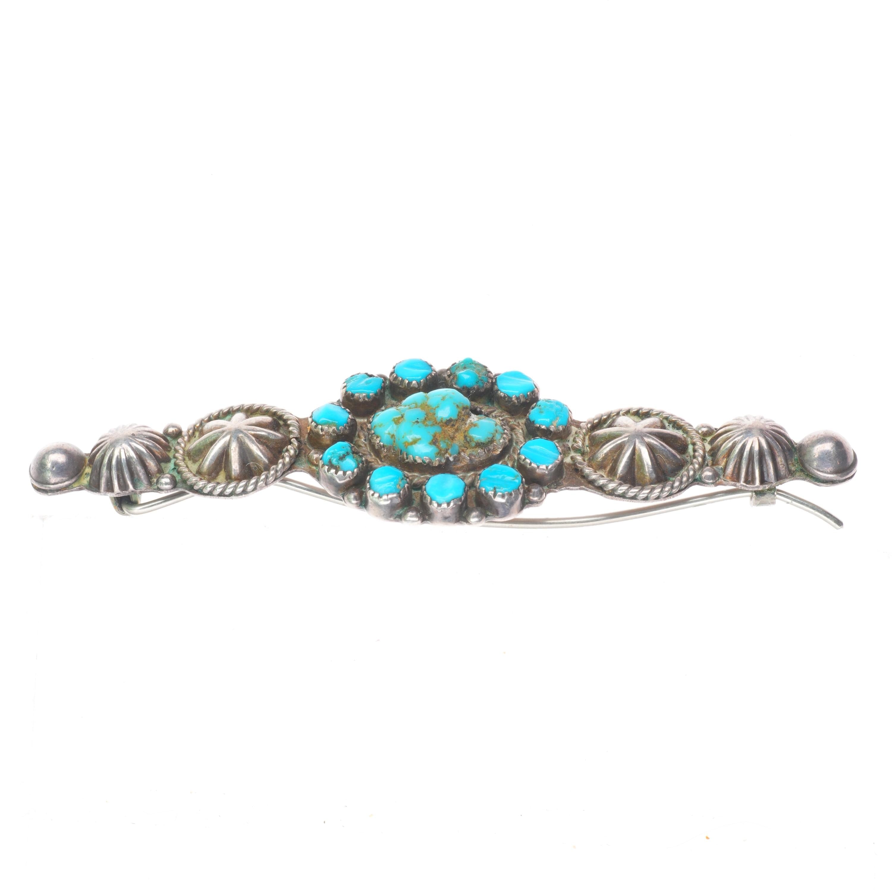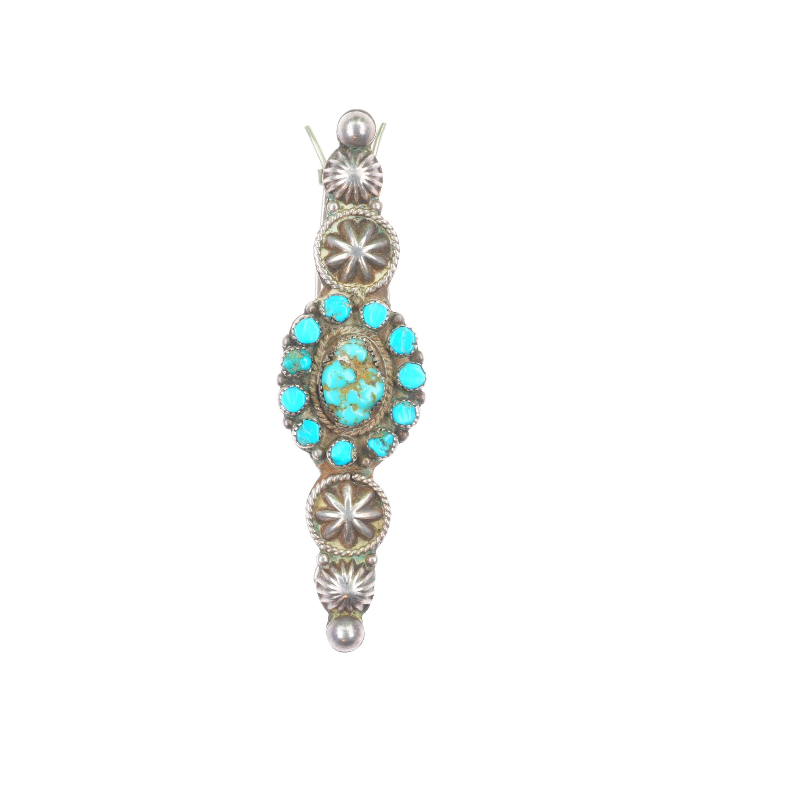Zuni 30's-40's Sterling silver Satellite turquoise hair pin/barrette