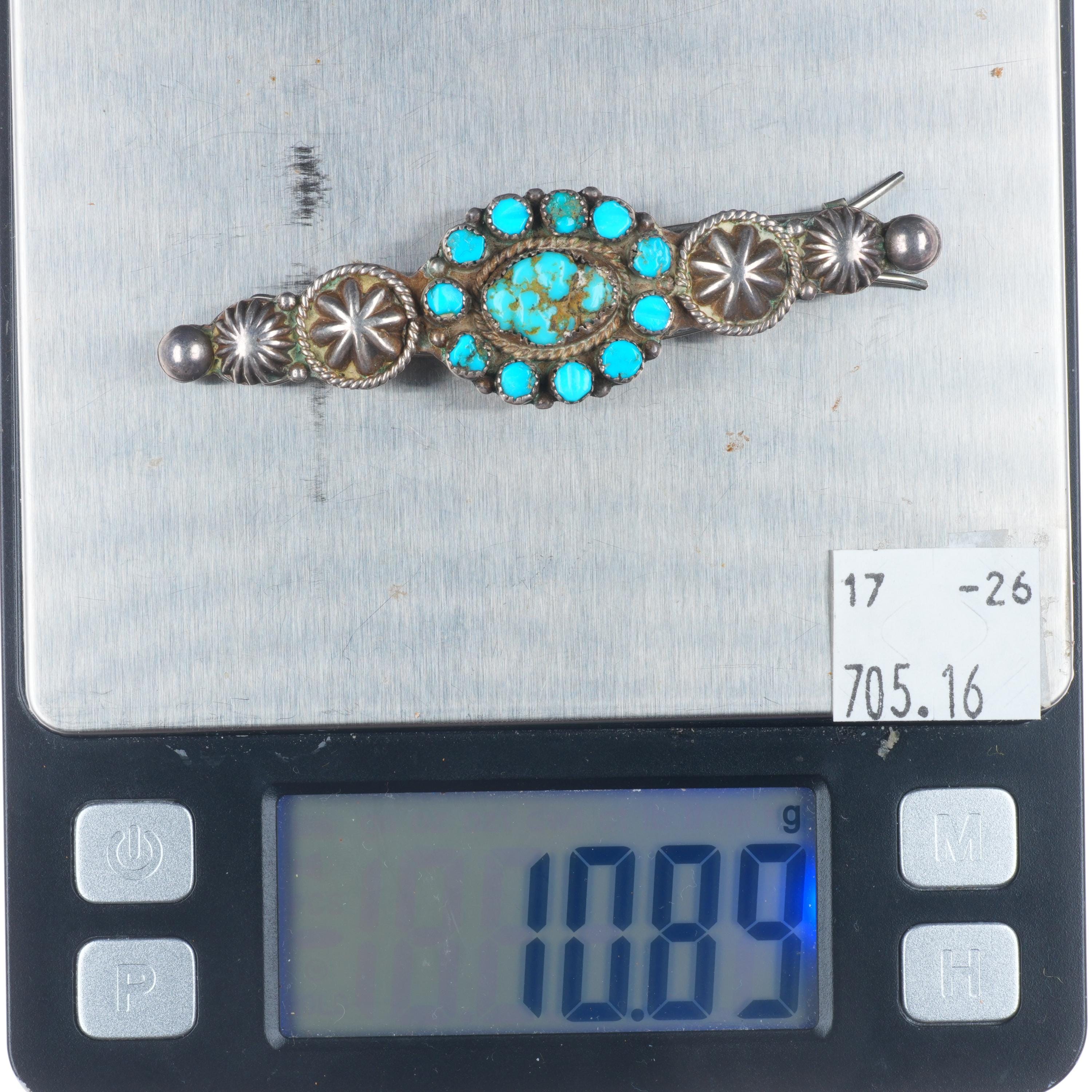 Zuni 30's-40's Sterling silver Satellite turquoise hair pin/barrette. Weight and measurements in pictures. Tested and guaranteed solid sterling silver with... Read more