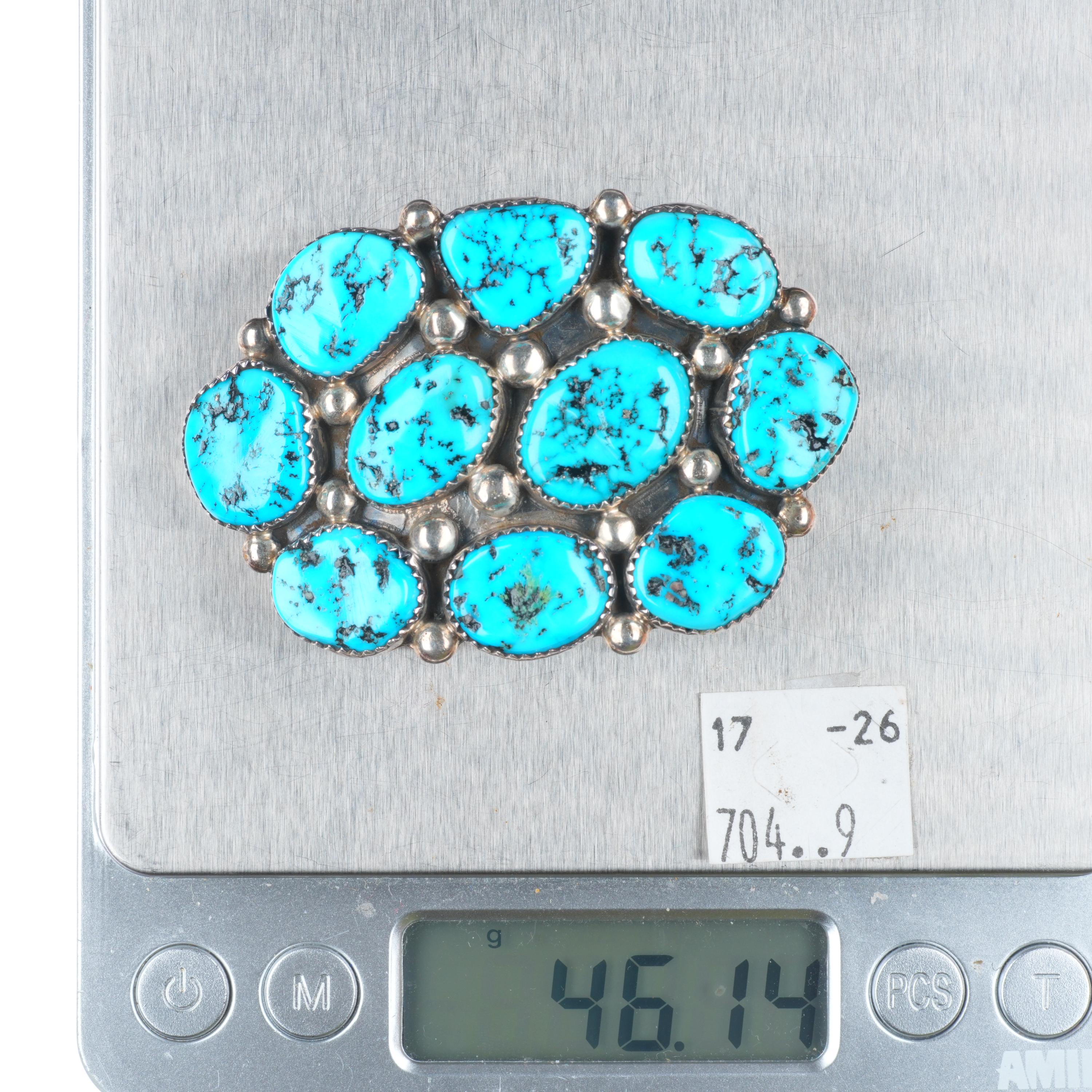 1.25" Jamison Kee Navajo sterling silver turquoise cluster belt buckle
