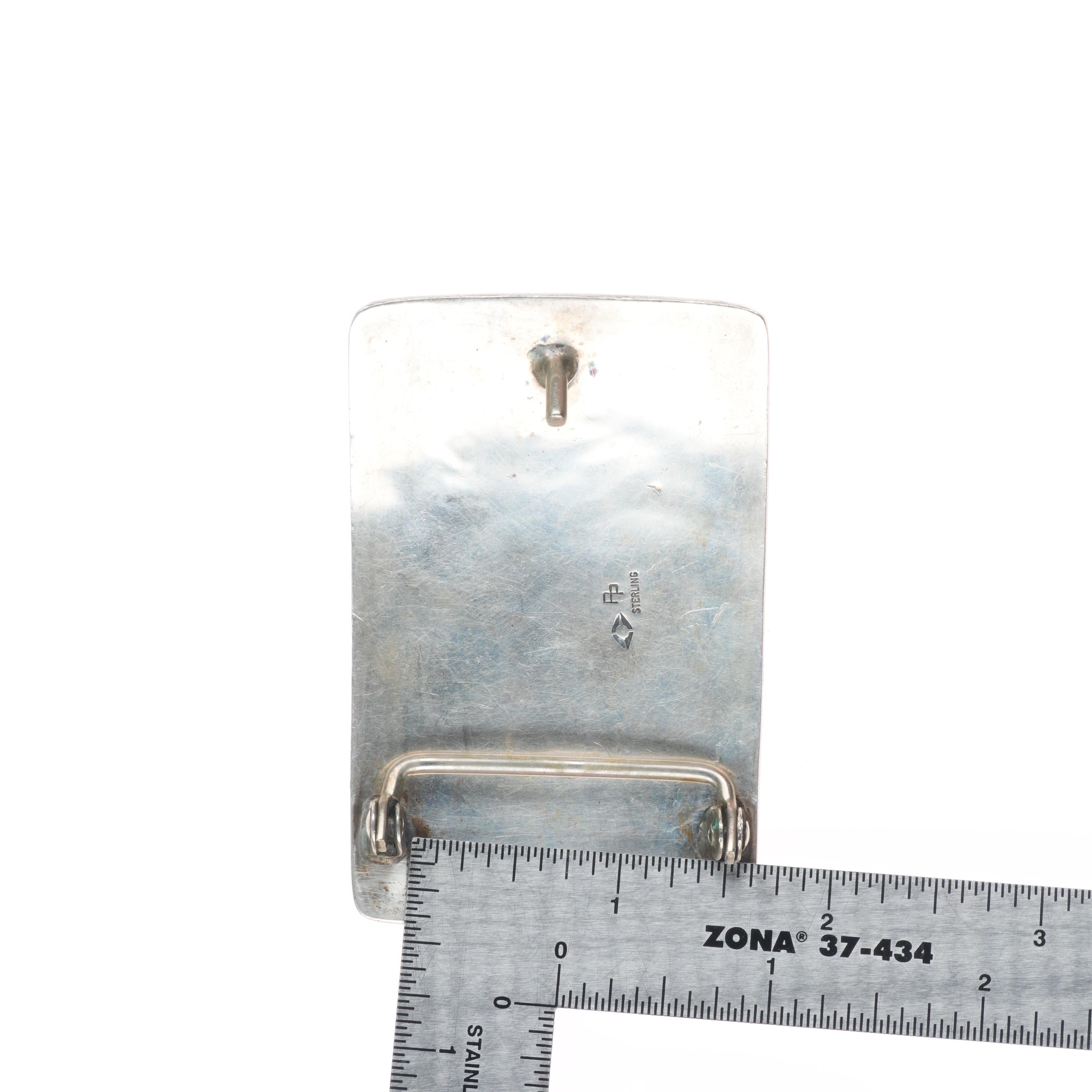 1.5" Philbert Poseyesva Hopi overlay belt buckle carved eagle sterling silver