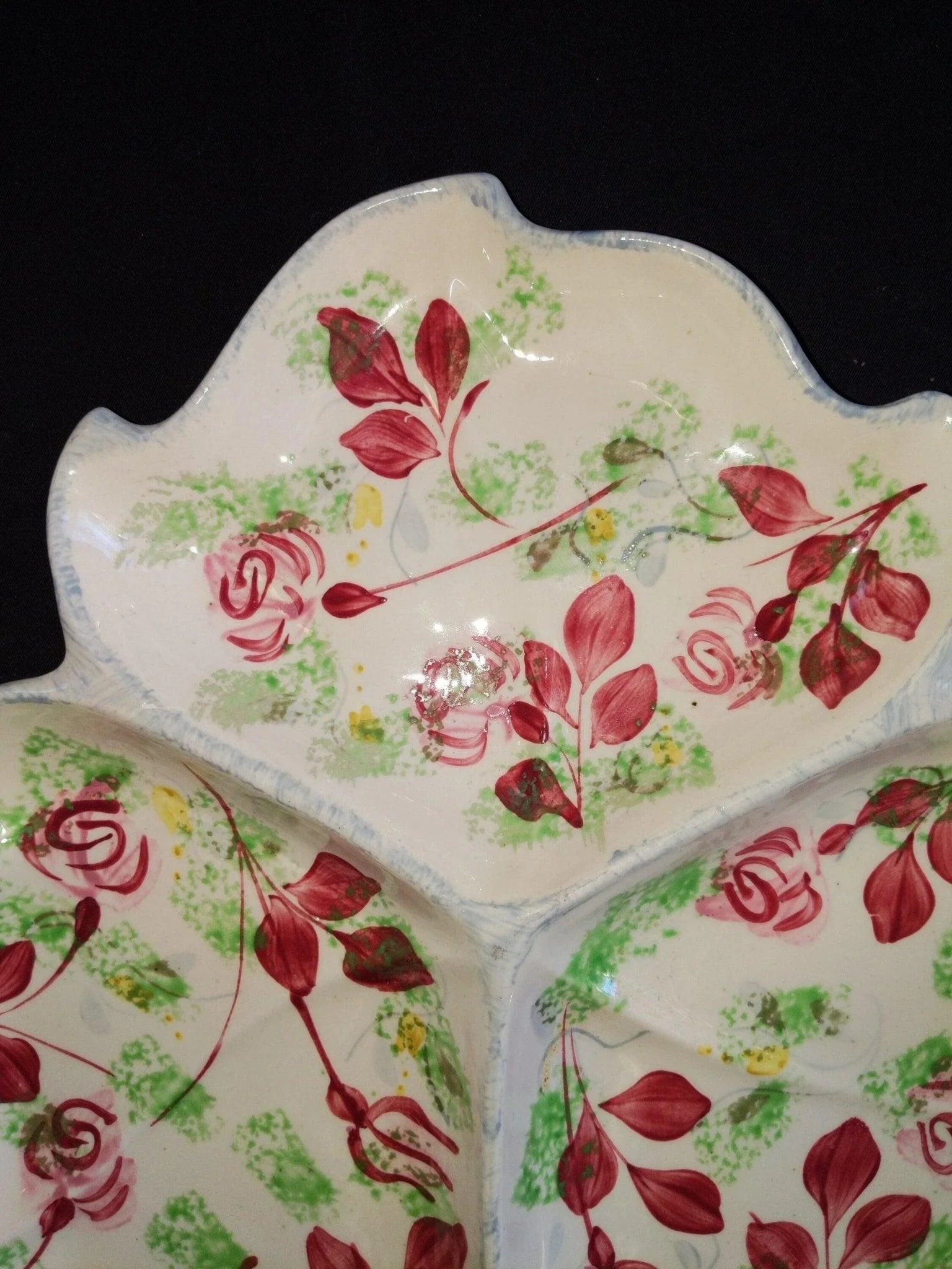 1940's Blue Ridge China Hand Painted Porcelain Southern Potteries 12" Snack Tray Rose Pattern. No cracks, chips, crazing, or restorations. Scarce piece in scarce pattern.
