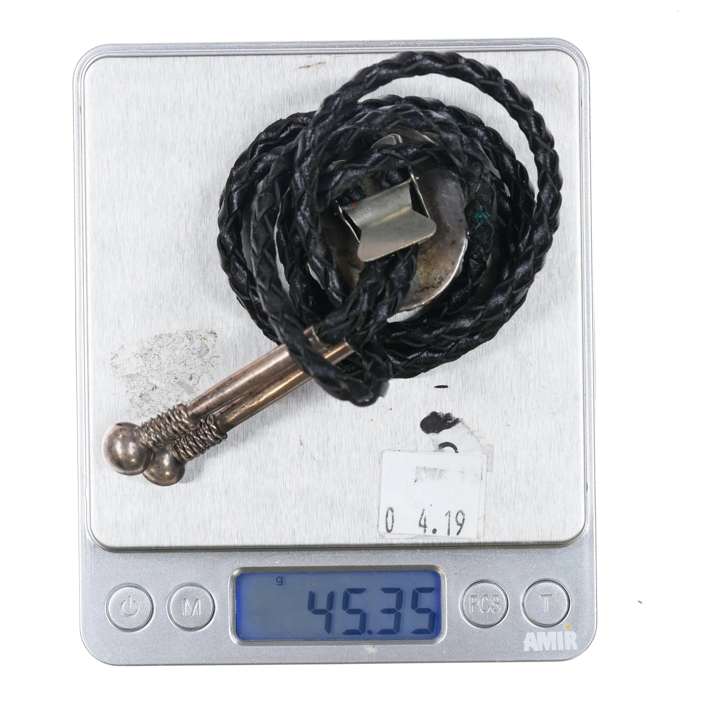 1992 Sterling silver Jasper southwestern bolo tie w/fancy tips. Solid sterling silver slide and tips. Weight and measurements in pics. 38.5" long. Expected wear with no apparent damage, and illegible markings. Weight shown is just the entire bolo, if there is a tray pictured it will be tared out of course.