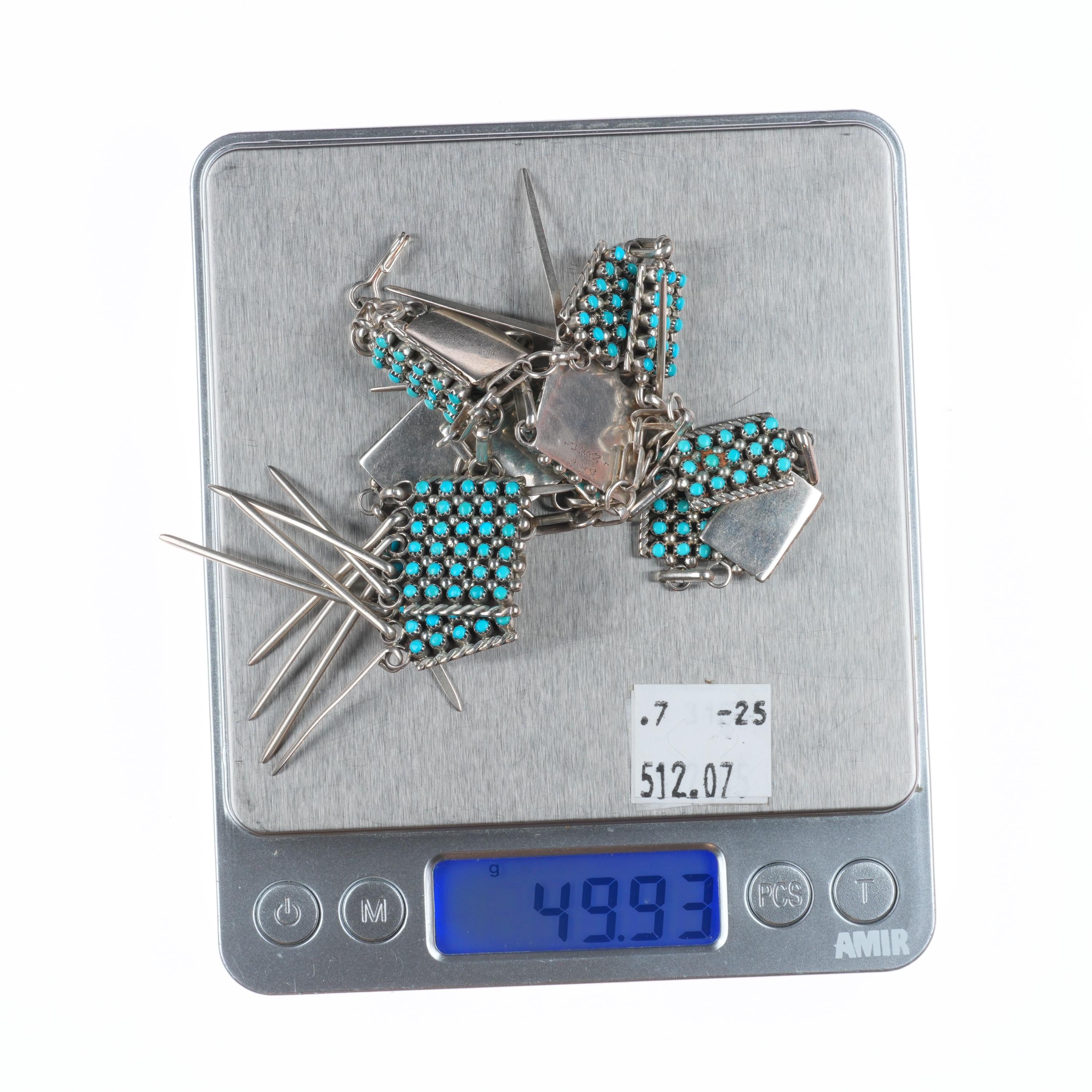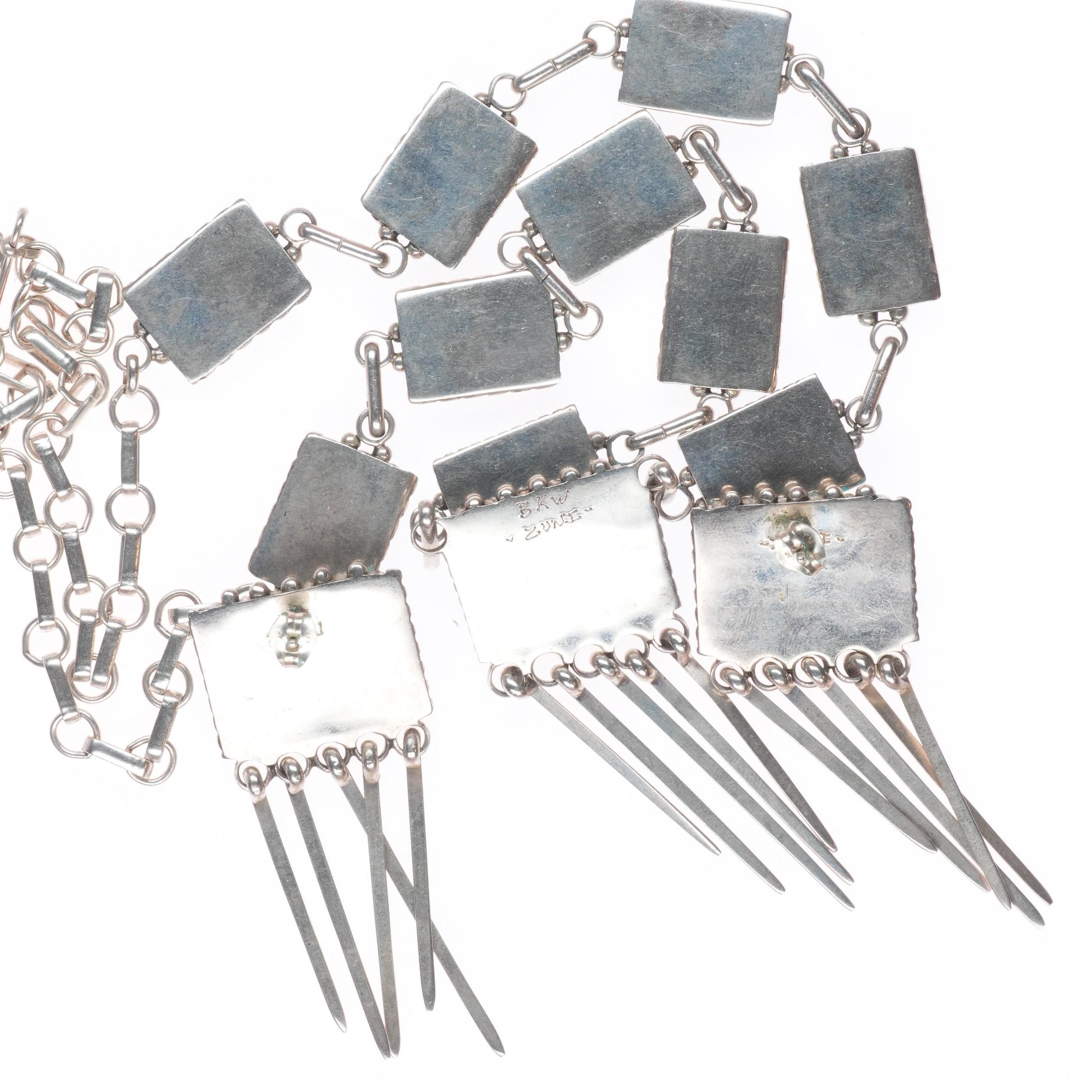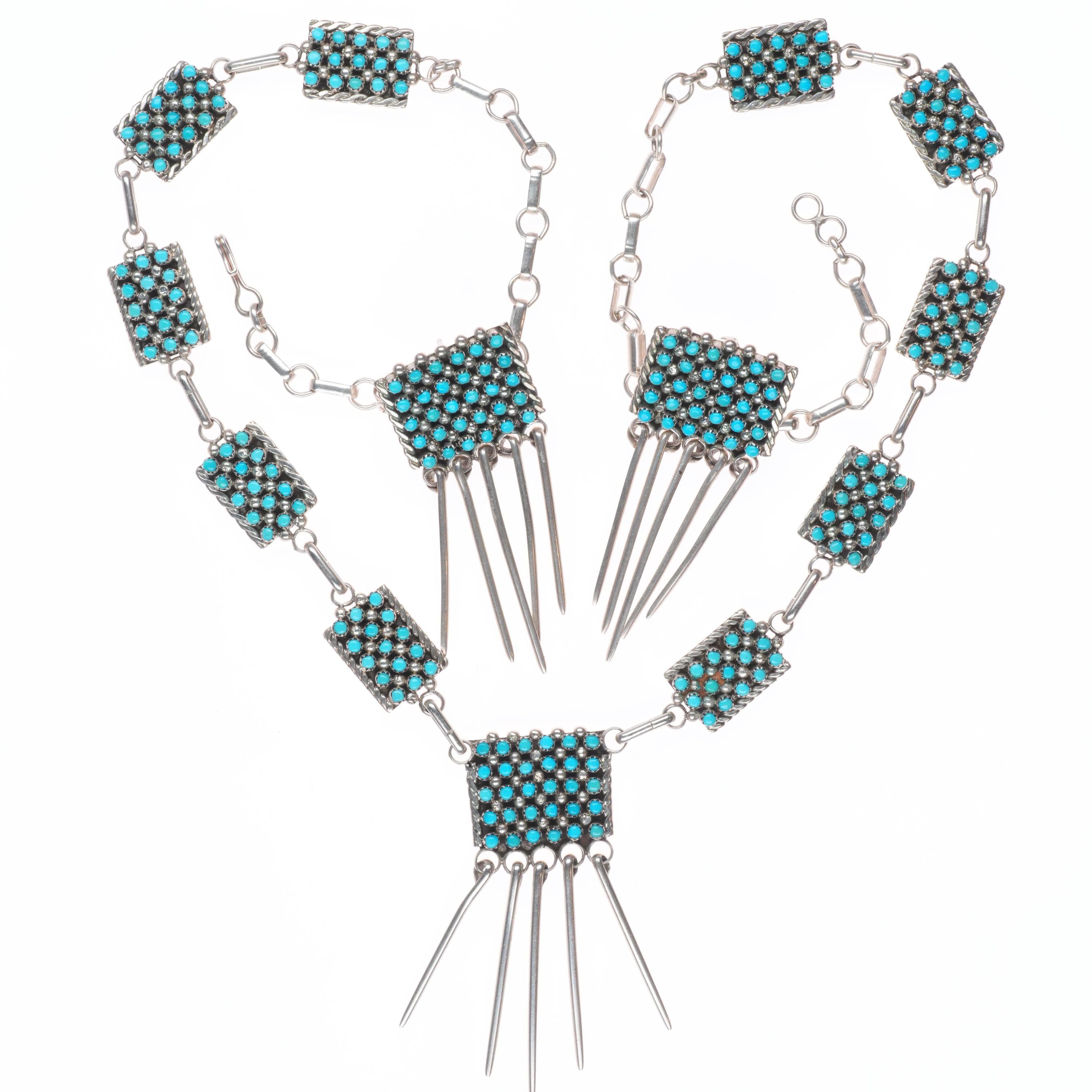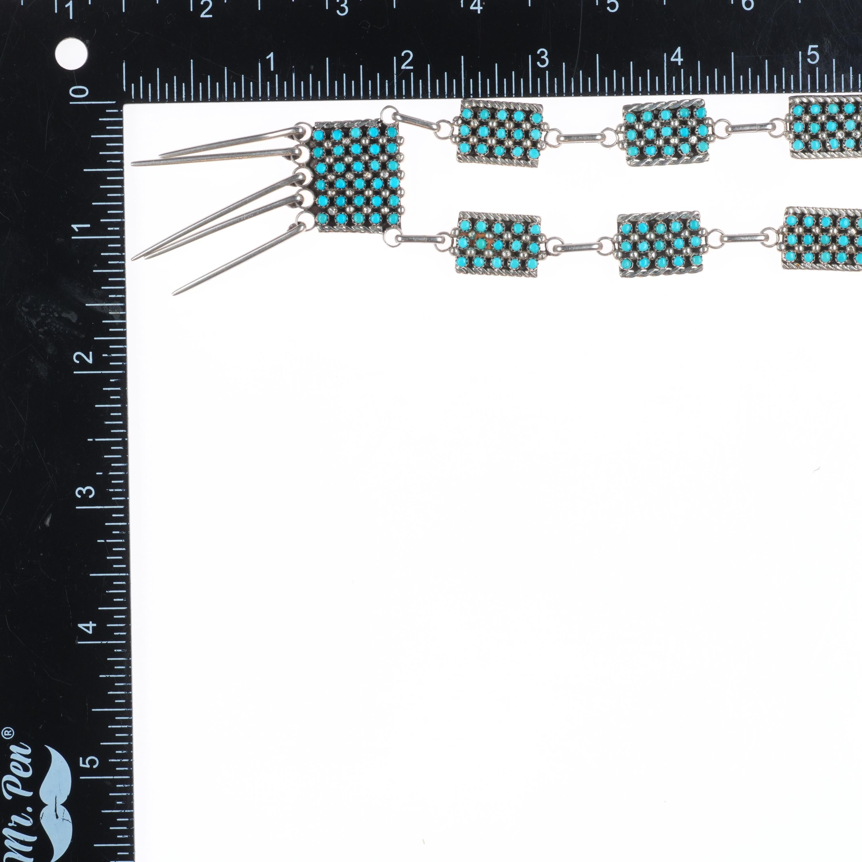 24" Vintage Zuni fine Snake Eye turquoise necklace and earrings set BKW. Solid sterling silver tested and guaranteed with artists hallmark on the pendant in the back, weight and measurements in the pictures. No issues, circa third quarter of the 20th century. 24" long necklace with other measurements in pictures. No issues.