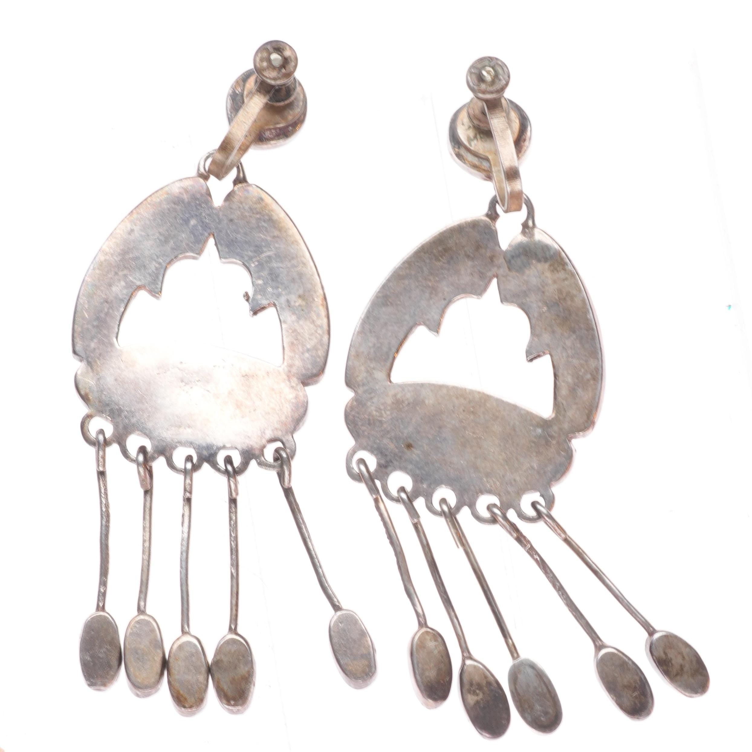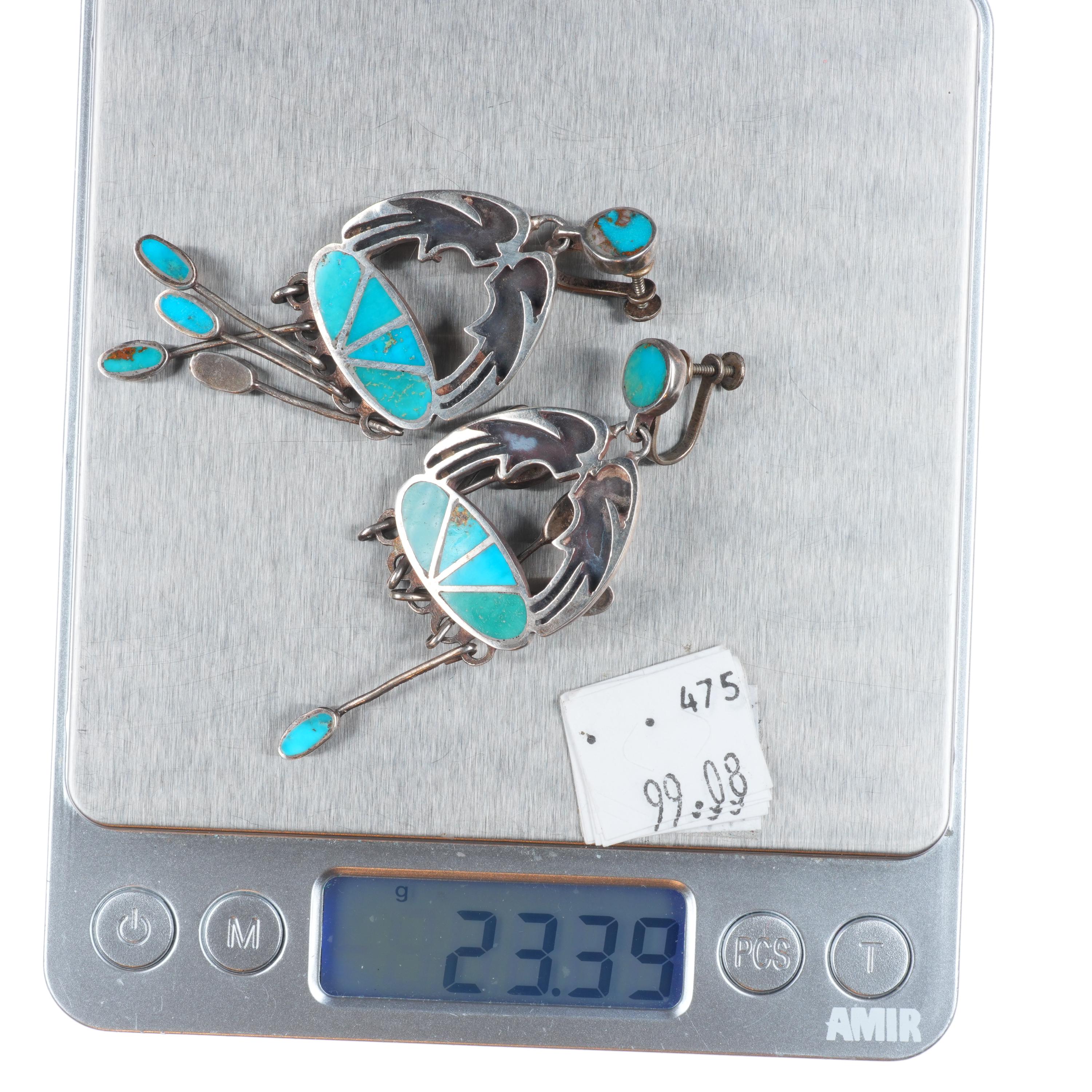 40's-50's Lambert Homer Sr. Zuni sterling silver turquoise channel inlay earrings. Great earrings with no issues, tested and guaranteed solid sterling silver, any marks detected, weight, and measurements will be shown in the pictures. Unmarked, circa second quarter of the 20th century. screw back earrings.   Unmarked, attributed to Lambert Homer Sr.