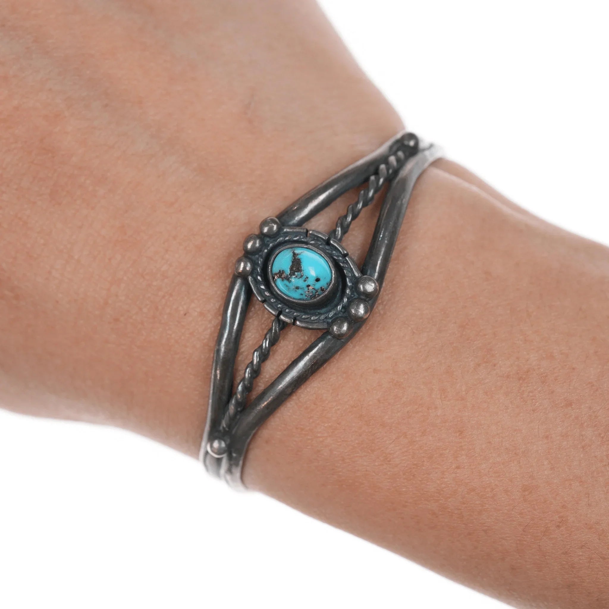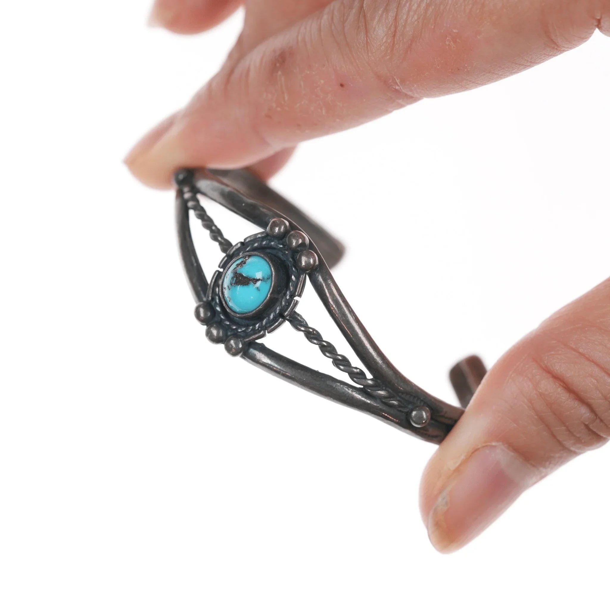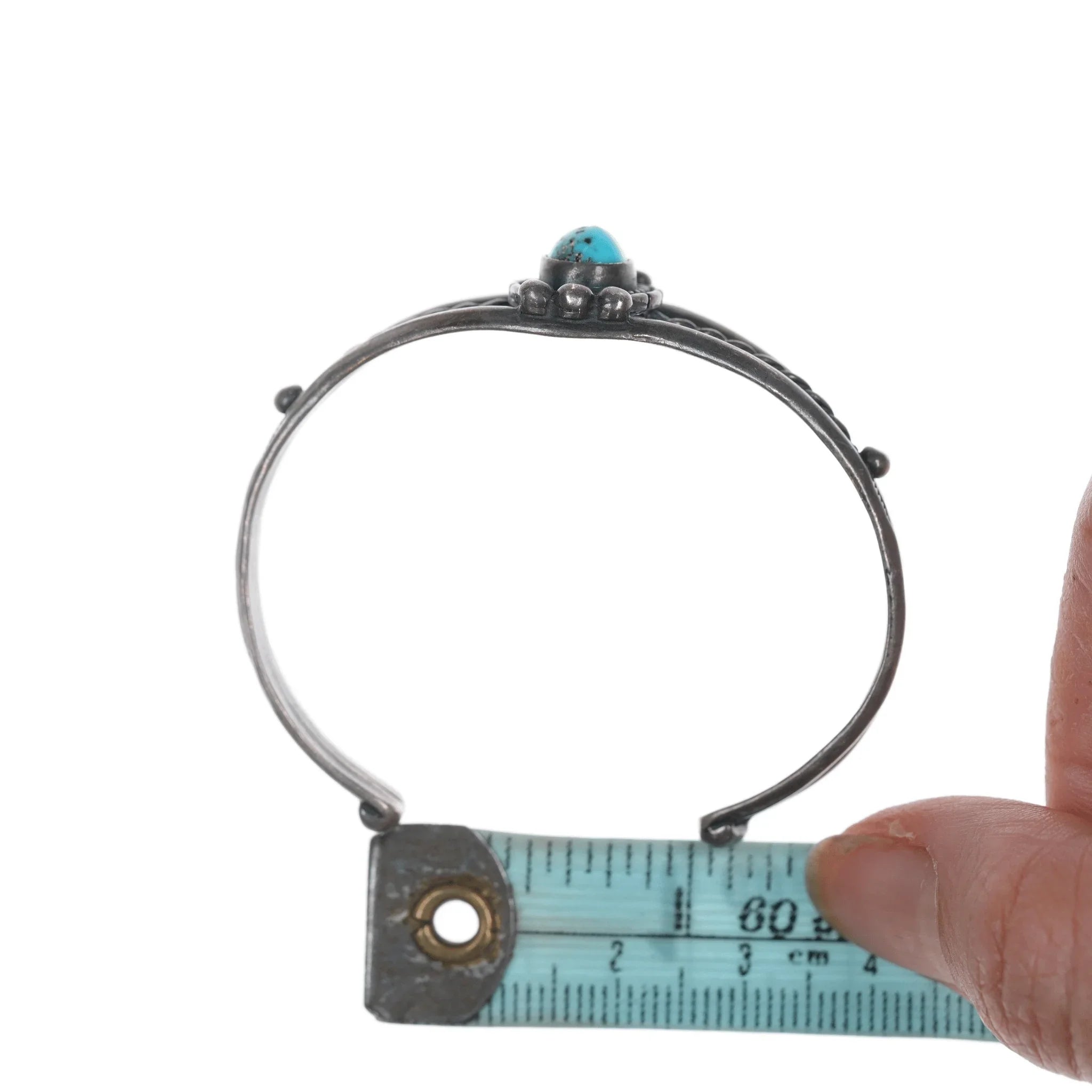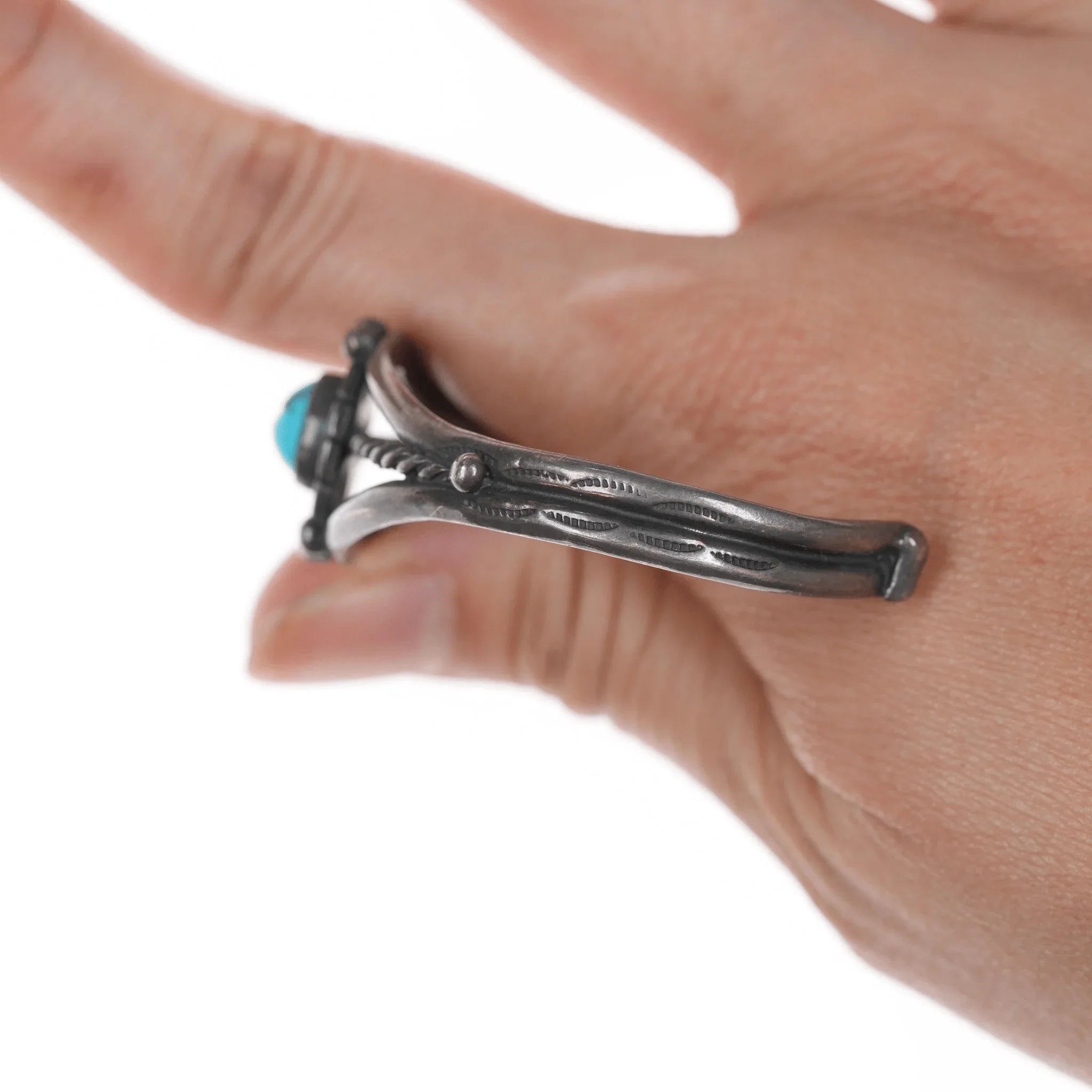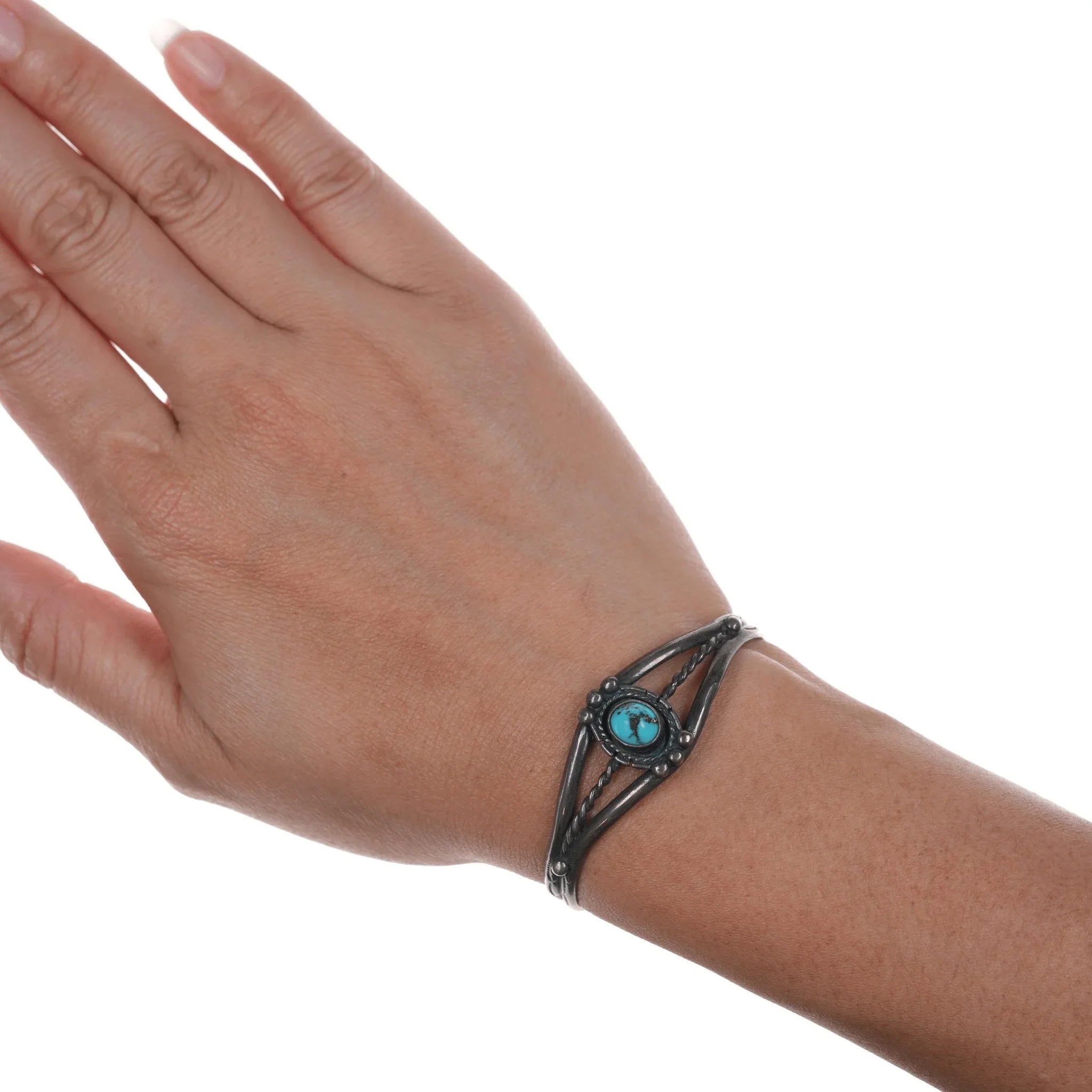 5.5" Vintage Native American silver cuff bracelet with turquoise