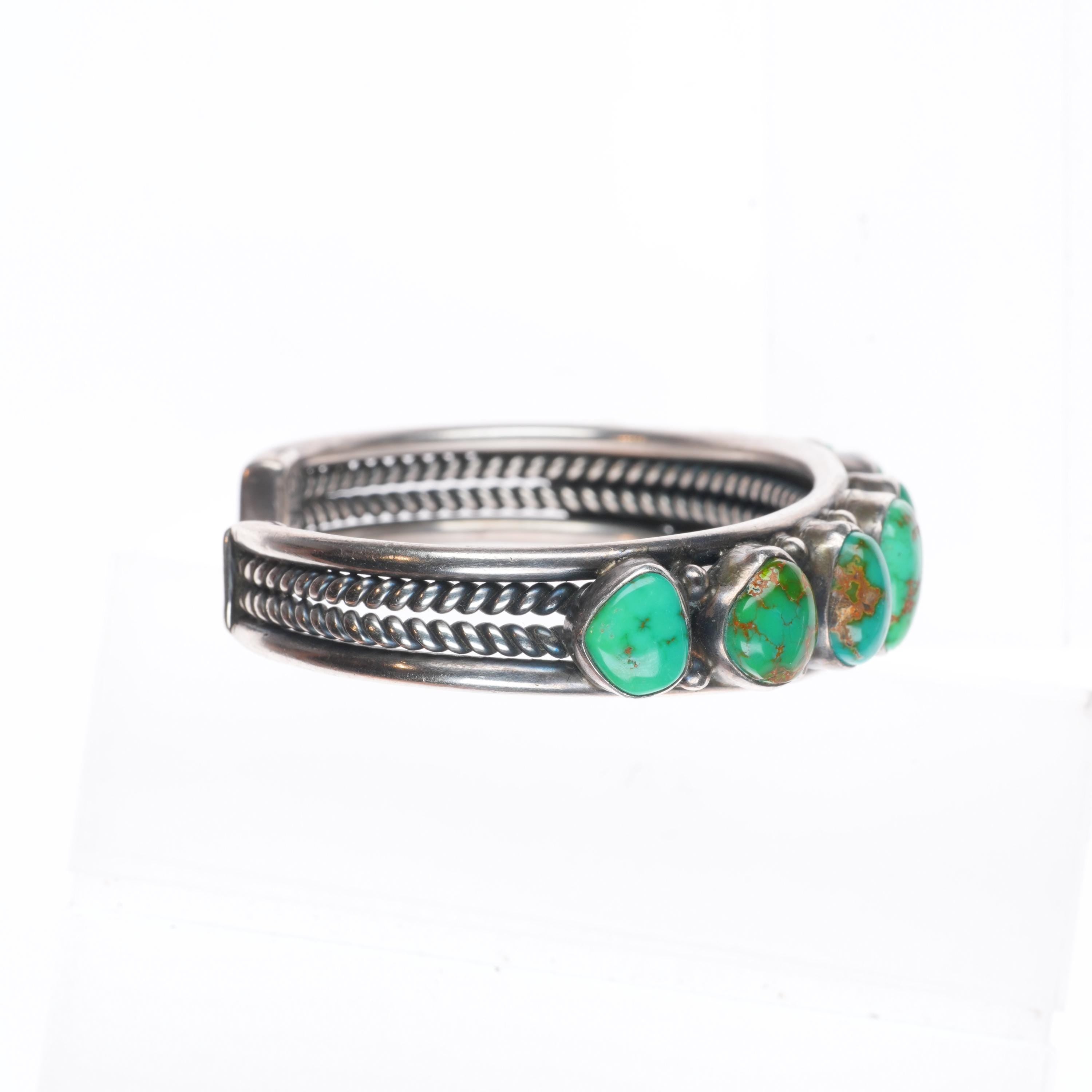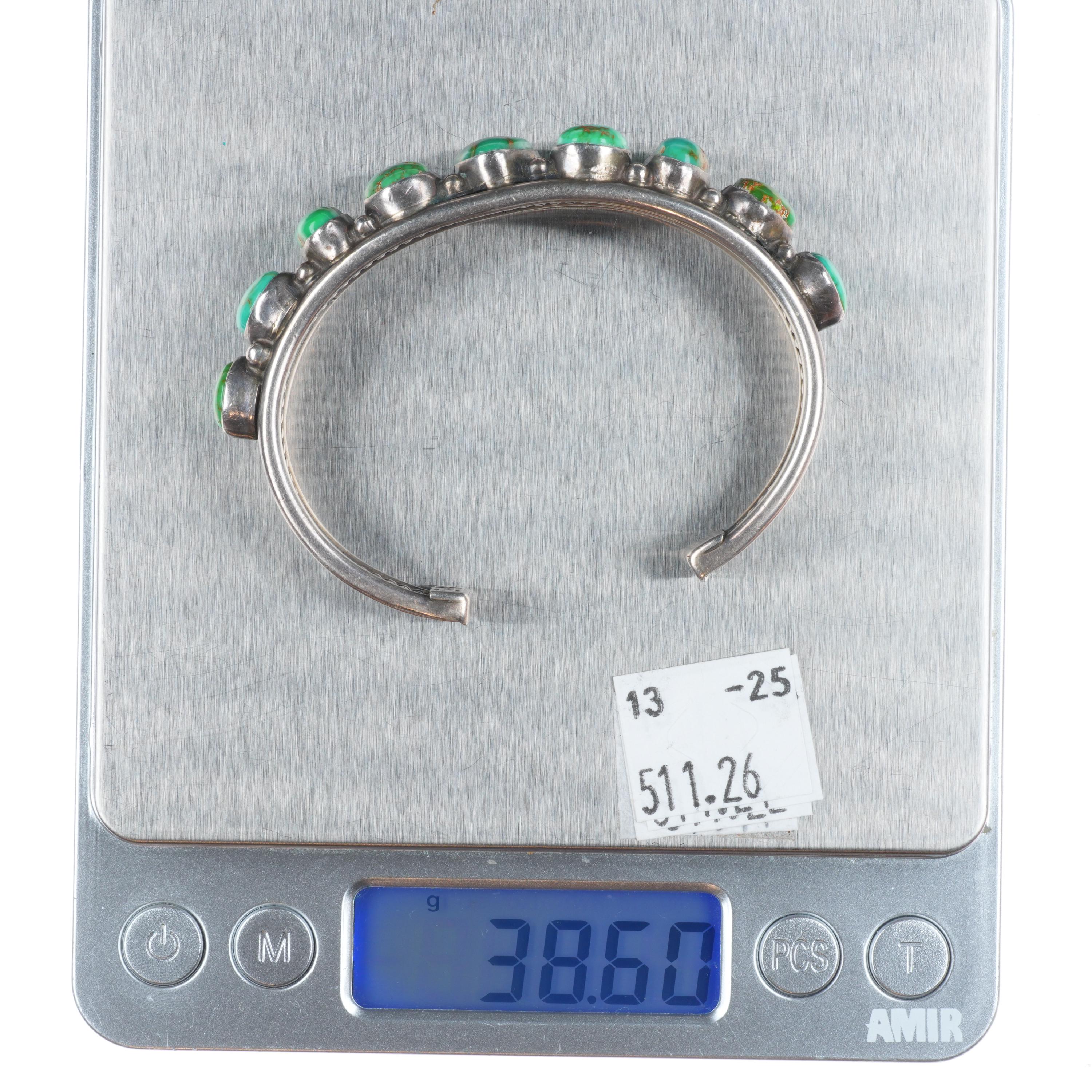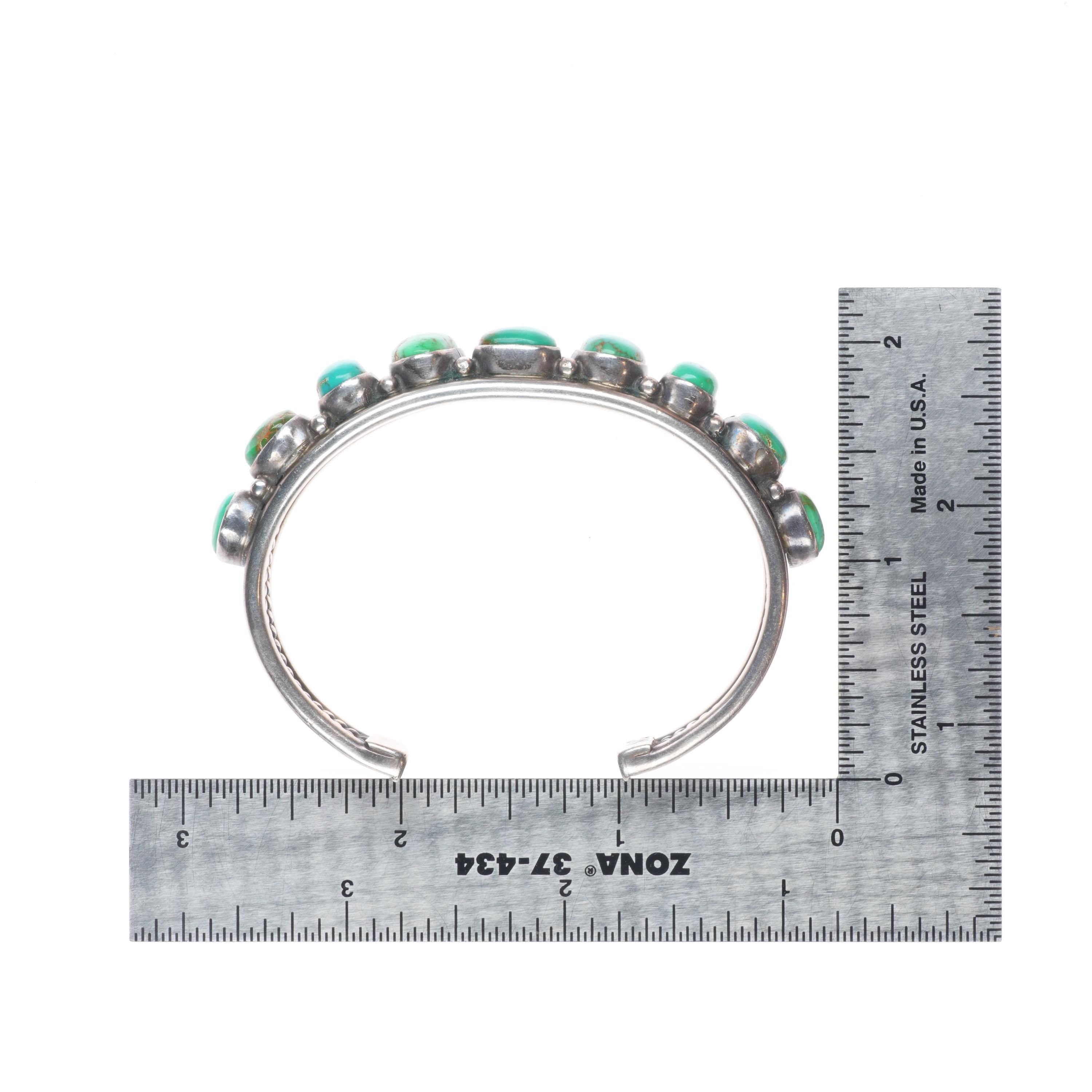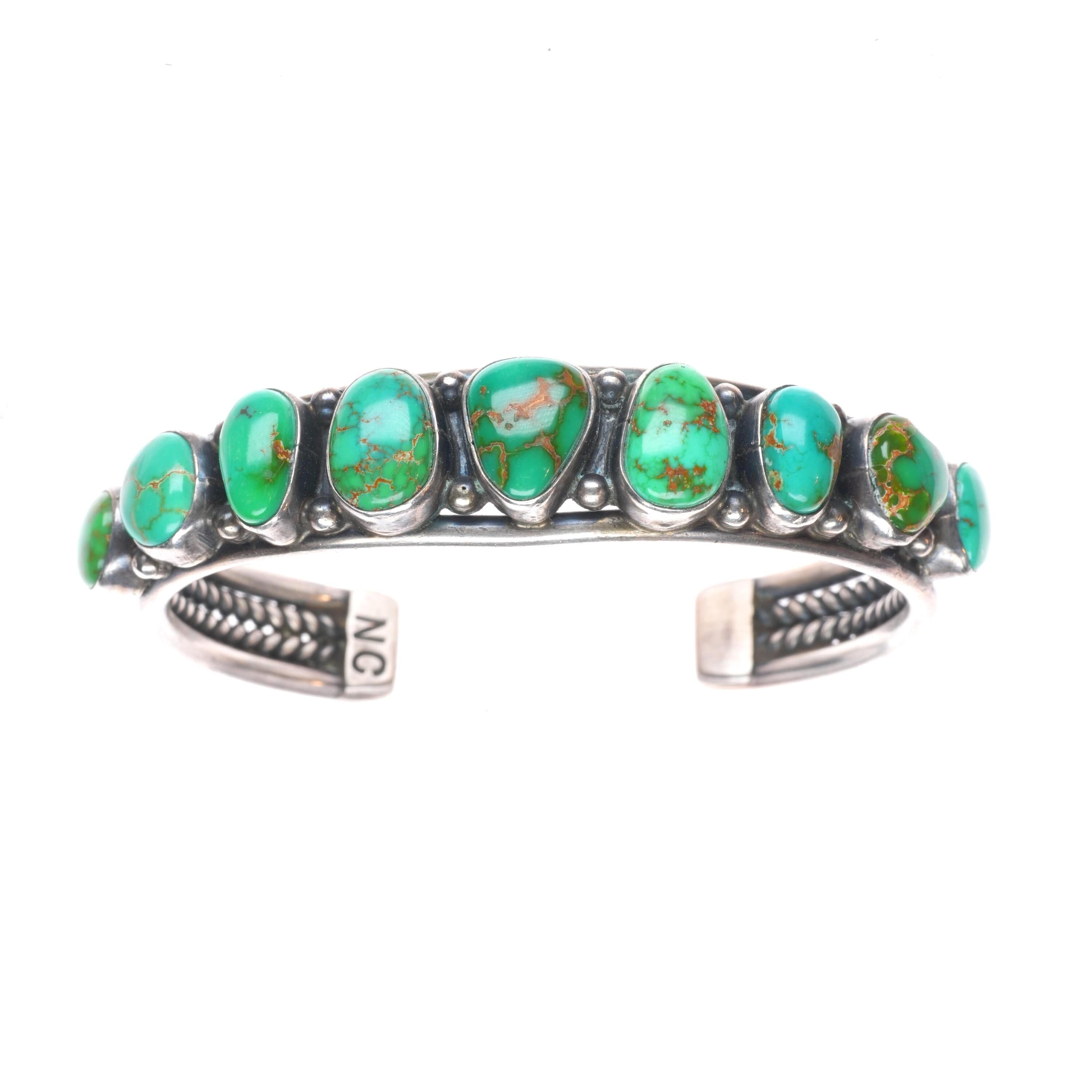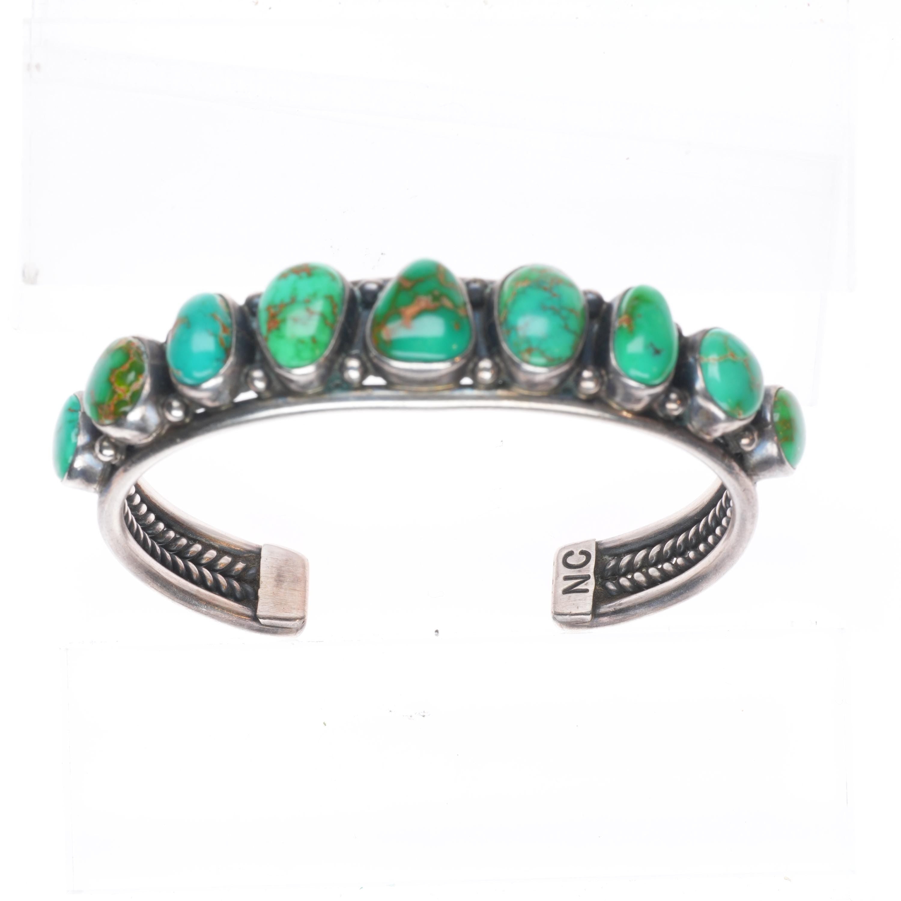 6.1" Carico Lake turquoise Nancy Custer Navajo sterling silver cuff bracelet. Tested and guaranteed solid sterling silver with weight and measurements in pictures. Circa last quarter of the 20th century with some expected age appropriate wear. High grade natural Carico Lake Nevada turquoise.