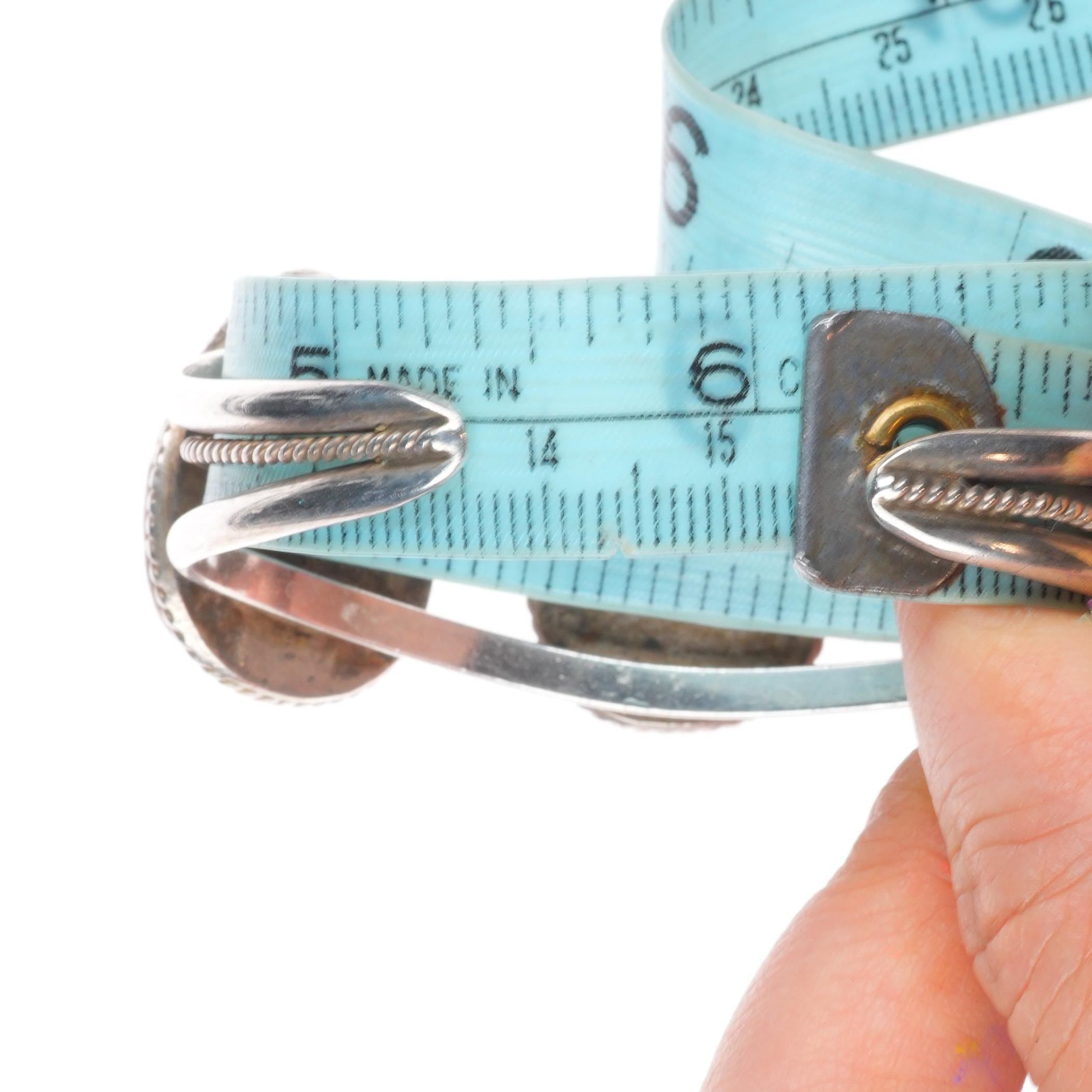 Bracelets are shown in the photos with a tape measure inside the bracelet, other photos will typically show the gap size. The size at the beginning of the title includes the gap. Almost all bracelets that don‘t have inlay work should be adjustable by at least .25", please refer to pictures for the gap size to see if it would work if slightly adjusted as the gap would change.