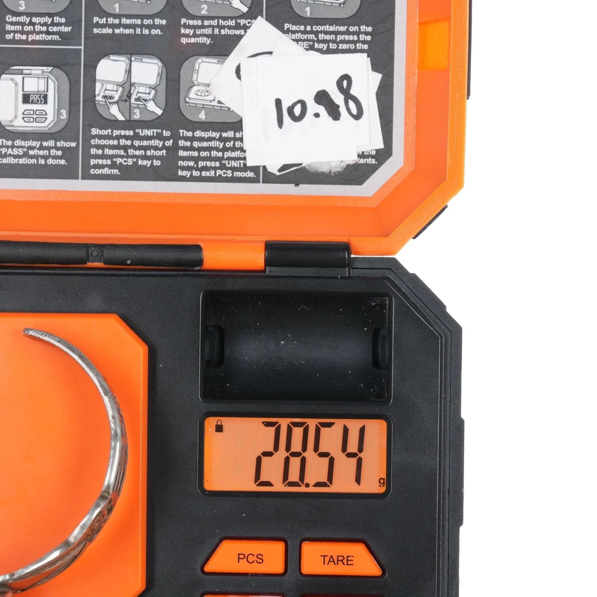 All precious metals are tested and guaranteed. A Native American jewelry piece referred to as "silver" or "ingot" is guaranteed to be at least 90% silver. I rarely use the word "sterling" when referring to older Native American silver or really any older silver jewelry as silver contents vary and "sterling" is 92.5% silver. No older jewelry is going to be exactly 92.5% silver, some a little over, some a little under. It wasn‘t an exact thing with handmade jewelry. I‘ve seen thousands of pieces xrf‘d to prove this. Bracelets are photographed on a 6" women‘s wrist.