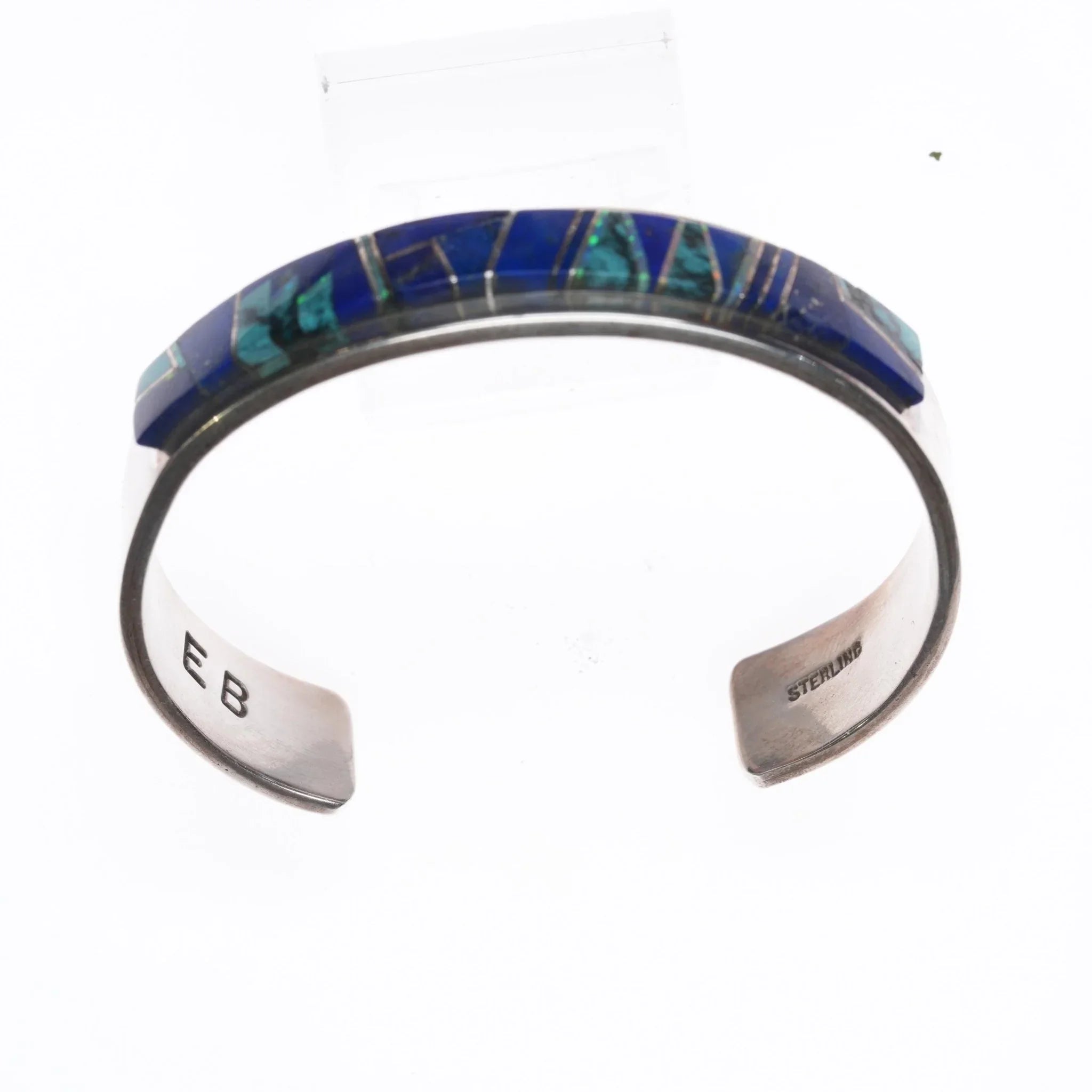 6.25" EB Navajo sterling channel inlay cuff bracelet. Solid silver, weights and measurements in pics.