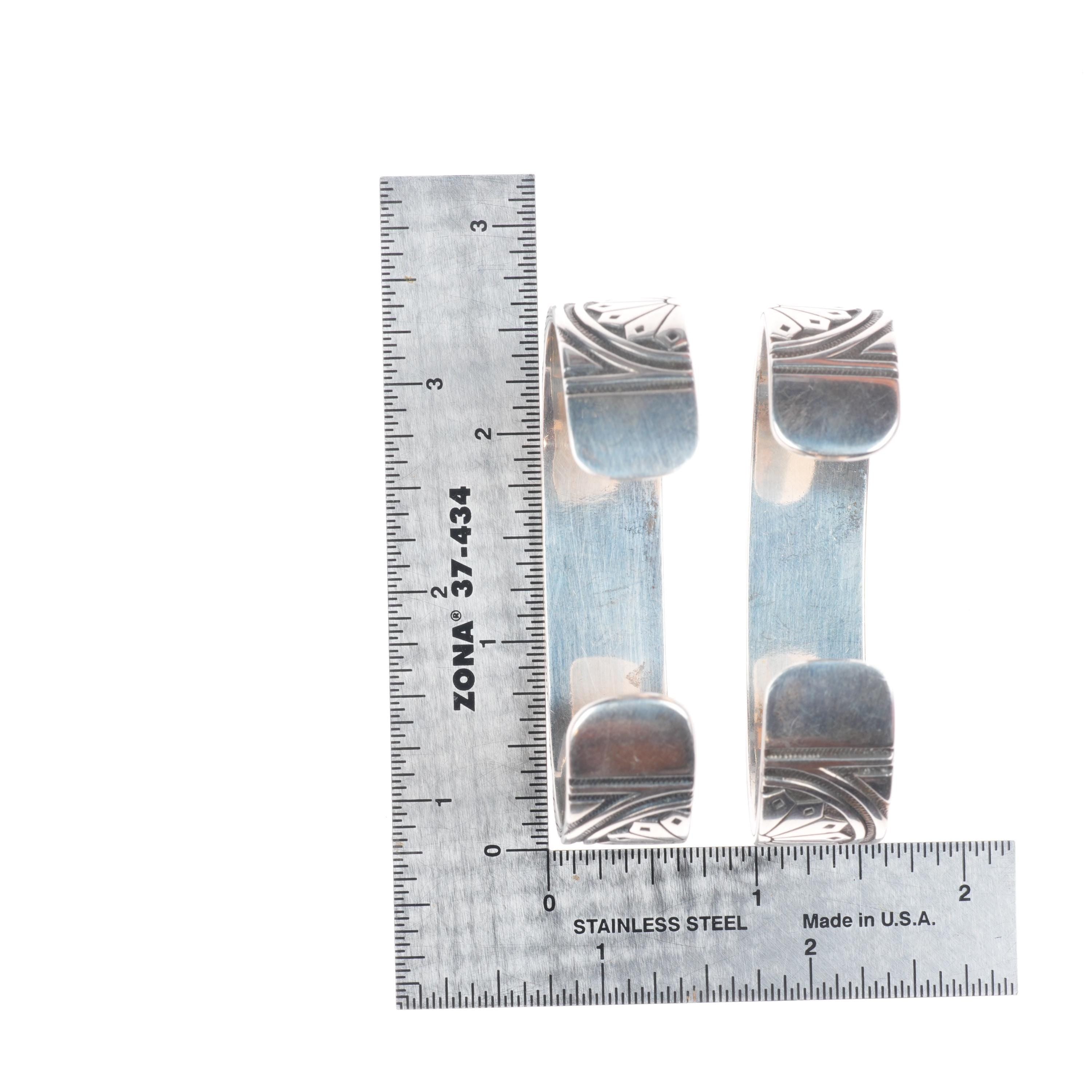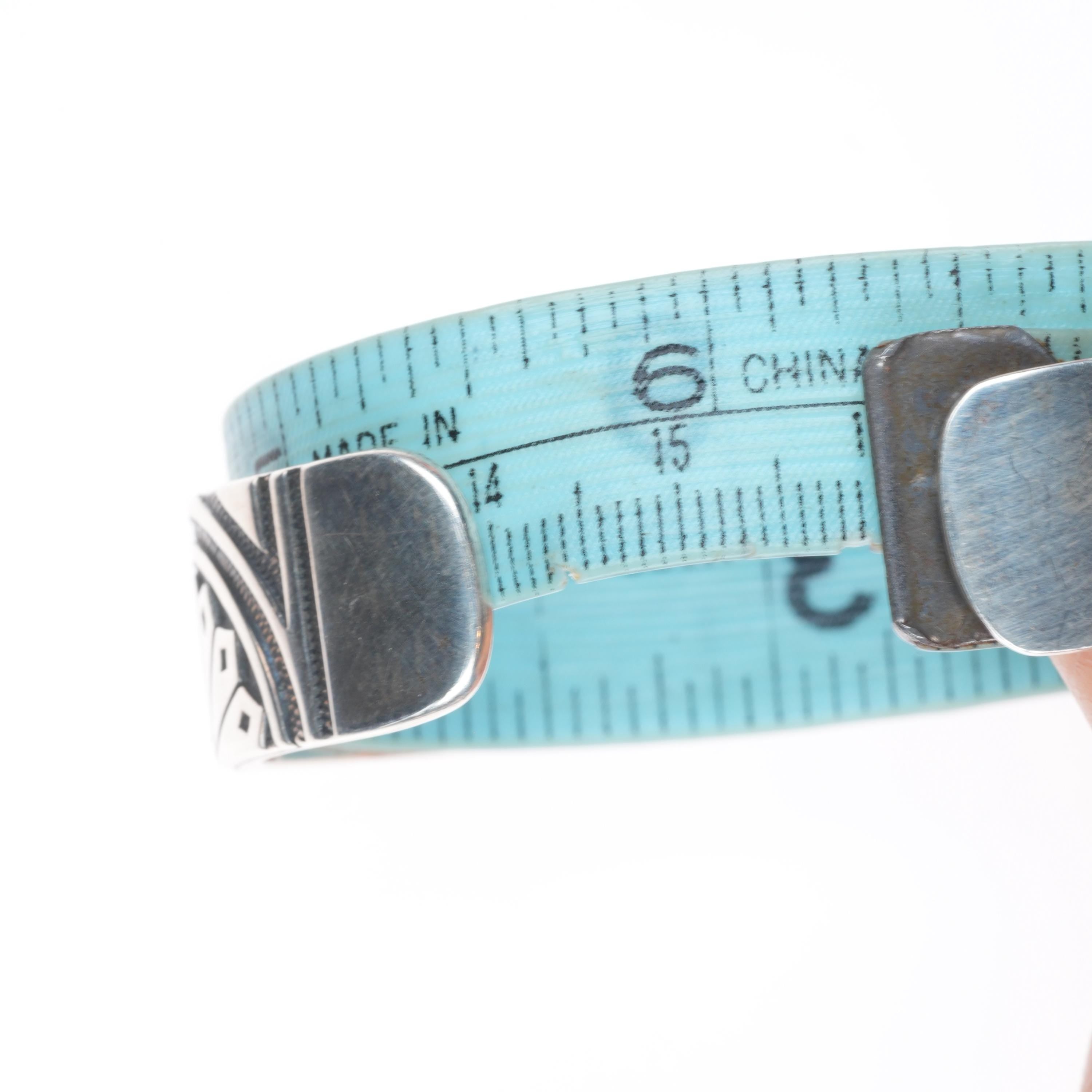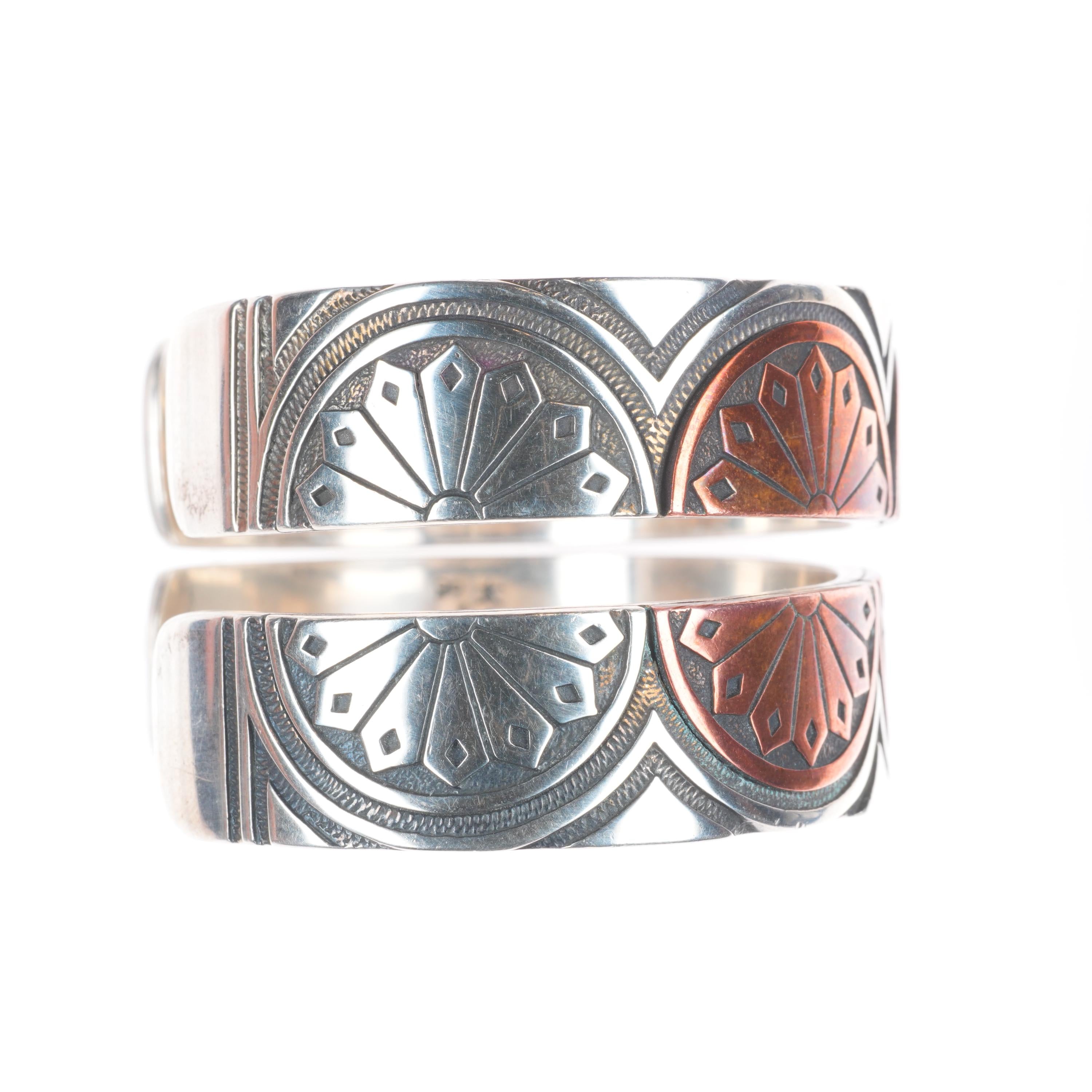 6.25" KJA Sterling silver/copper southwestern stacking cuff bracelets set. Tested and guaranteed solid sterling silver (and copper), with weight and measurements in pictures, circa third quarter of the 20th century. While I'm happy to answer any questions or concerns, I beg you to take the time to look through all of the photos as they should answer them. There should be around 10 photos. If no marking is mentioned or photographed please assume that it's unmarked as is common with Native American jewelry of this era.