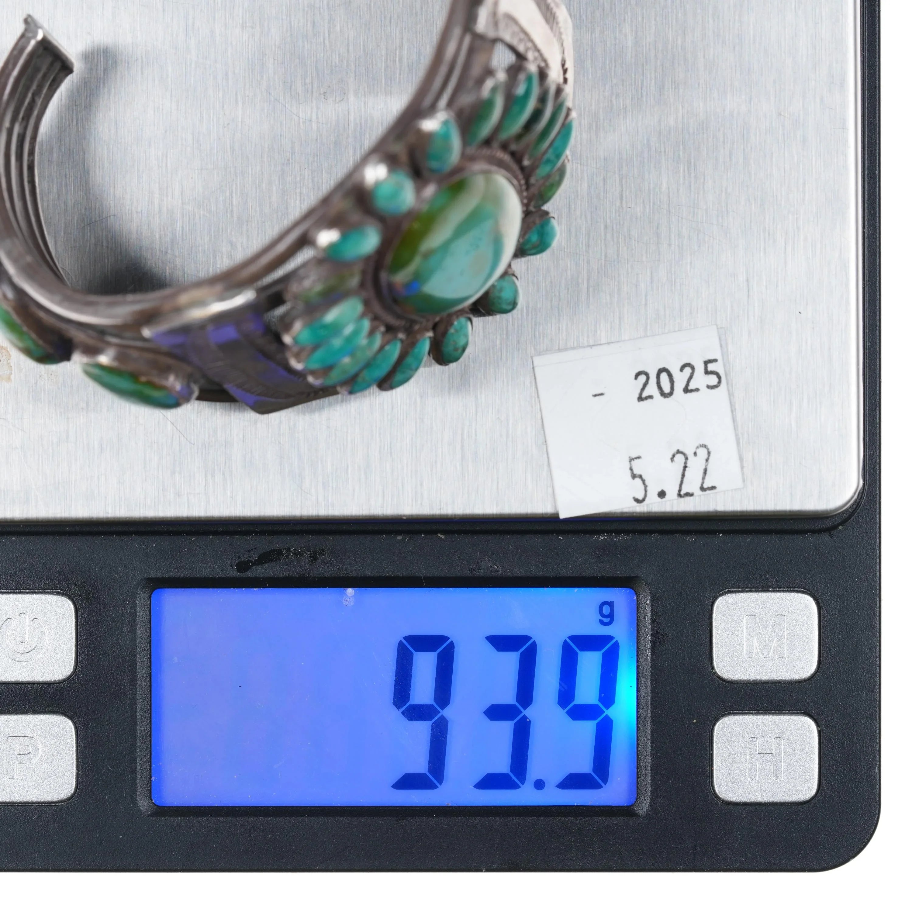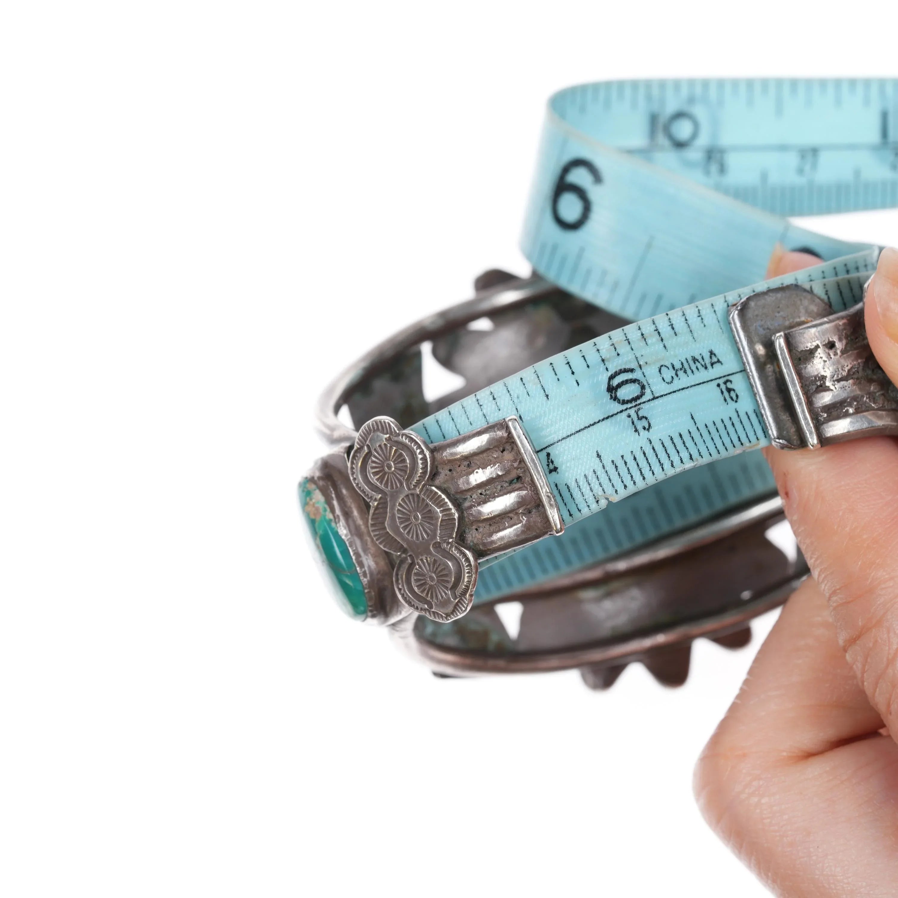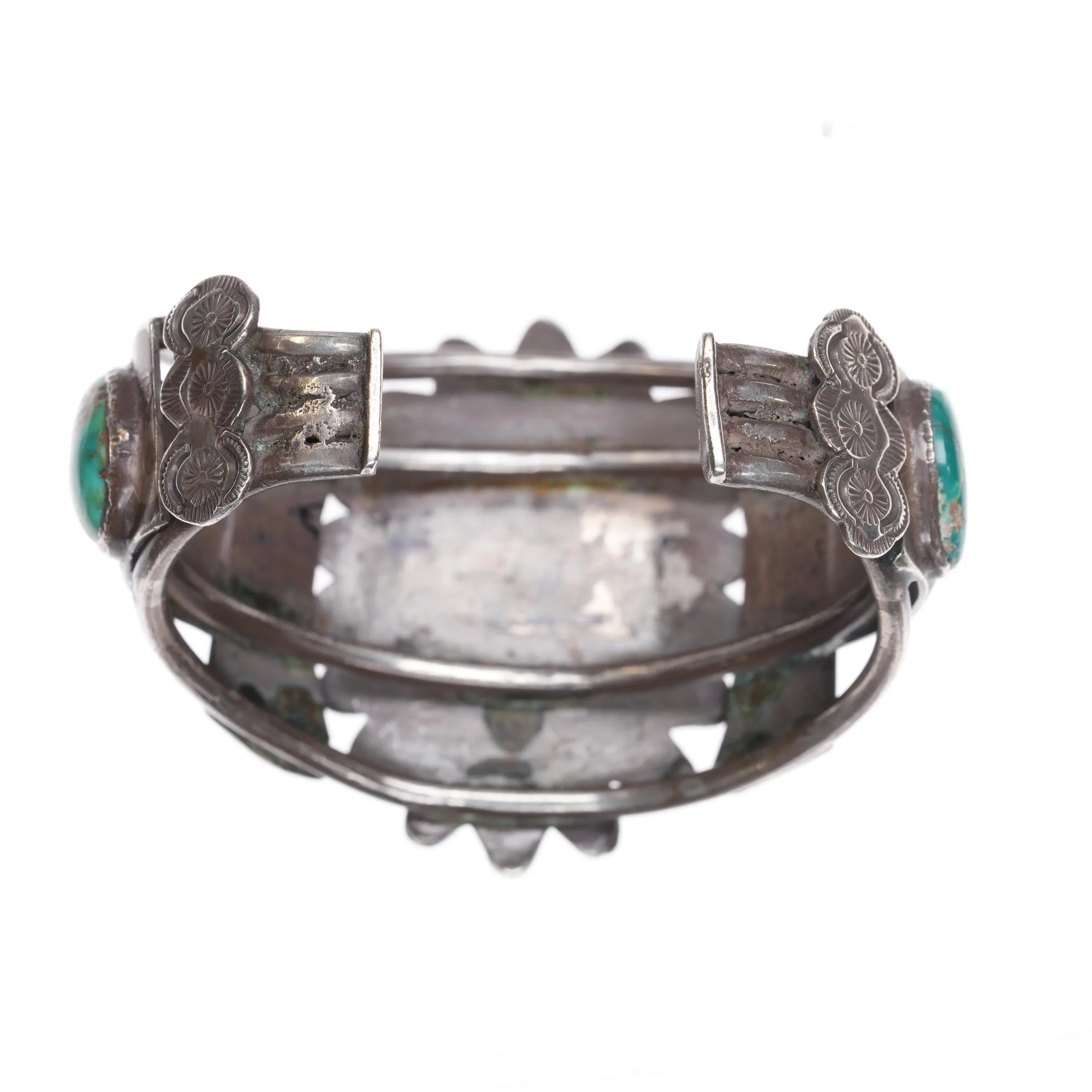 6.3" 30's-40's Navajo Royston Turquoise sterling silver cluster cuff bracelet