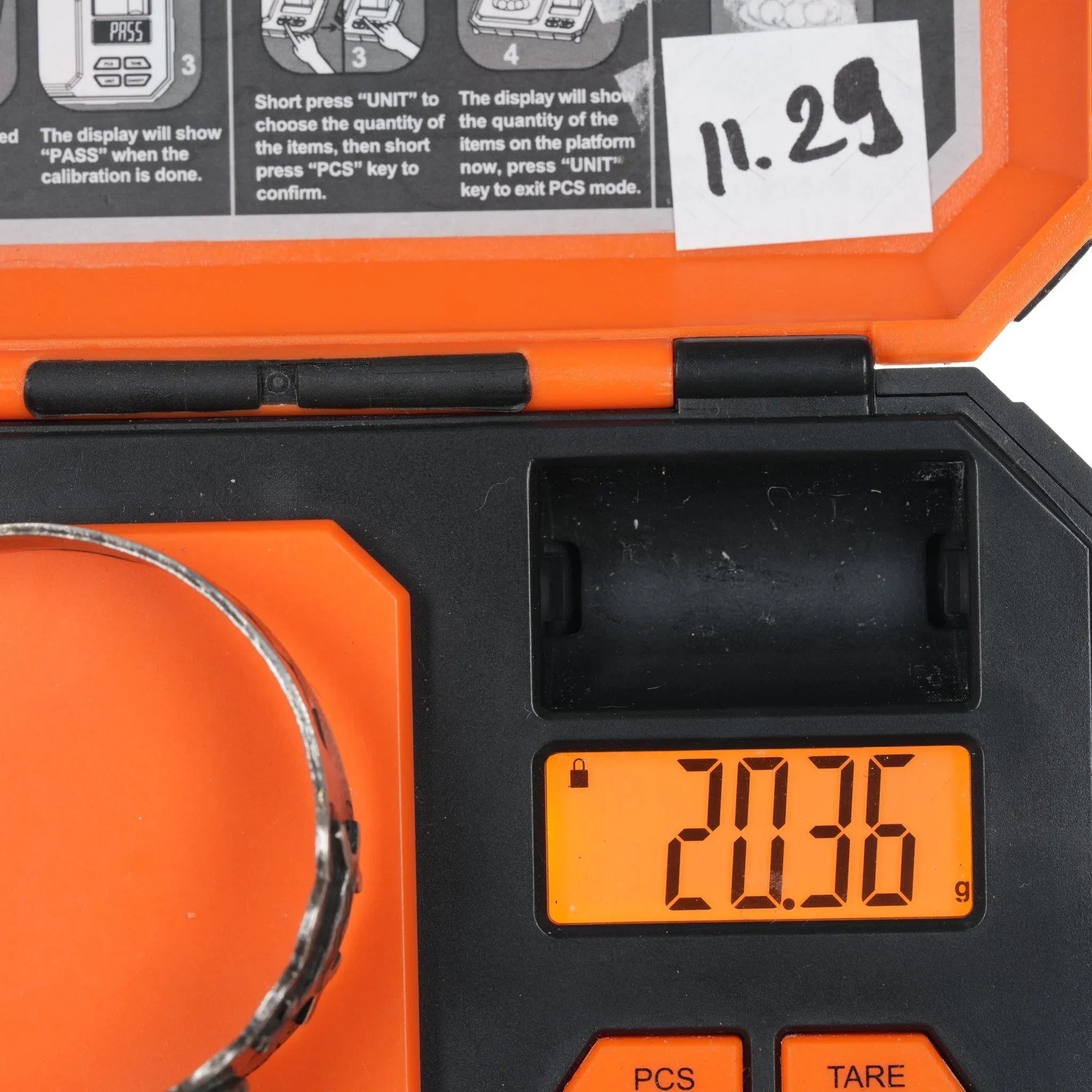 6 3/8" 1940‘s Sterling and turquoise Fred Harvey era dog cuff bracelet. No issues, weight and measurements in pics. Solid sterling.