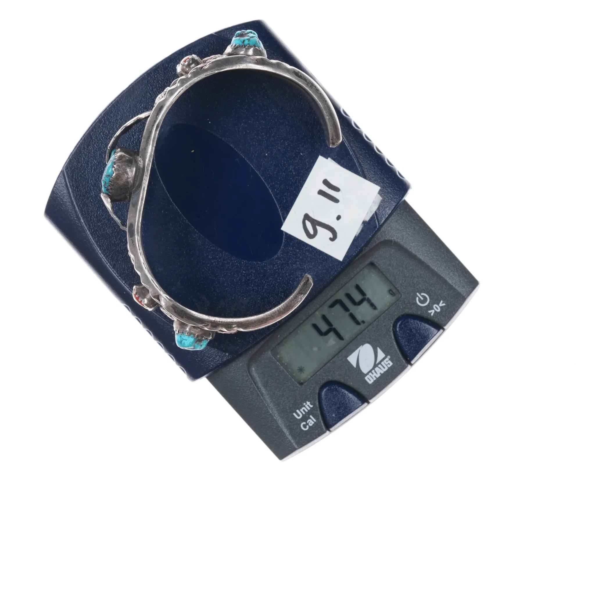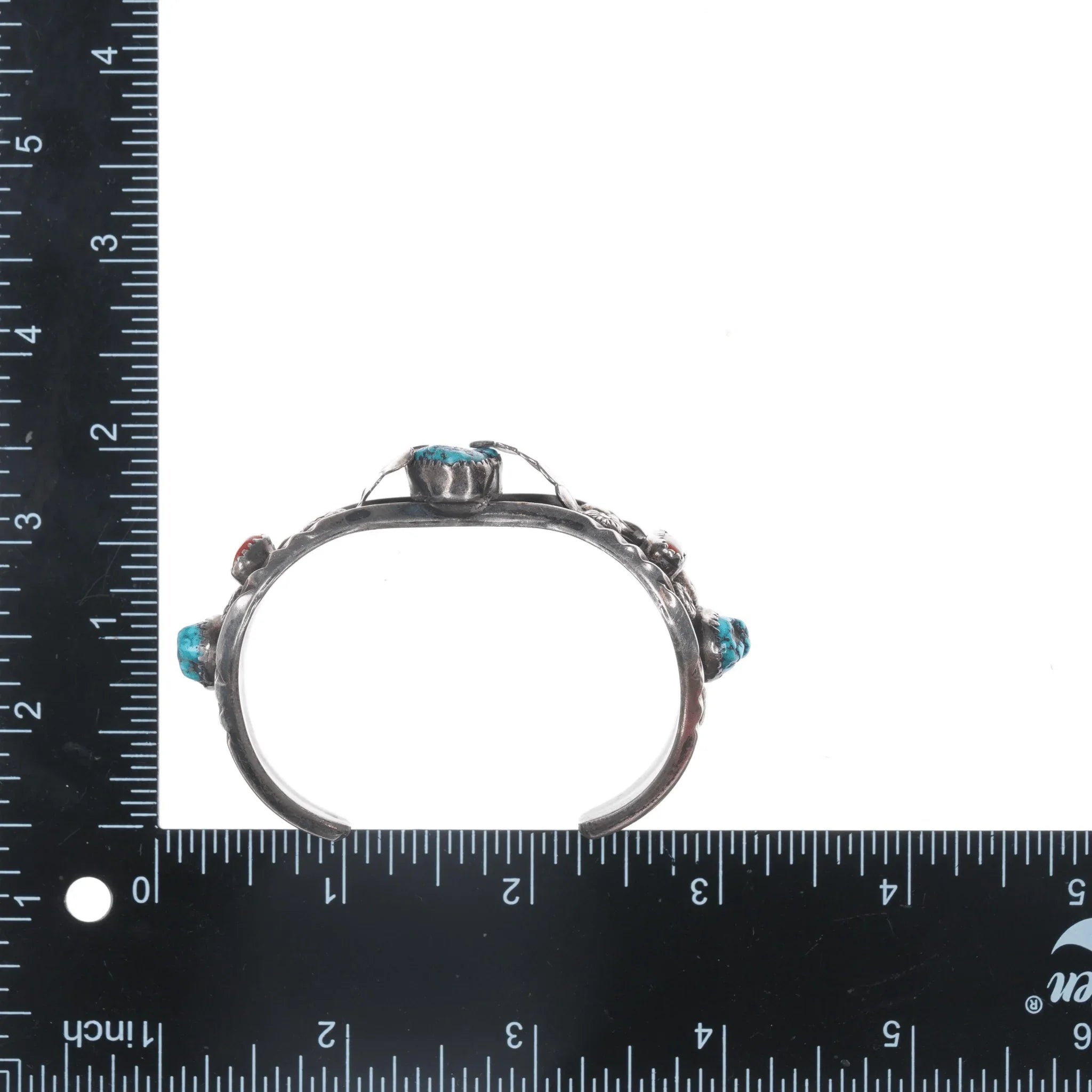 6.375" 1970's Native American sterling, turquoise, and coral cuff bracelet