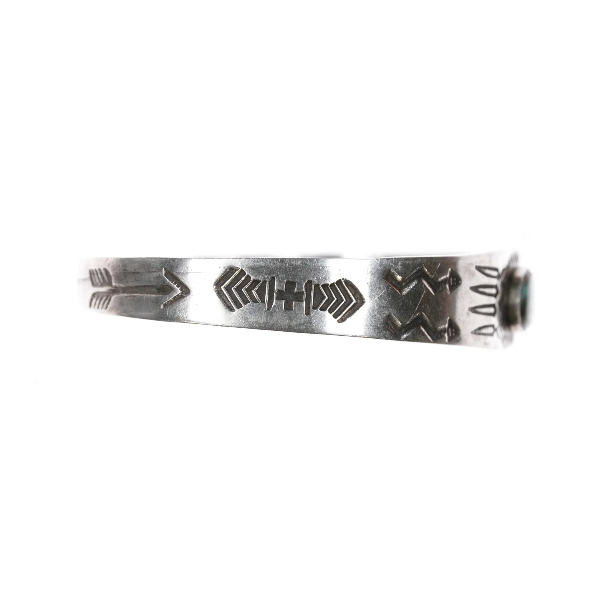 6 3/8" 30‘s-40‘s Fred Harvey sterling and turquoise cuff bracelet. Nice old bracelet from the second quarter of the 20th century, weight and measurements in pics. Solid sterling, unmarked.