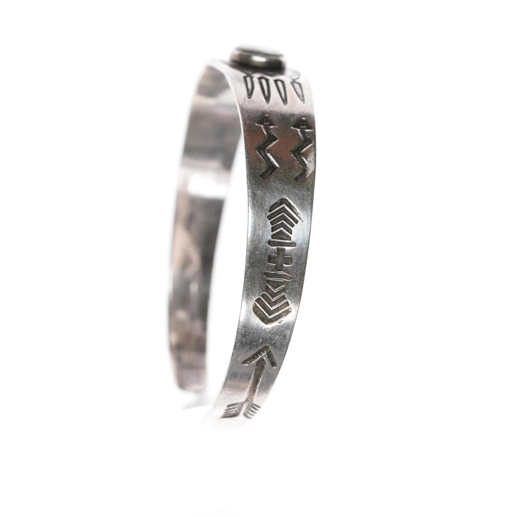 Marked or unmarked as shown in pics, weight<br>and other measurements in pics. Sorry but my jewelry is stored in a secure<br>location and cannot be accessed for more pictures, videos, or measurements until<br>sold. If you look at pictures/description your question should be answered.<br>Thank you so much for your time and consideration!<br><br>All precious metals are tested and guaranteed, any Native American jewelry<br>referred to as Silver or Sterling is guaranteed to be a minimum of 90% (coin)<br>silver and possibly higher content. Anything marked is guaranteed to be what<br>it‘s marked, most bracelets are photographed on a 6" wrist (non hairy), rings<br>photographed on the appropriate sized finger when possible. With bracelets if<br>the measurement is not given in the description then inside circumference is<br>shown where the metal meets the number on the the cloth tape measure.