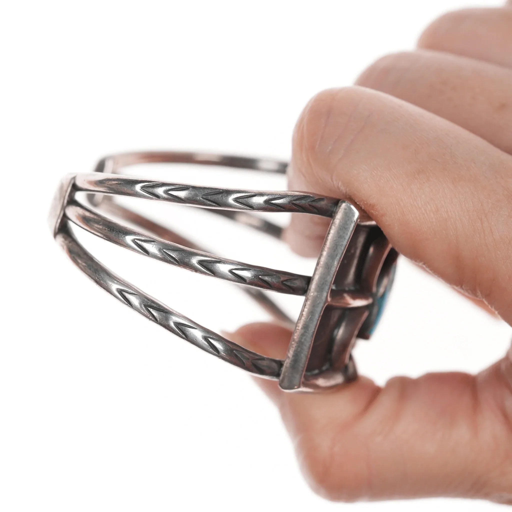 6 3/8" 50's-60's Native American silver triple shank turquoise cuff bracelet