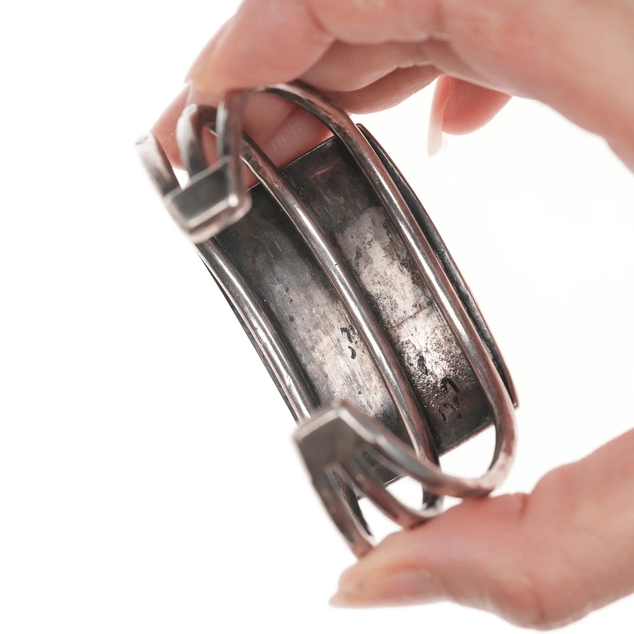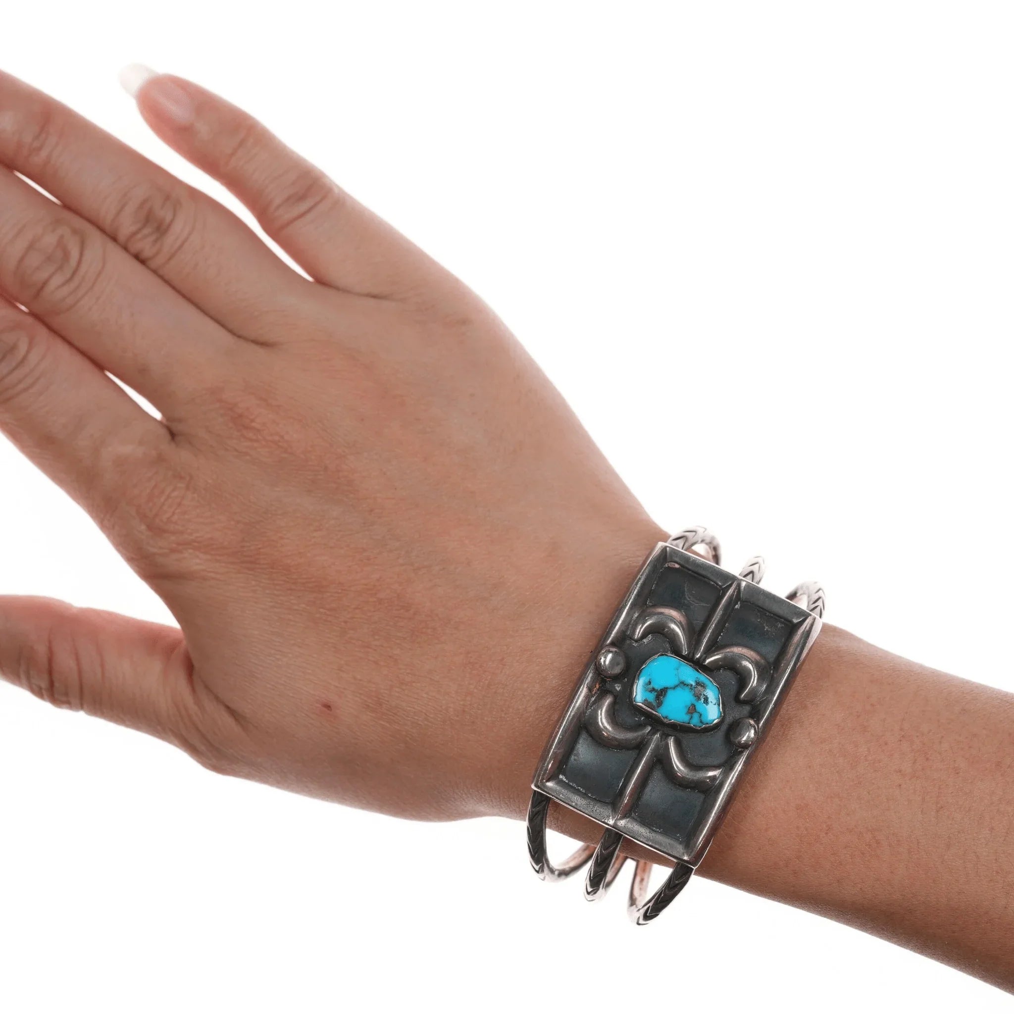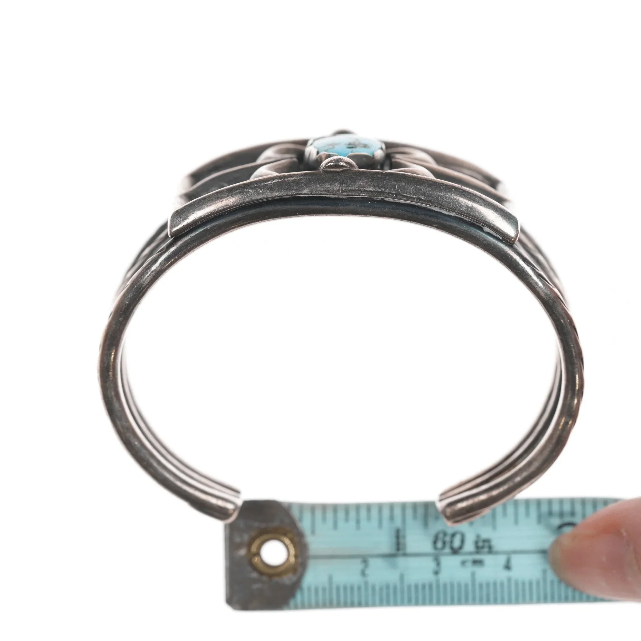 6.375" 50's-60's Native American silver triple shank turquoise cuff bracelet