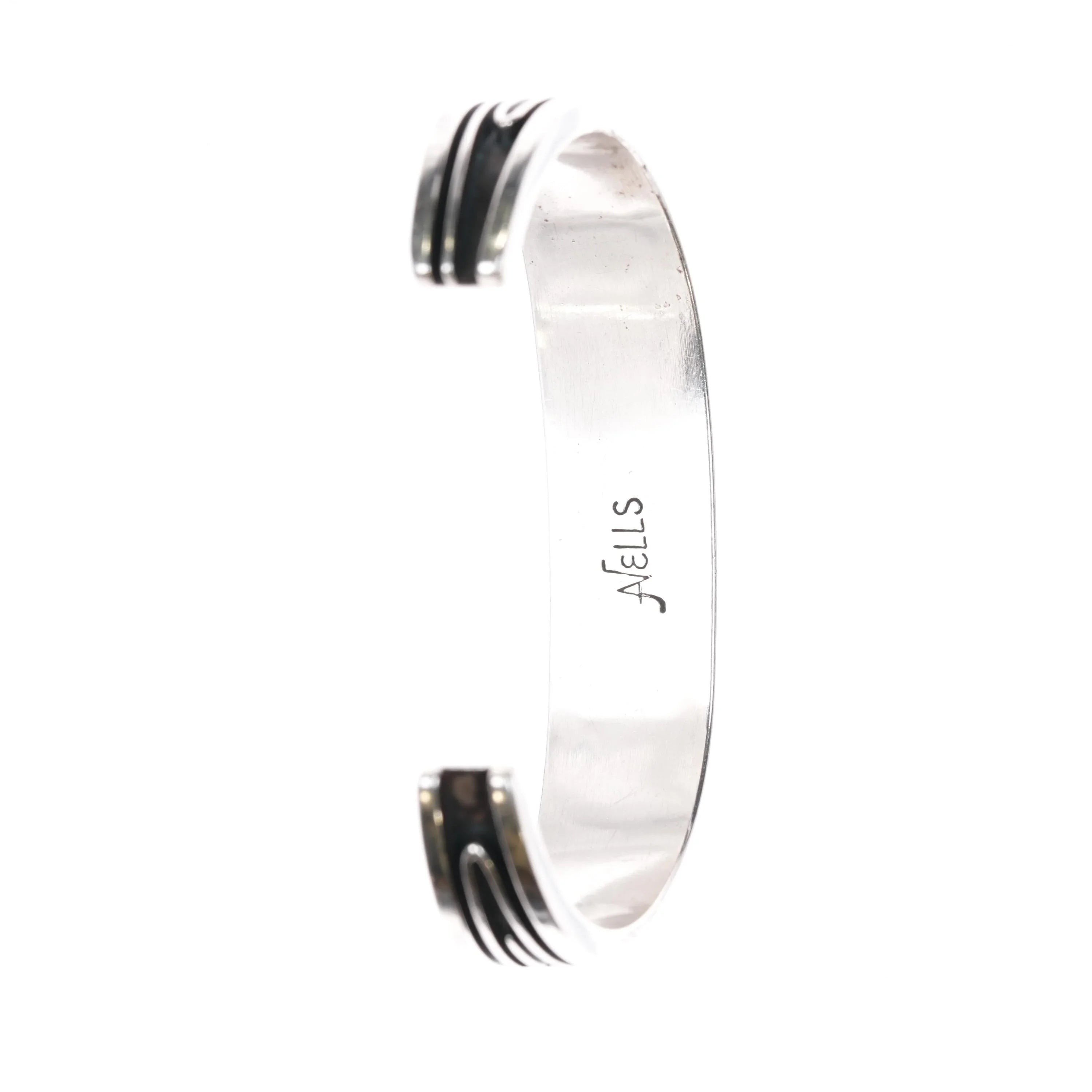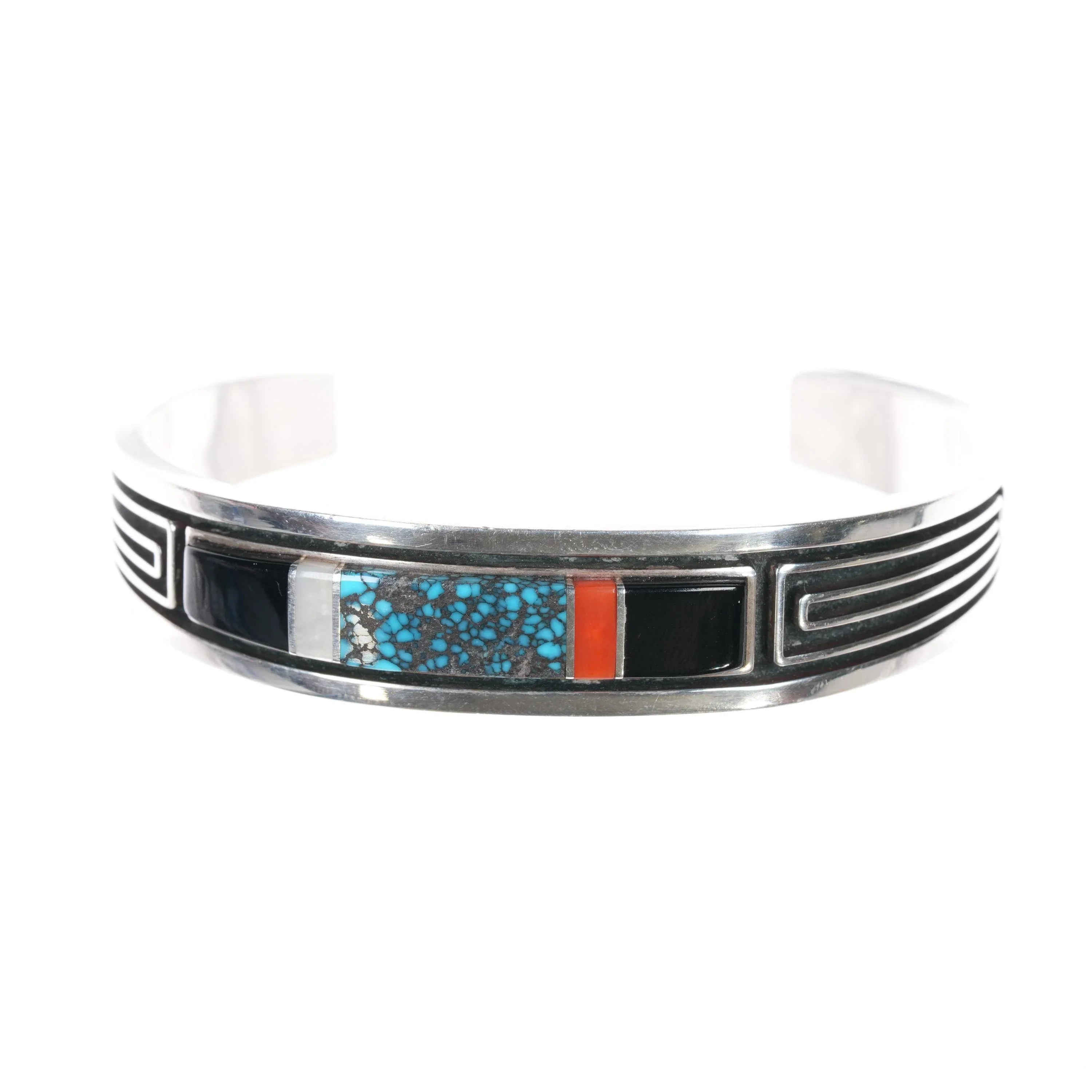 Albert Nells was raised in Cedar Springs, Arizona and now makes his home in Flagstaff with his wife, Marylou and their four children. He is a self-taught artist and started in leather work. Many of his jewelry designs come from leather applied to silver. Albert calls his signature technique “wire design with channel inlay.