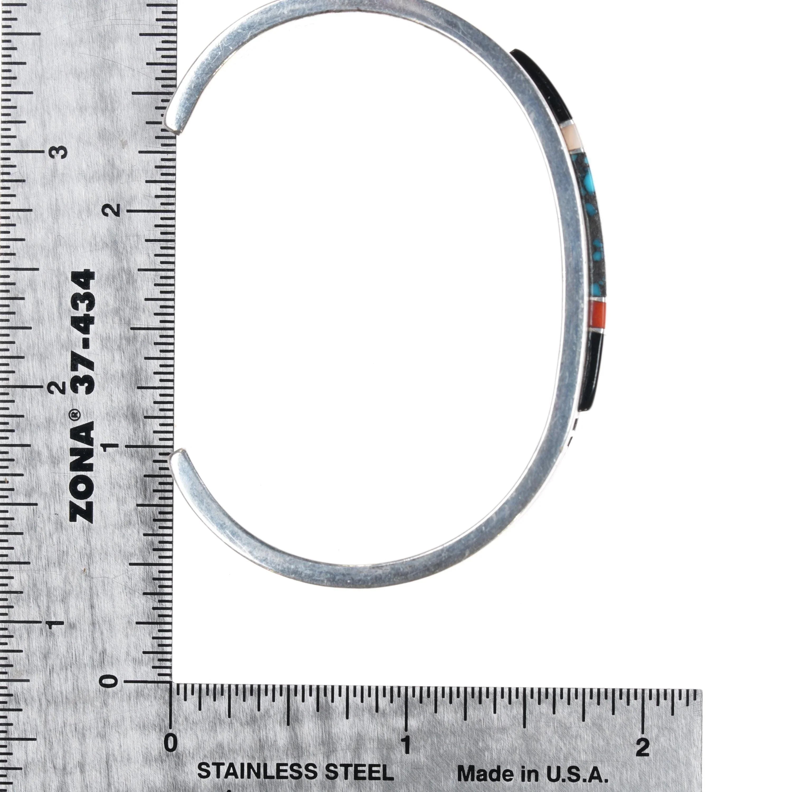 Albert considers himself a traditionalist, believing in the traditional Navajo ways. He participates in Navajo ceremonies in the “Beauty Way. One method the artist represents his culture in his jewelry-making is through the use of all-natural, four-color stones that can be seen in each piece he makes. These sacred colors of blue, red, white, and black represent the four directions and four sacred mountains for the Navajo people.