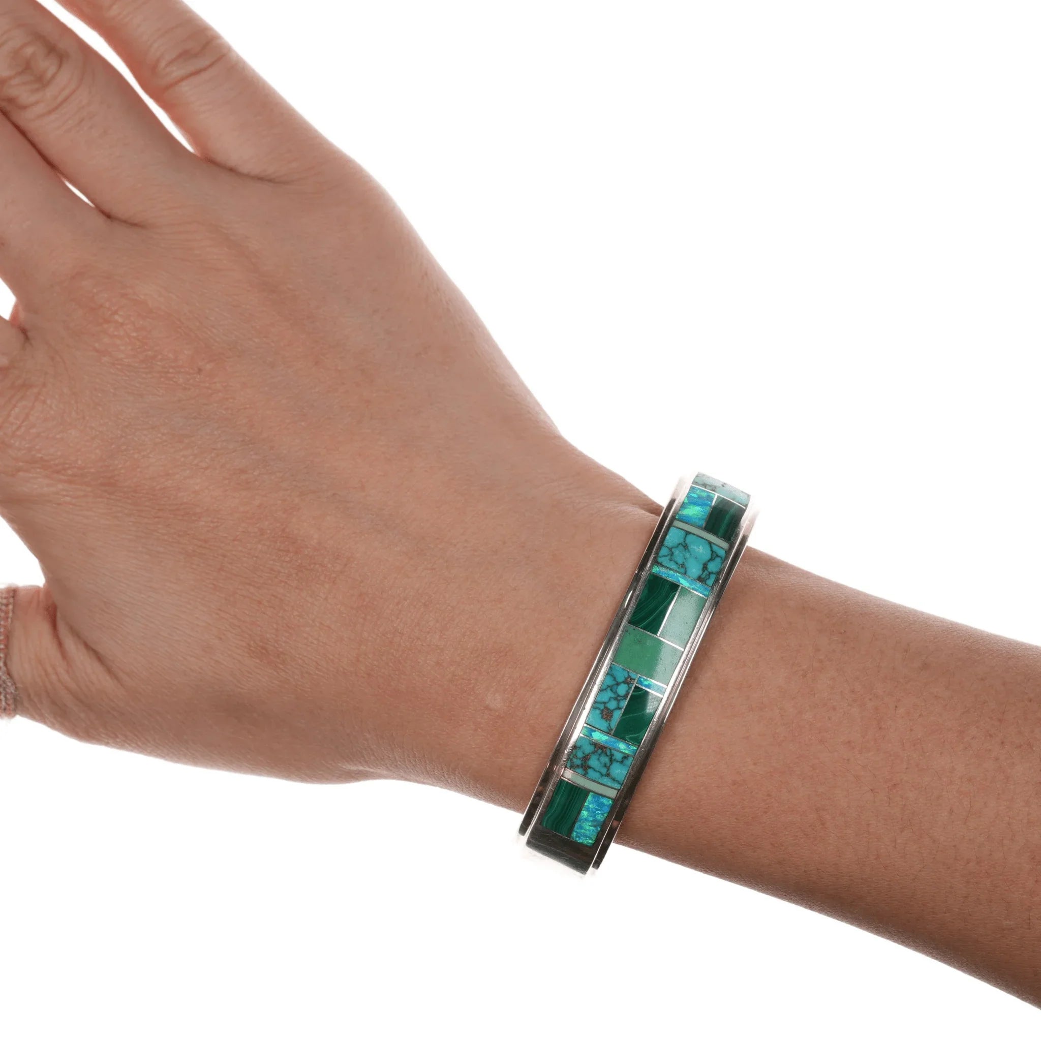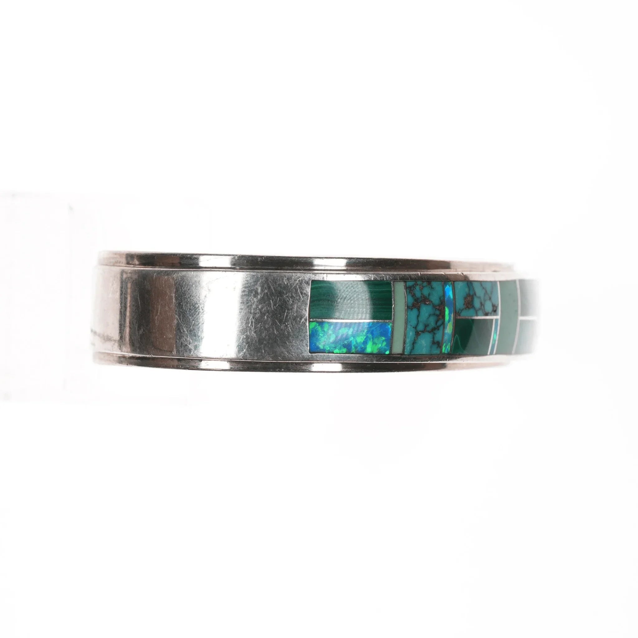 6.375" c1990's Teme Navajo sterling channel inlay cuff bracelet