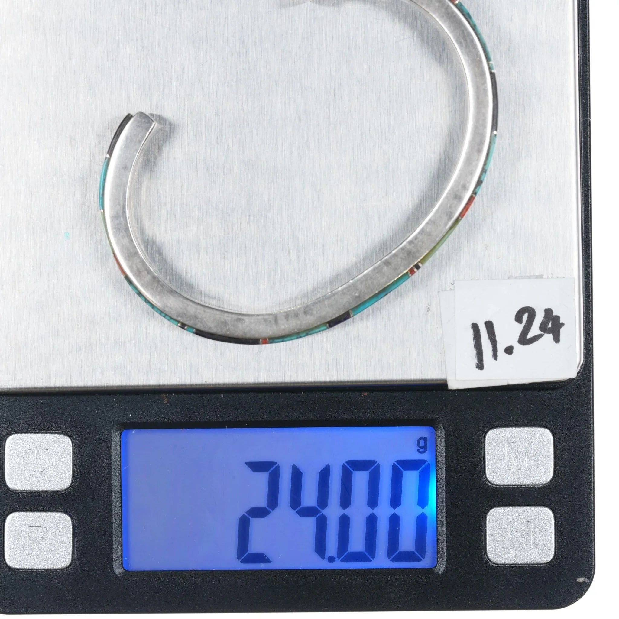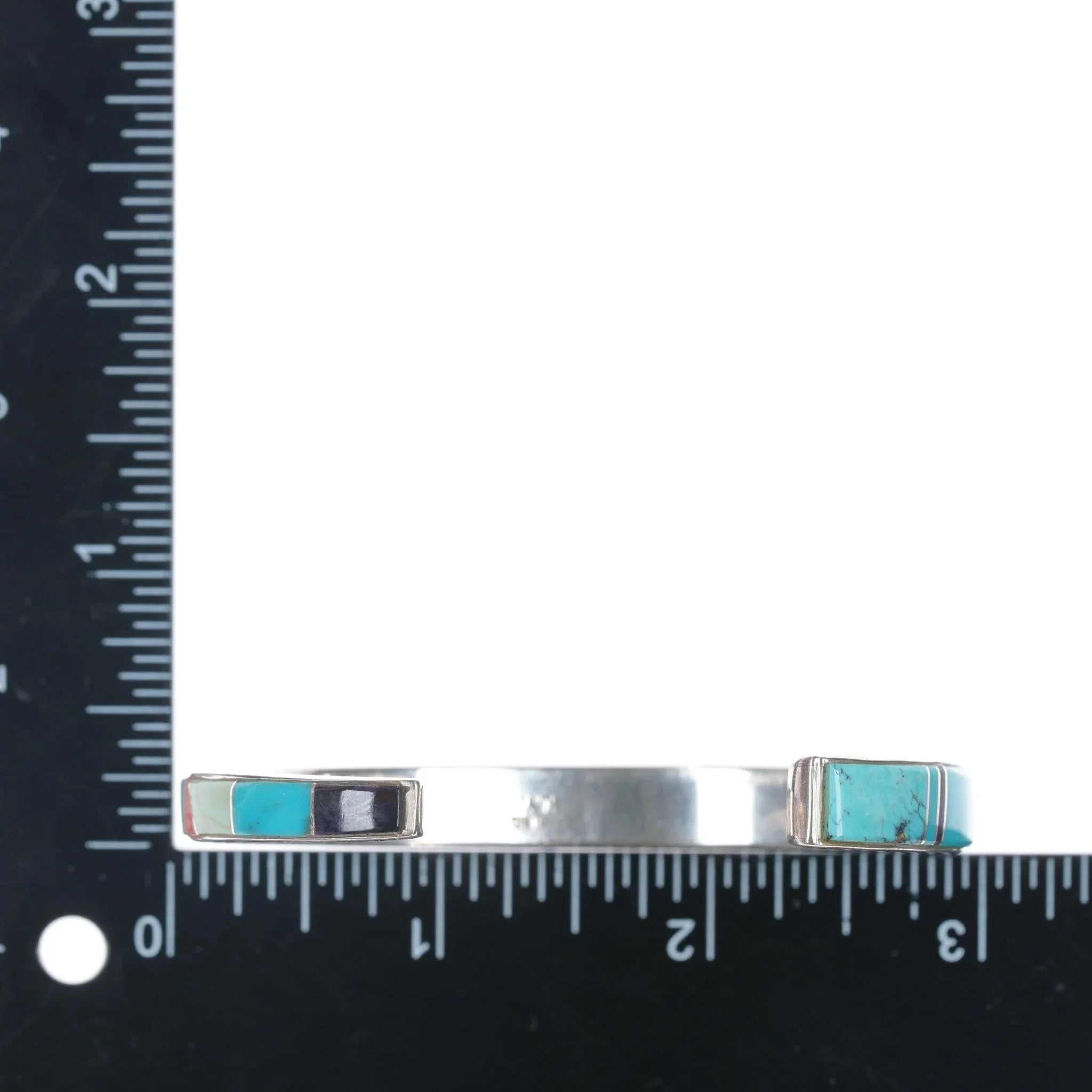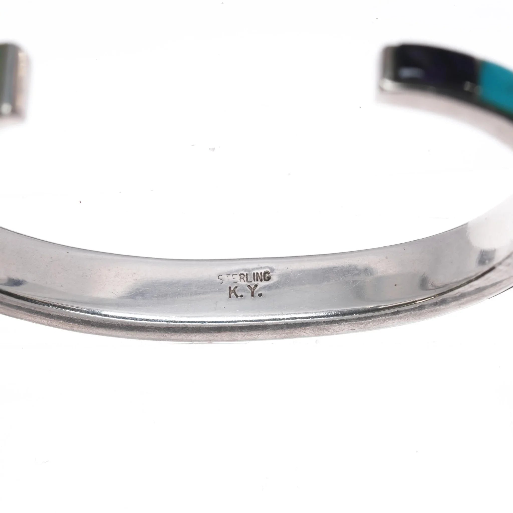 6.375" Kay Yazzie Navajo sterling multi-stone channel inlay cuff bracelet