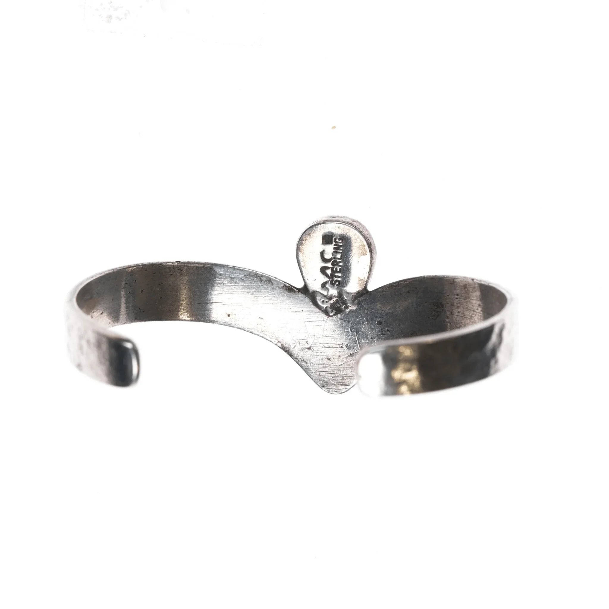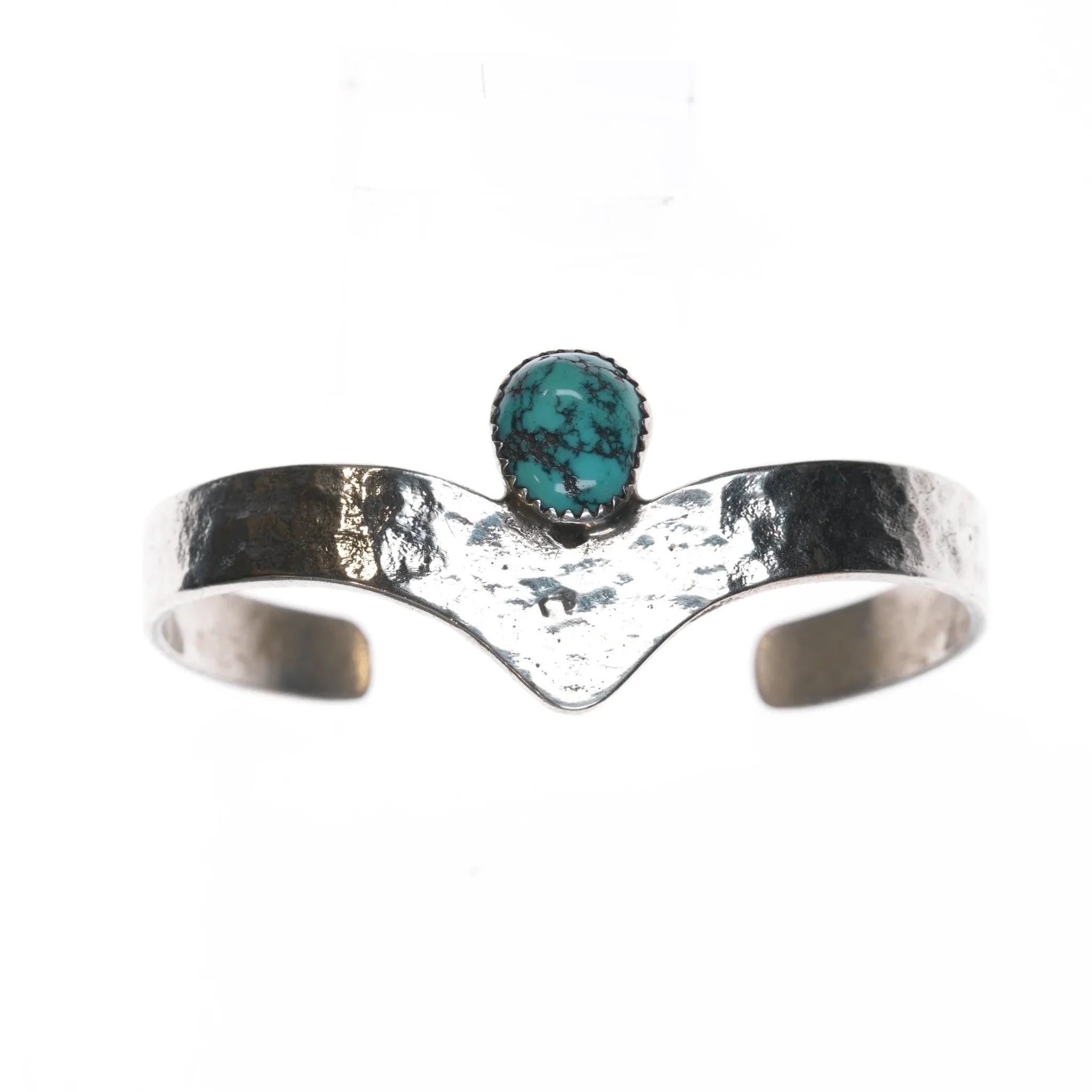 6.375" Mary Cayetineto Navajo hammered sterling cuff bracelet with turquoise